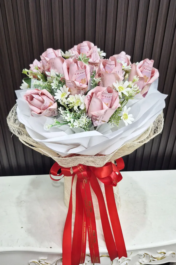 ช่อแบงค์พับเป็นดอกกุหลาบ, วันวาเลนไทน์, ช่อแบงค์วันวาเลไทน์, ช่อใส่เงินไม่เกิน 5000 บาท, วันรับปริญญา/ดอกไม้รับปริญญา