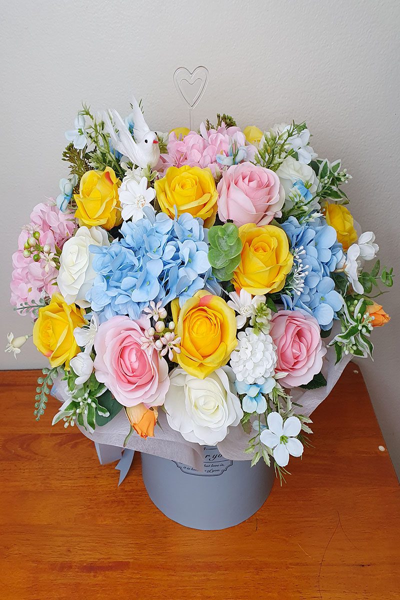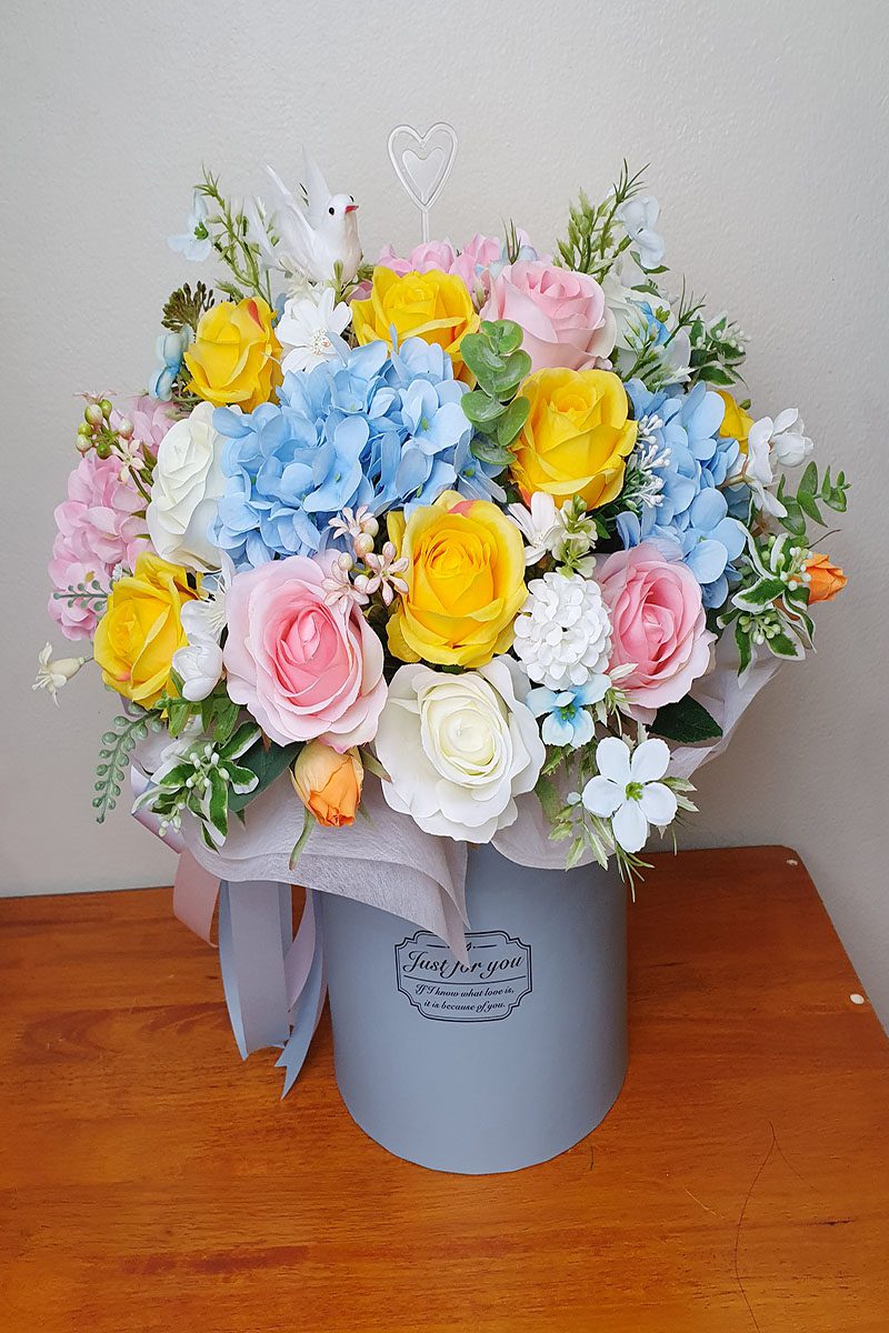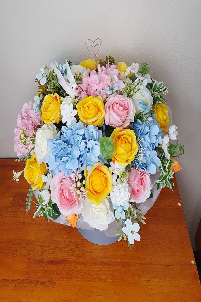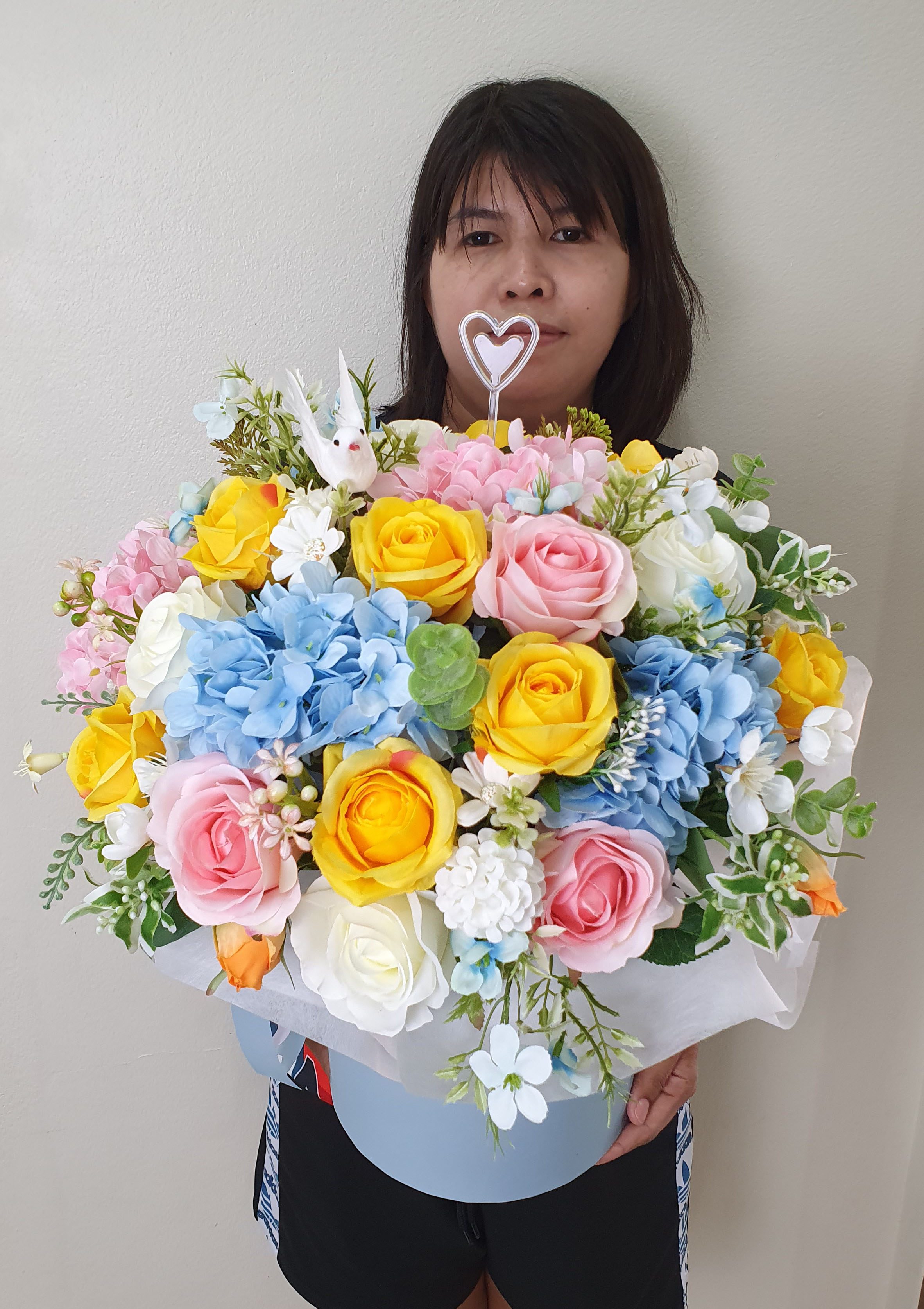 ดอกไม้ประดิษฐ์ โทนสีฟ้า ชมพู เหลือง สีสันสดใส