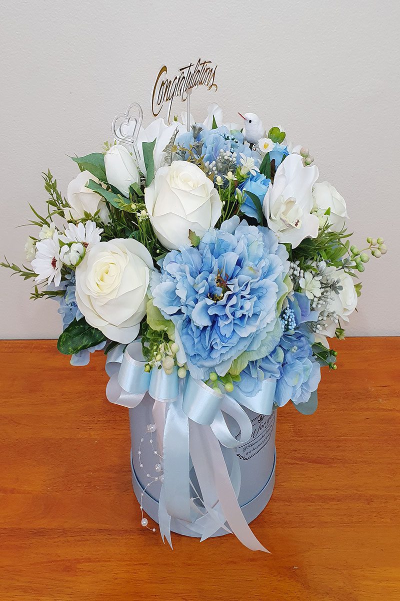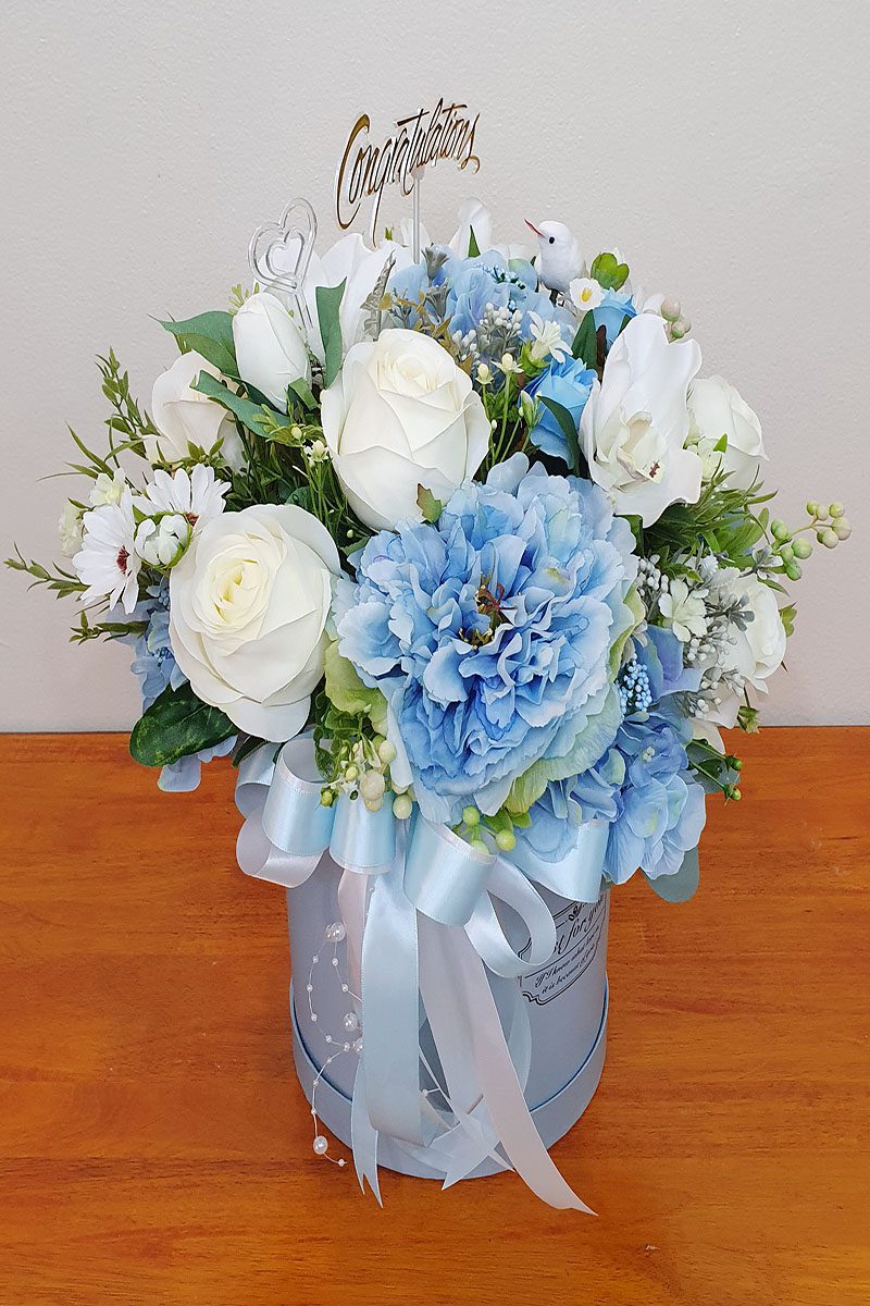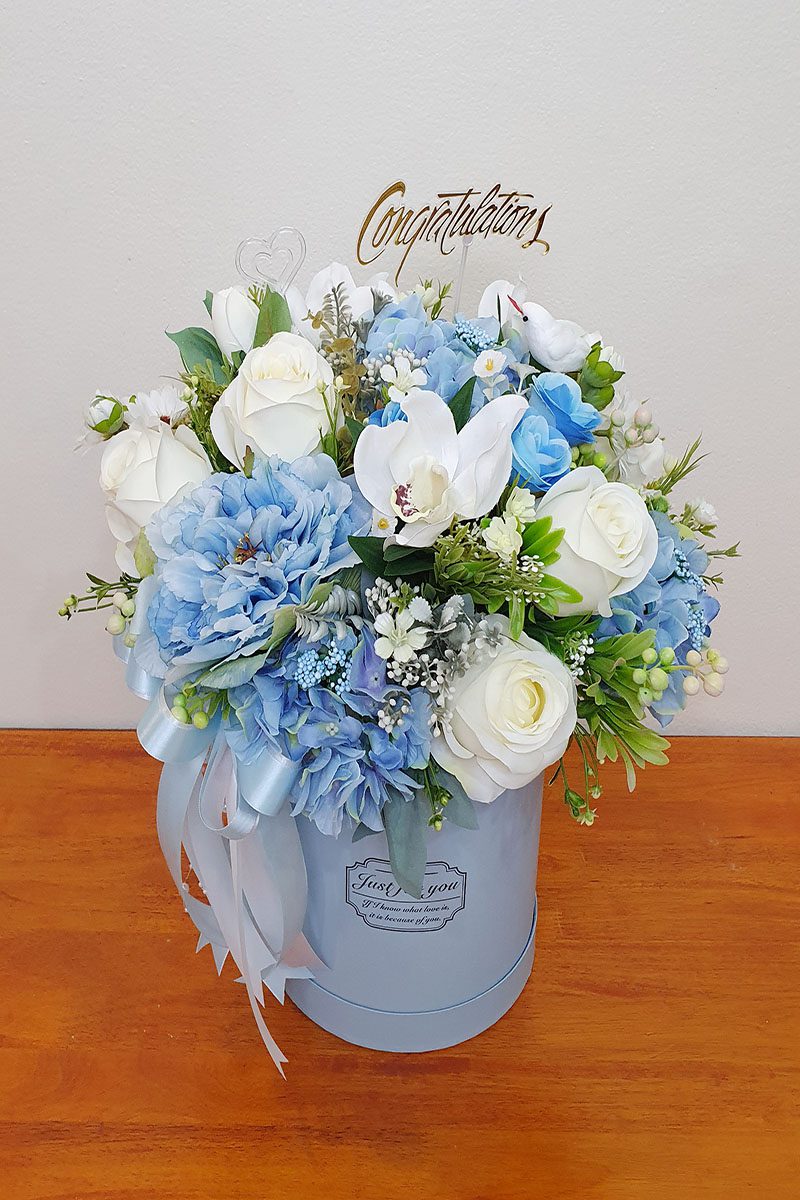 ดอกไม้ประดิษฐ์ โทนสีฟ้า ขาว