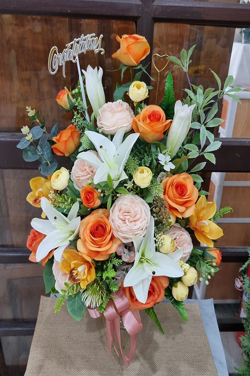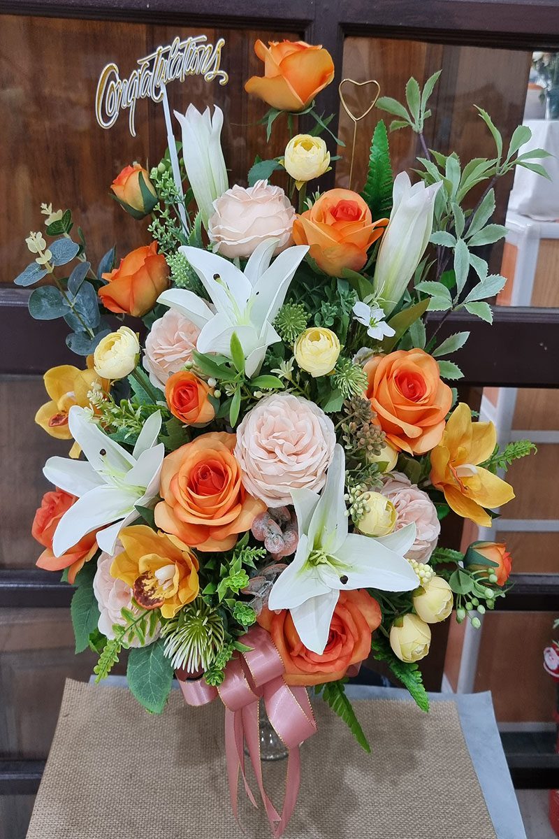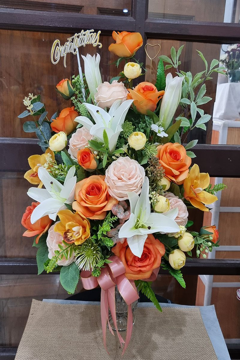 แจกันดอกไม้ประดิษฐ์สีส้ม-AL1008