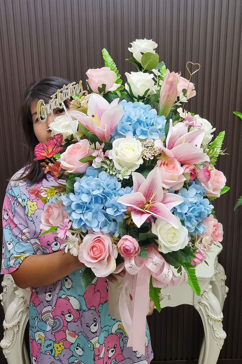 ดอกไม้ประดิษฐ์ โทนสีชมพูฟ้า