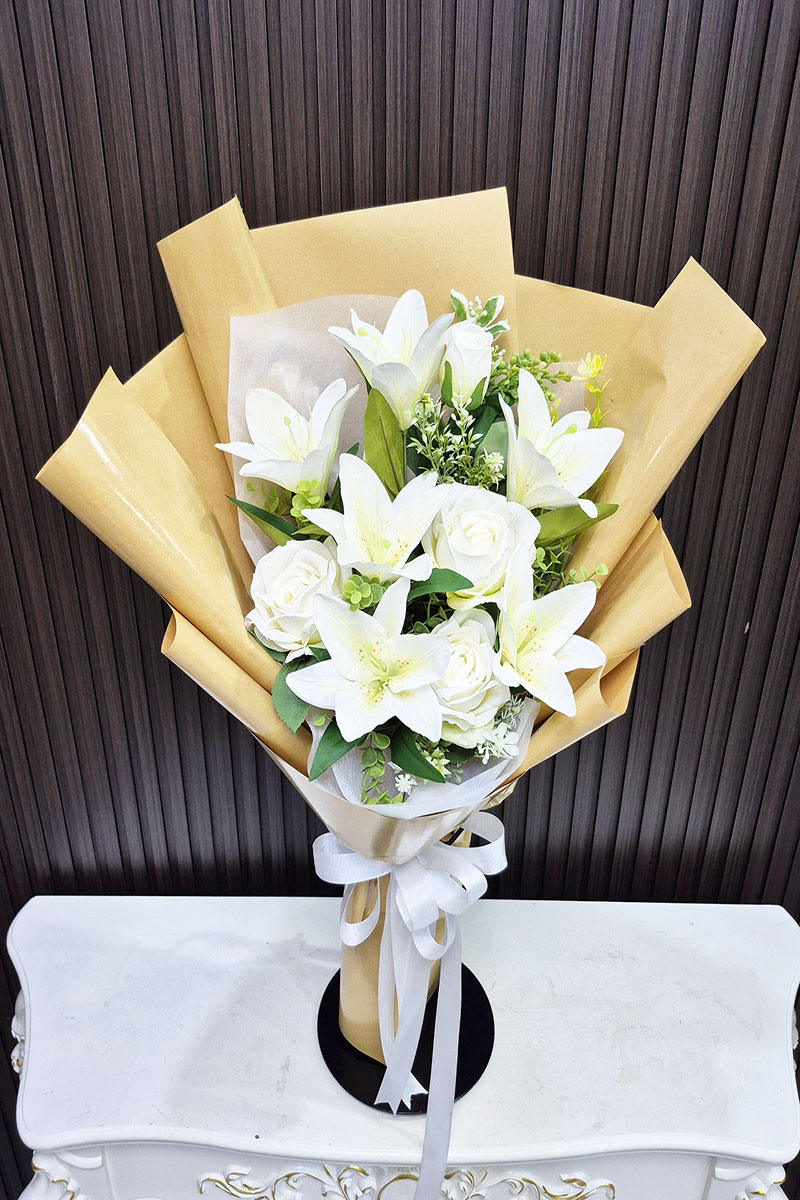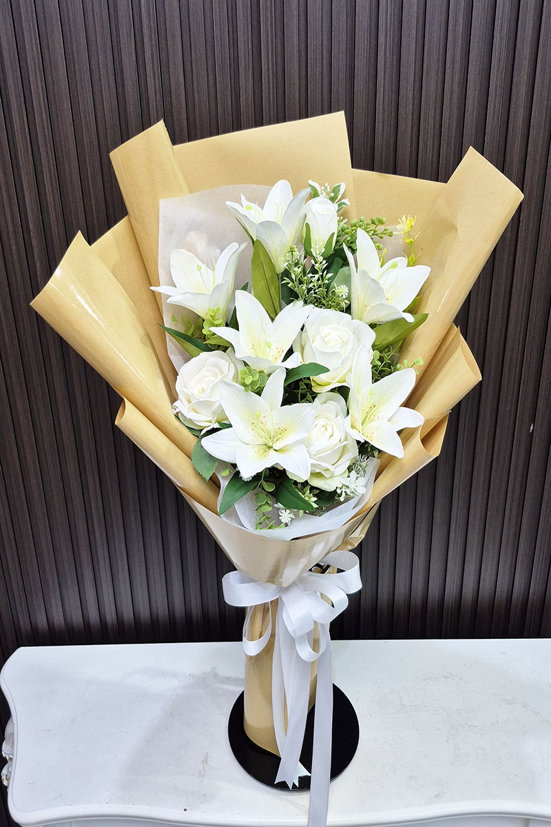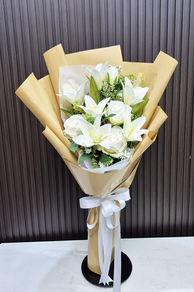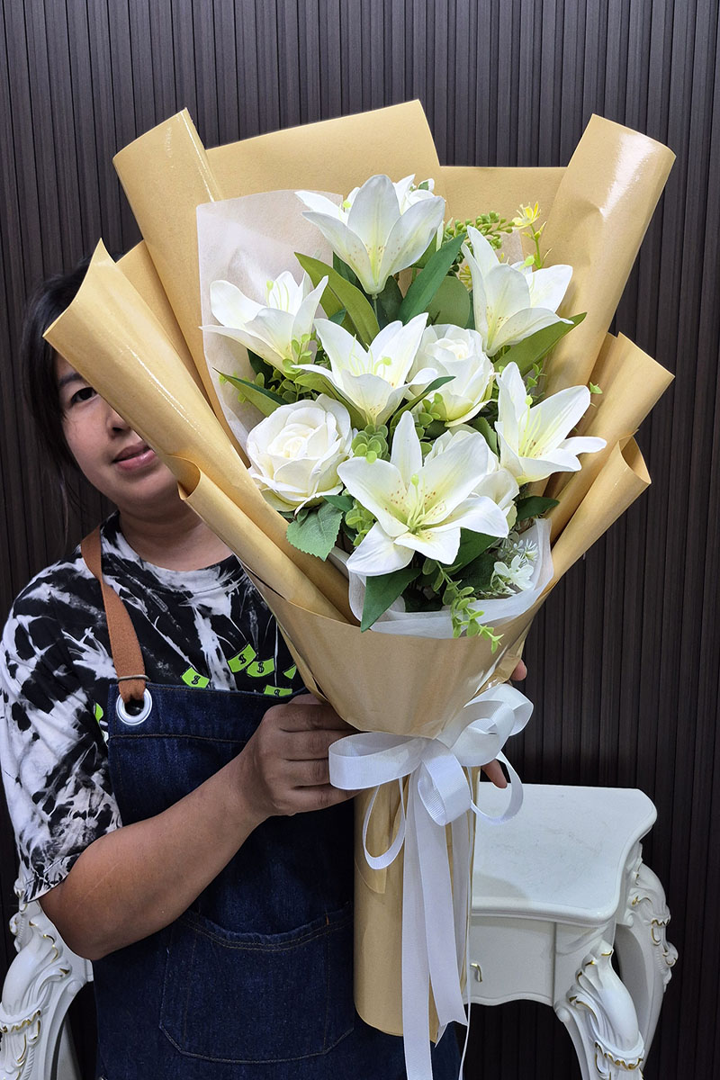 ดอกไม้ประดิษฐ์ จัดช่อดอกกุหลาบ ดอกลิลลี่