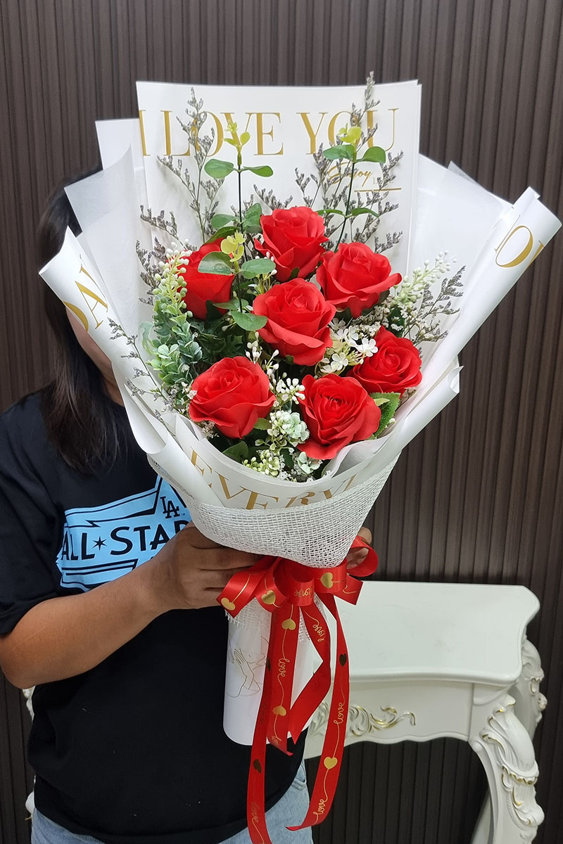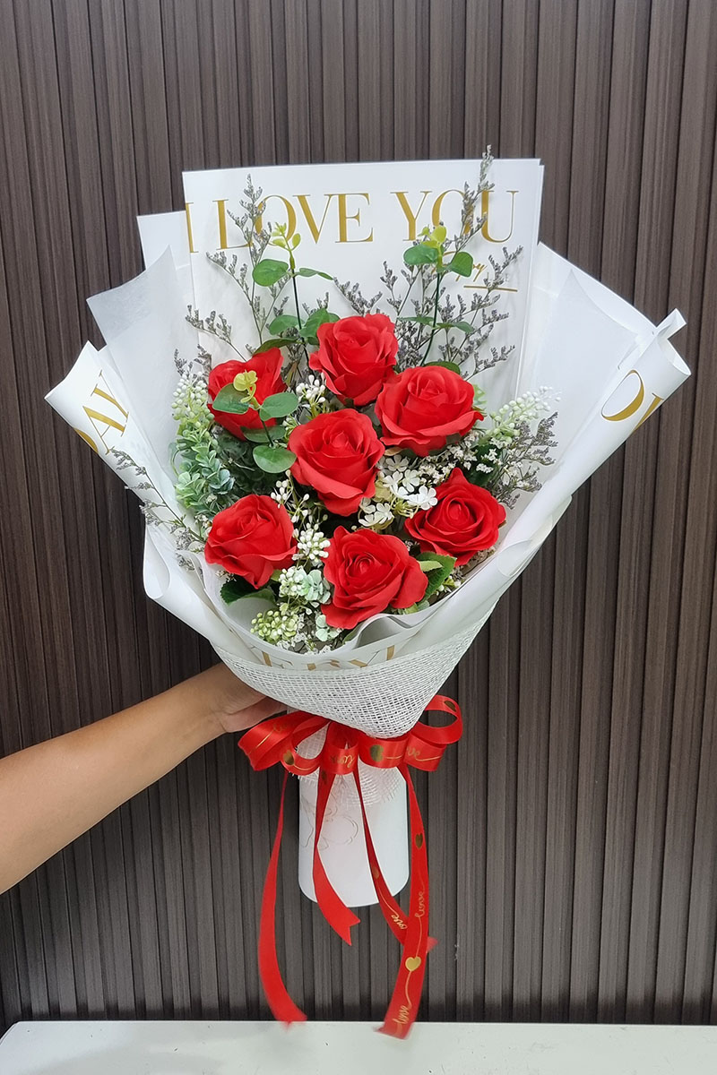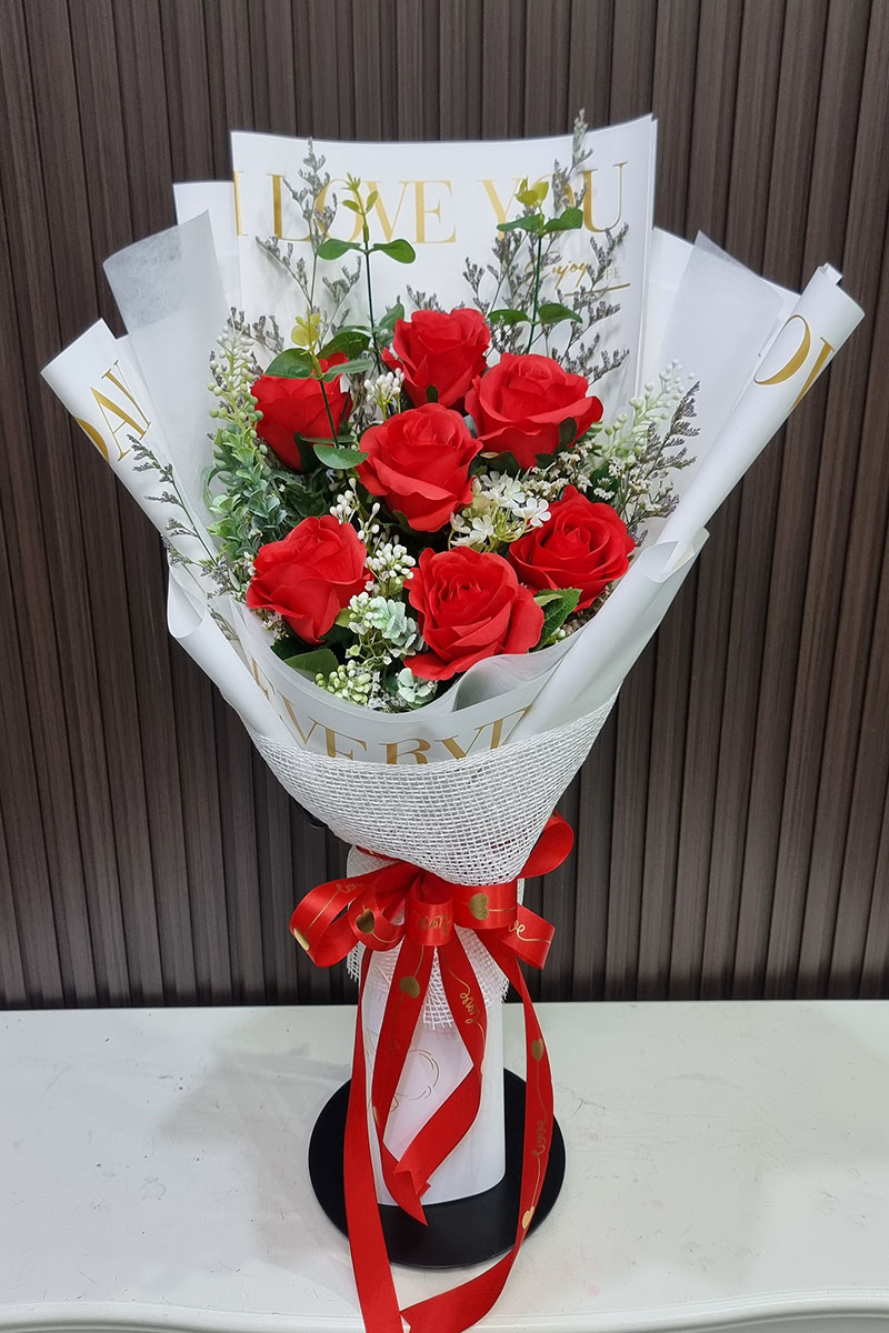 ดอกไม้ประดิษฐ์ จัดช่อดอกกุหลาบ สีแดง