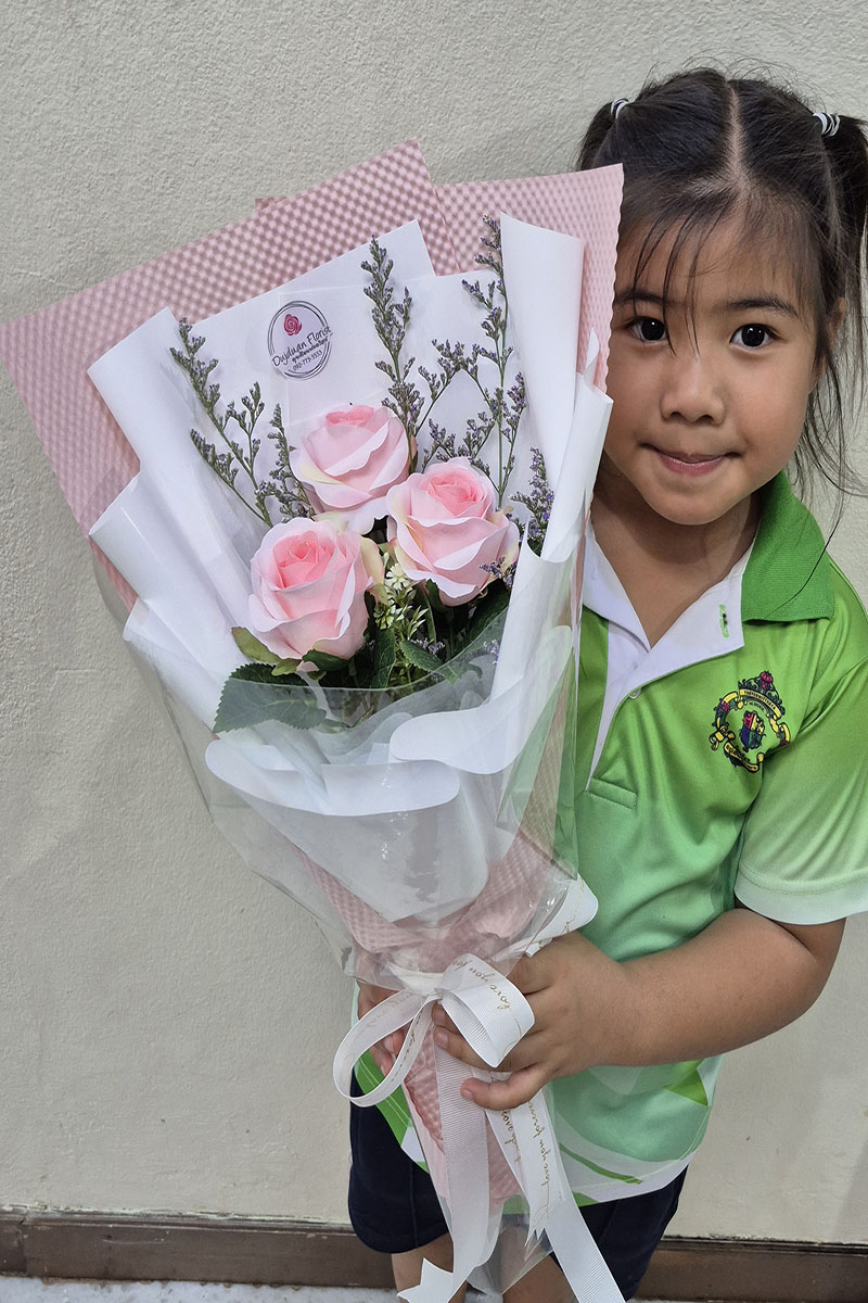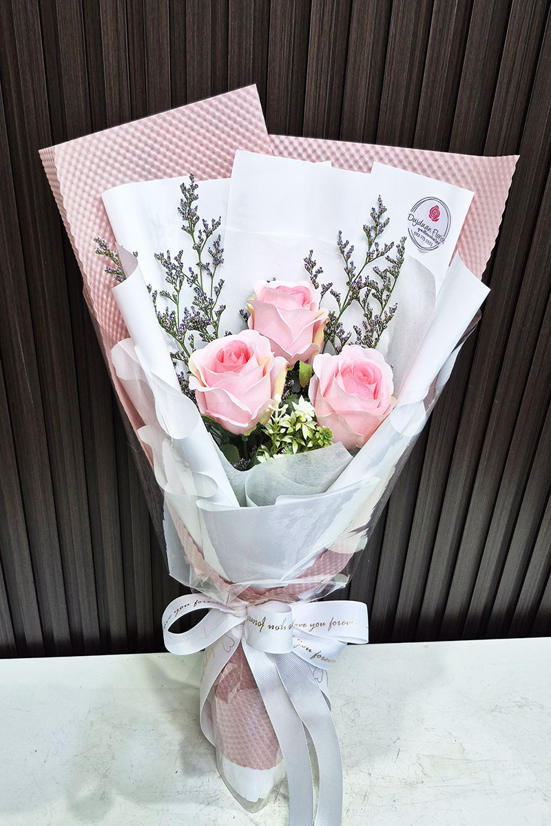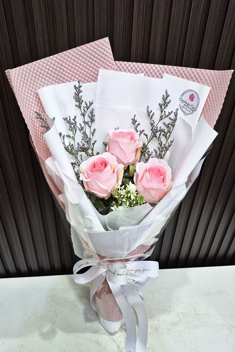 ดอกไม้ประดิษฐ์ จัดช่อดอกกุหลาบ ดอกกุหลาบ  3 ดอก