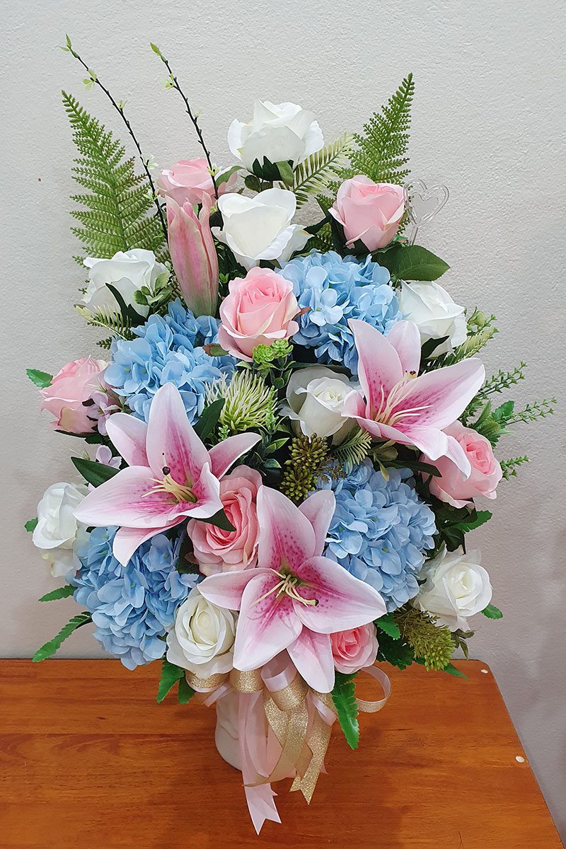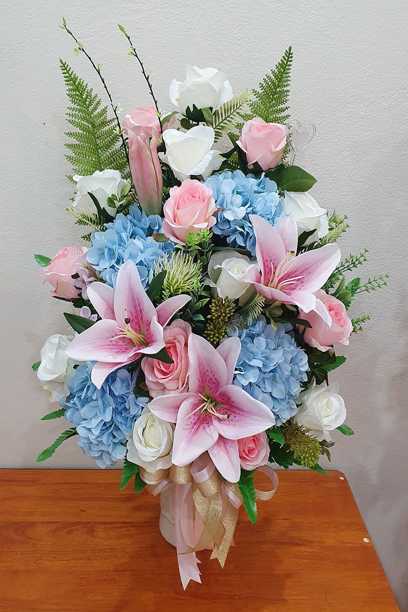 ดอกไม้ประดิษฐ์ จัดโทนสีชมพูฟ้า
