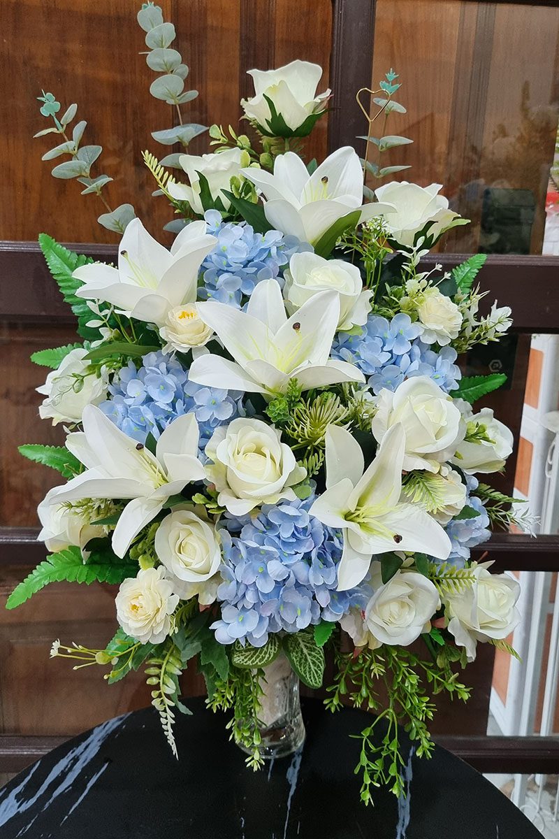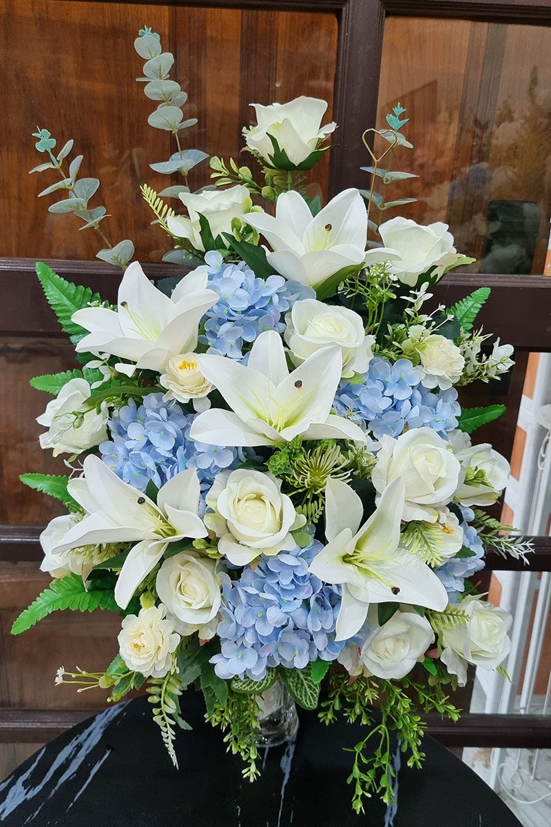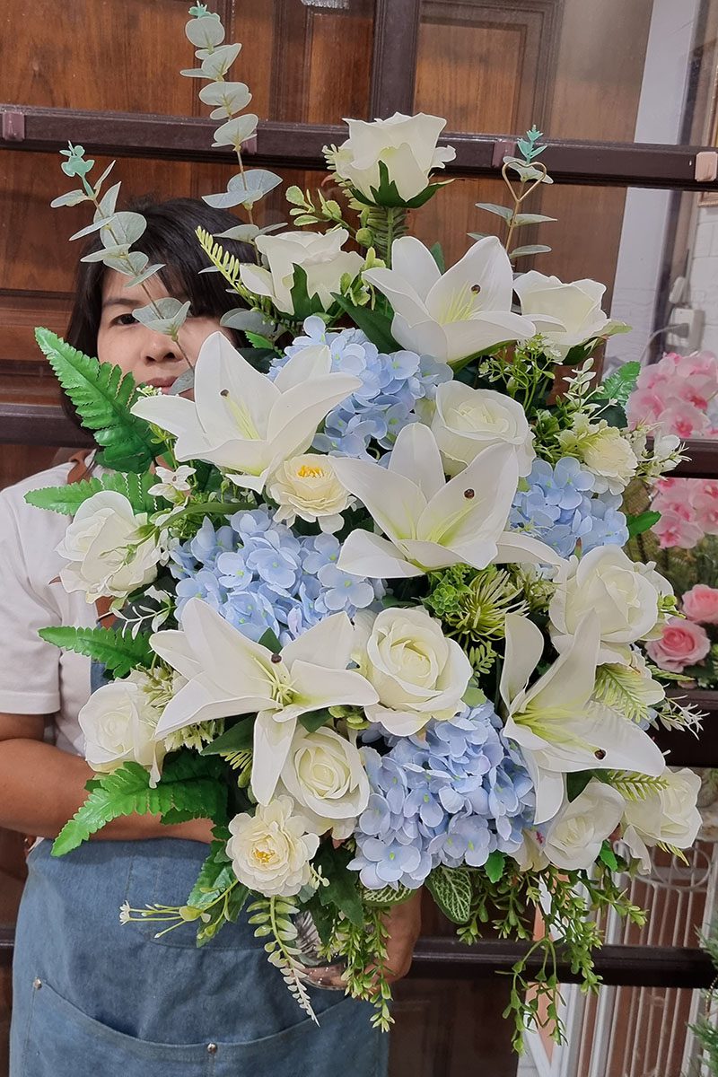 ดอกไม้ประดิษฐ์ จัดโทนสีขาวฟ้า
