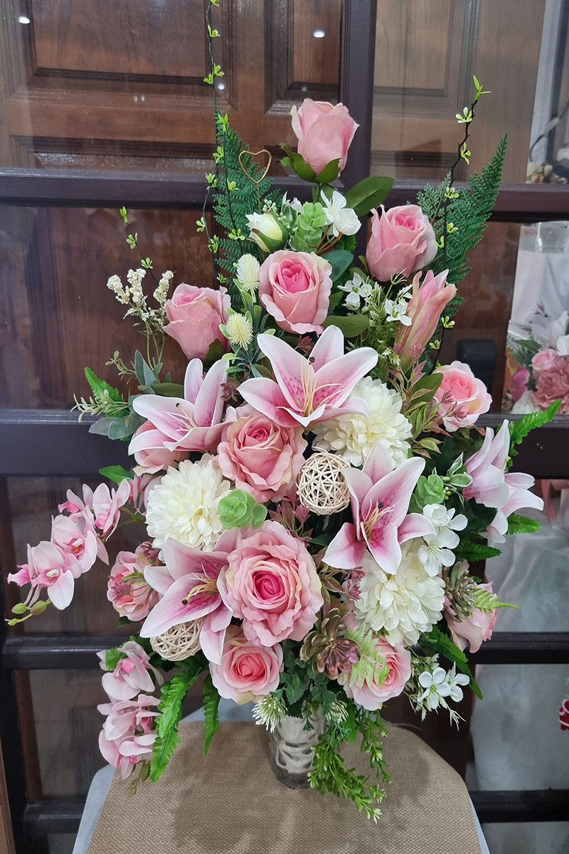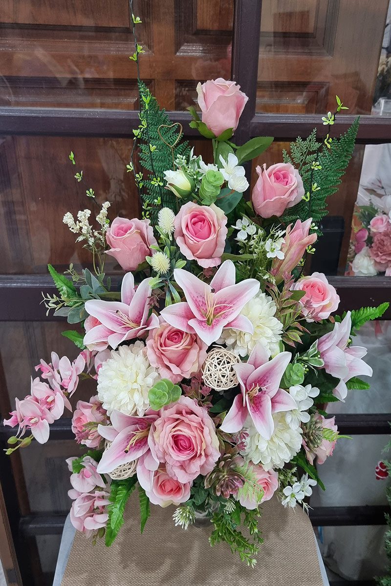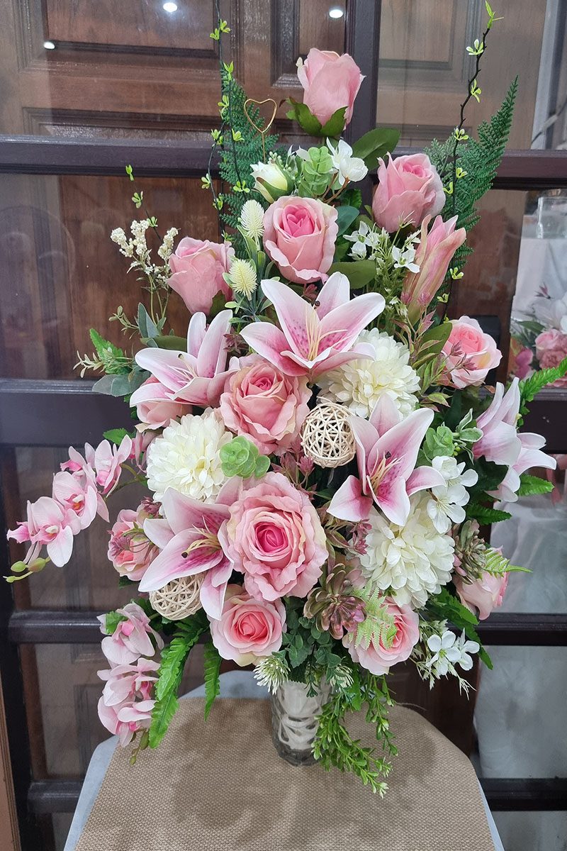 ดอกไม้ประดิษฐ์ จัดโทนสีชมพู ขาว