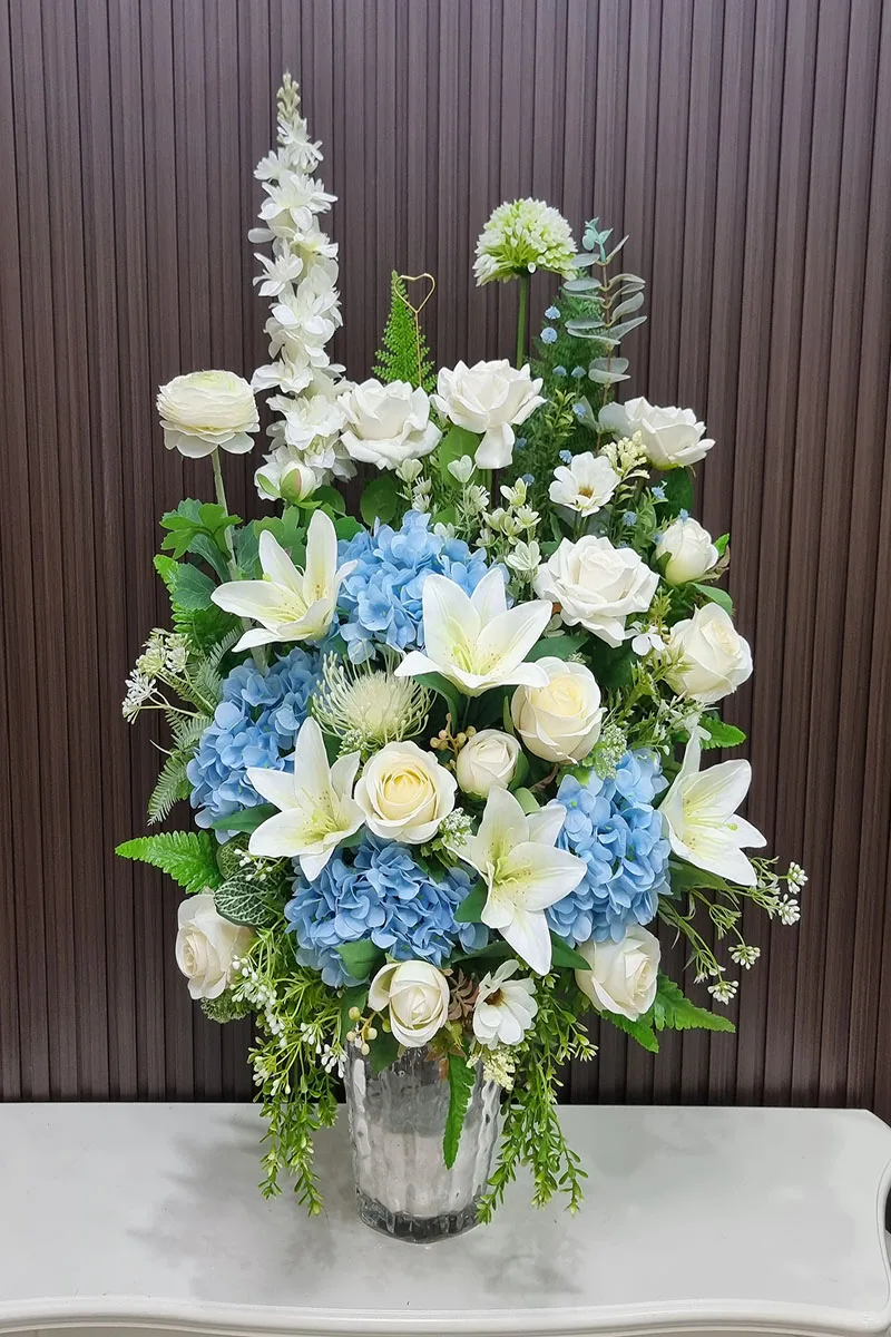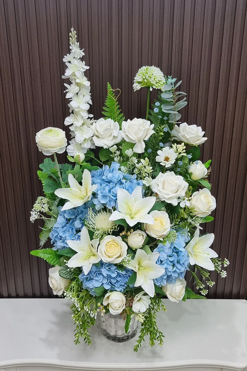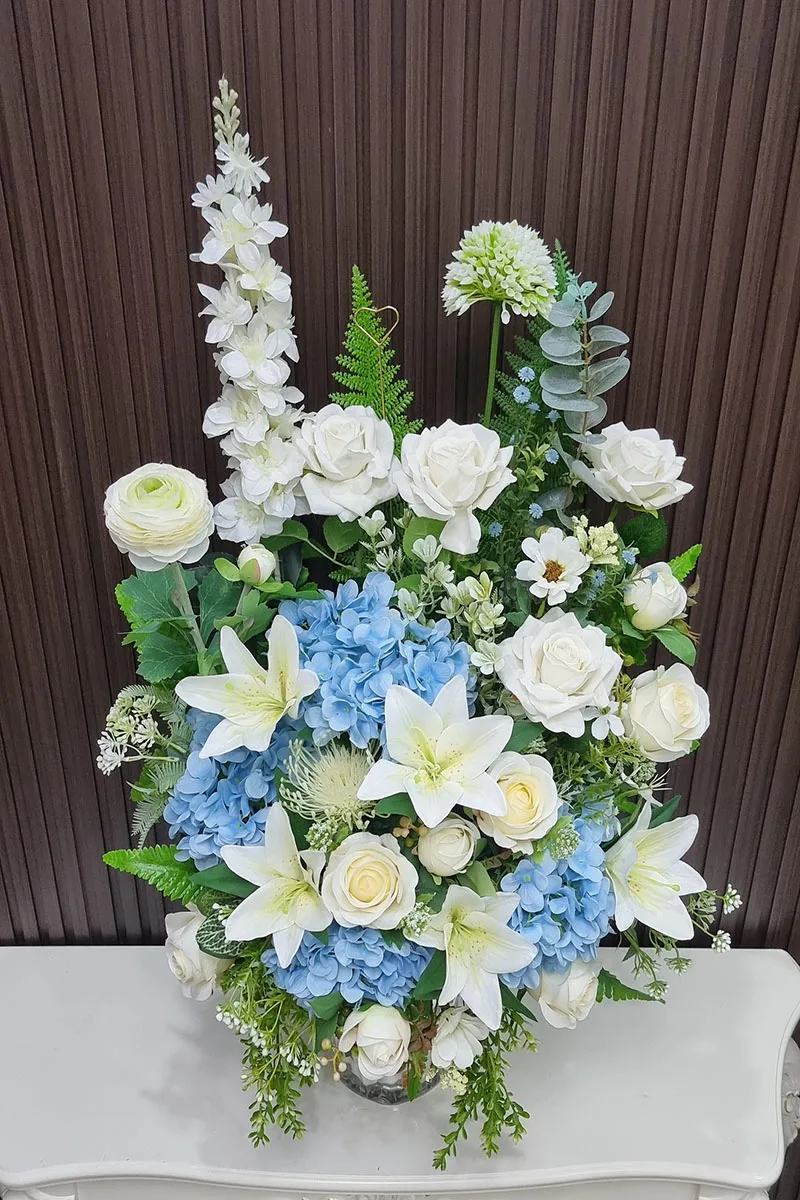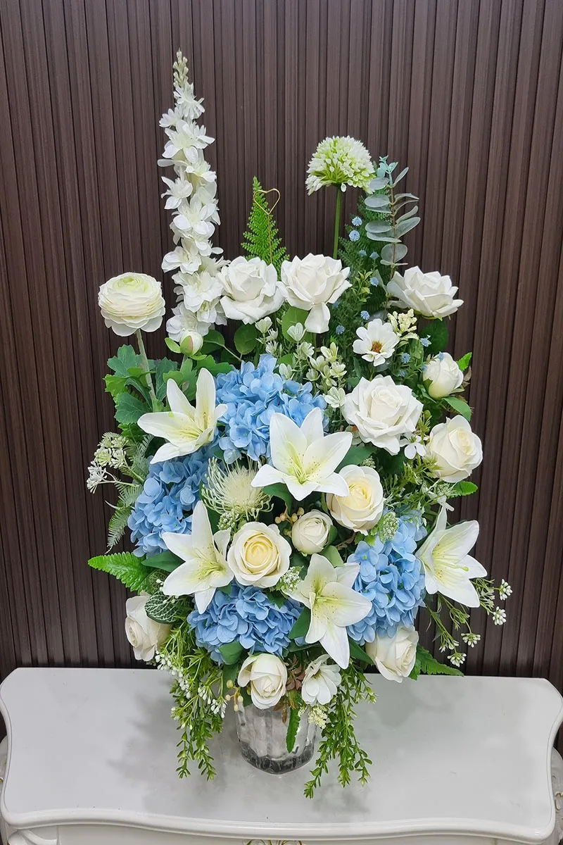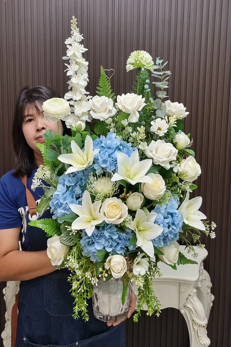 ดอกไม้ประดิษฐ์ จัดโทนสีขาวฟ้า