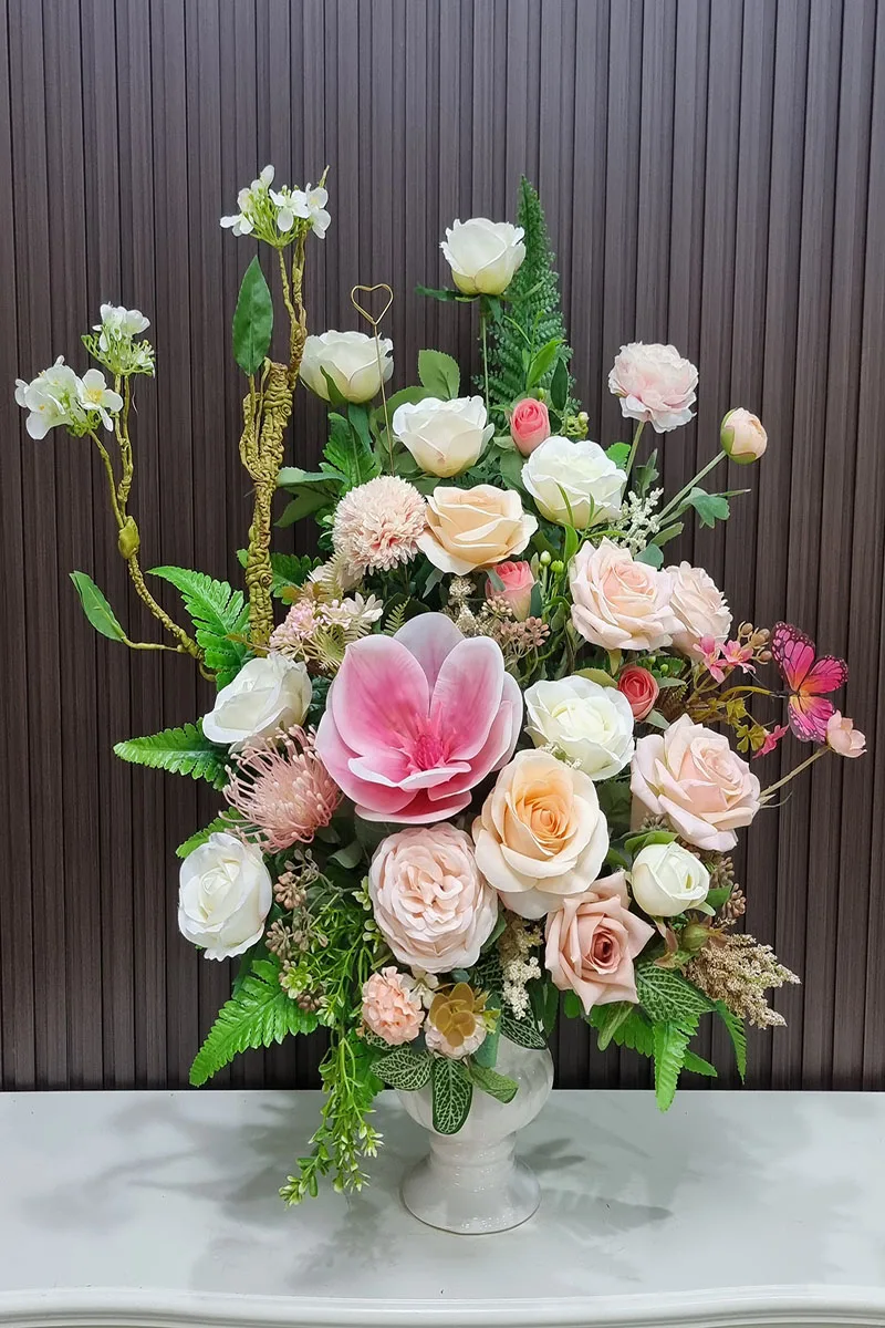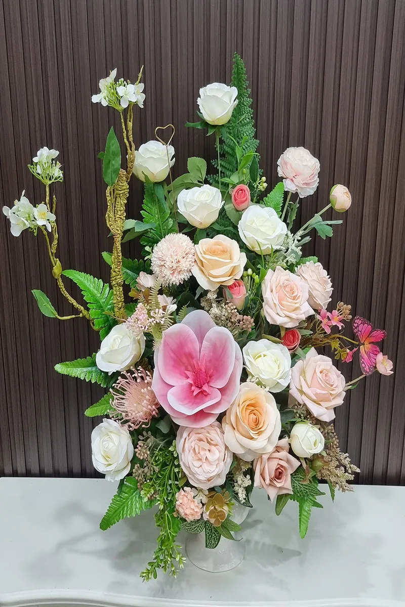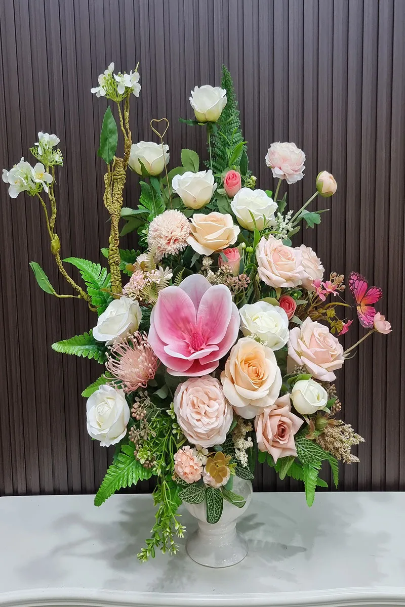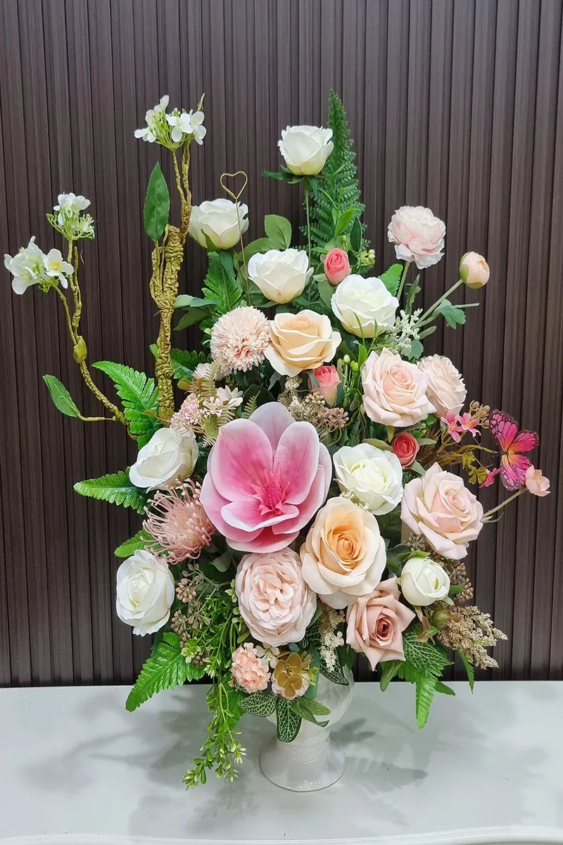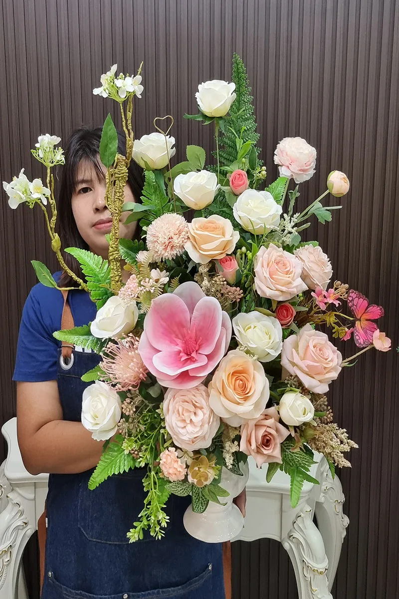 ดอกไม้ประดิษฐ์ จัดโทนสีชมพู ครีม