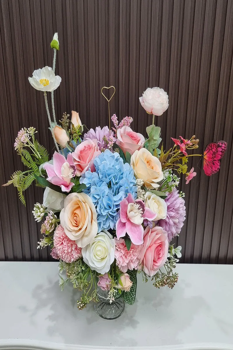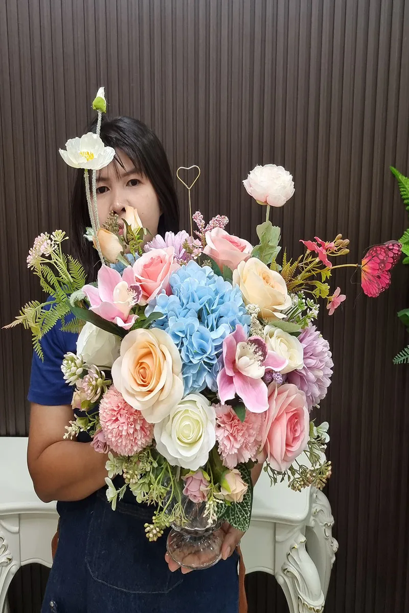 ดอกไม้ประดิษฐ์ จัดโทนสี ฟ้า ชมพู