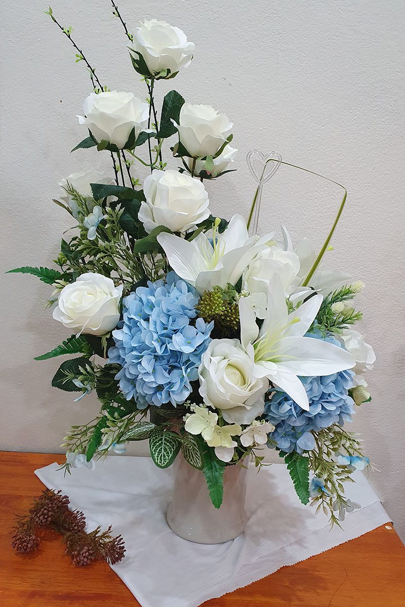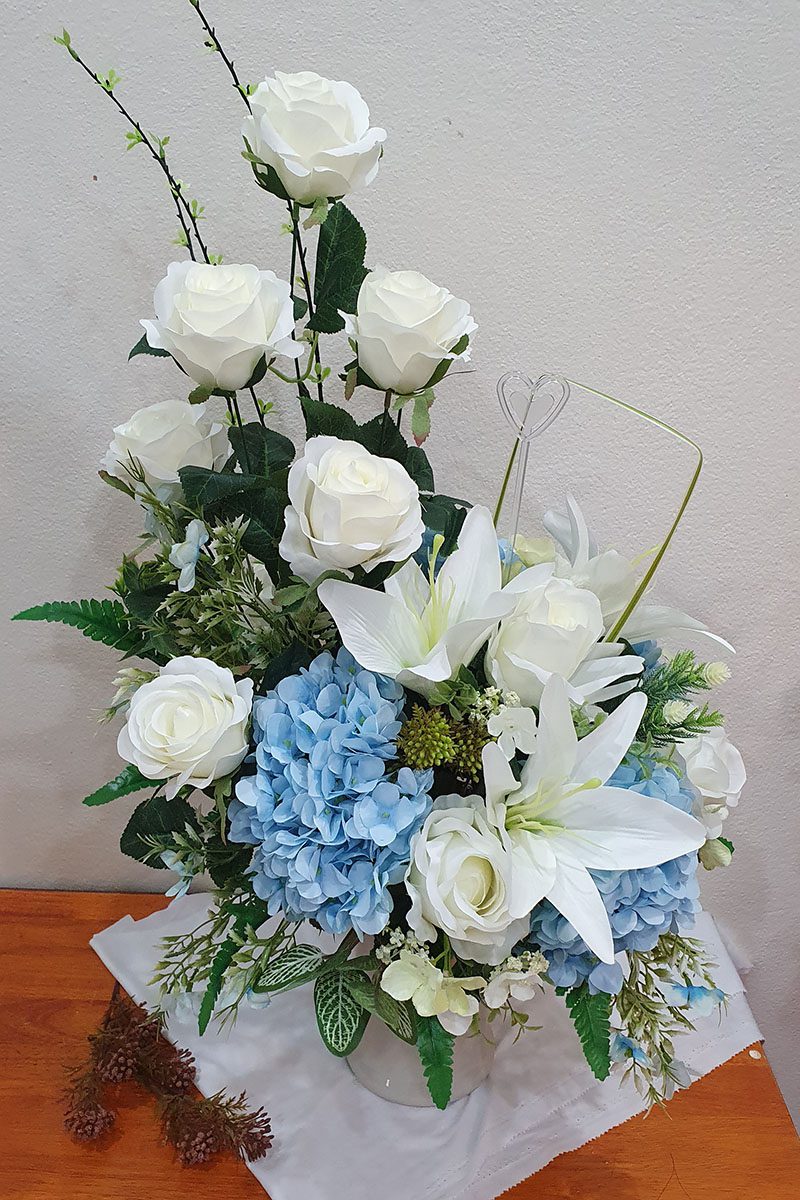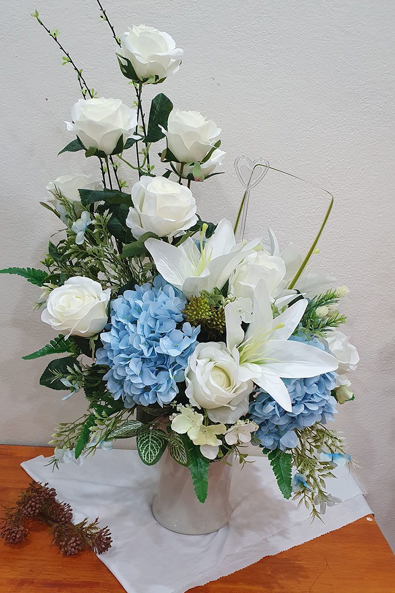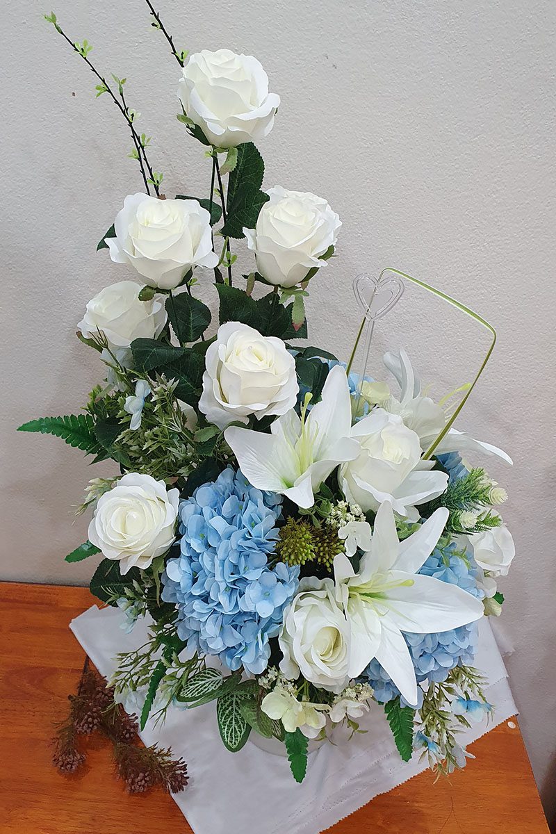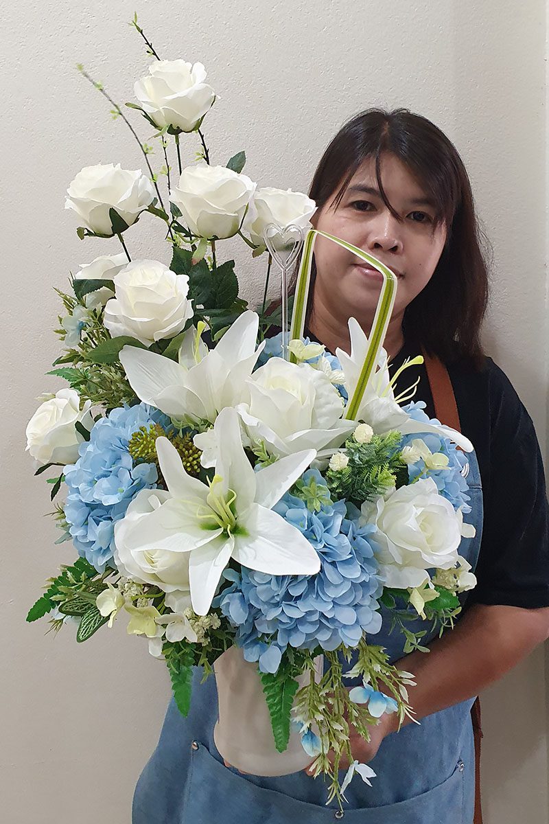 ดอกไม้ประดิษฐ์ จัดโทนสี ฟ้าขาว