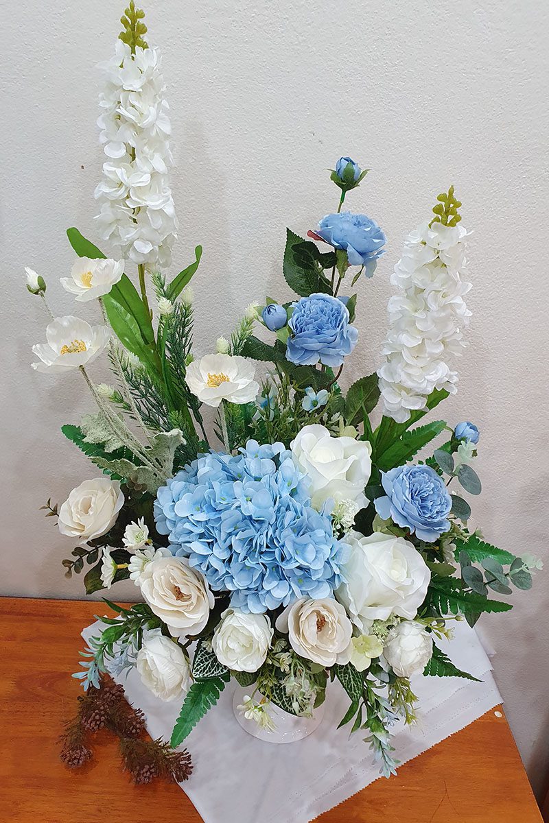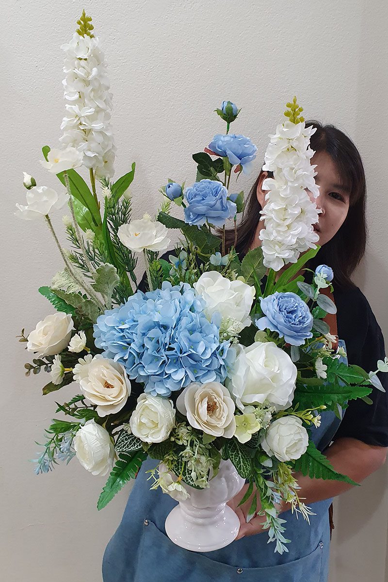 ดอกไม้ประดิษฐ์ จัดโทนสี ฟ้าขาว