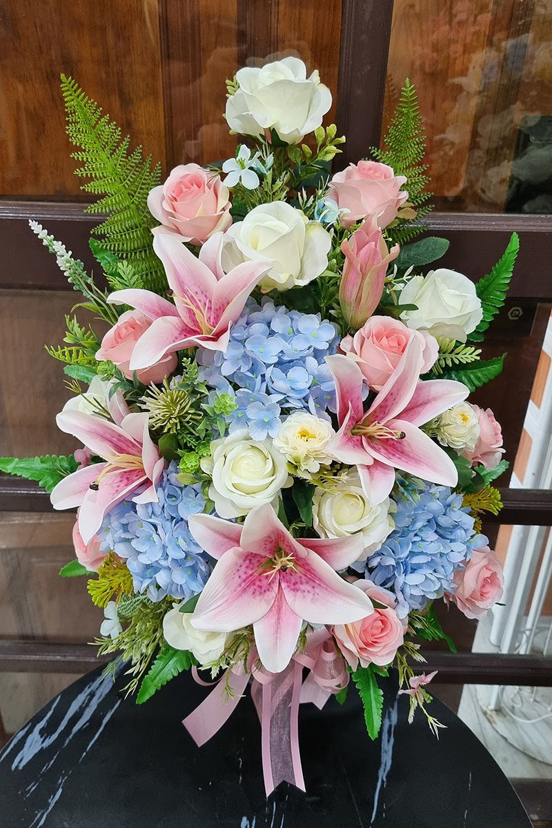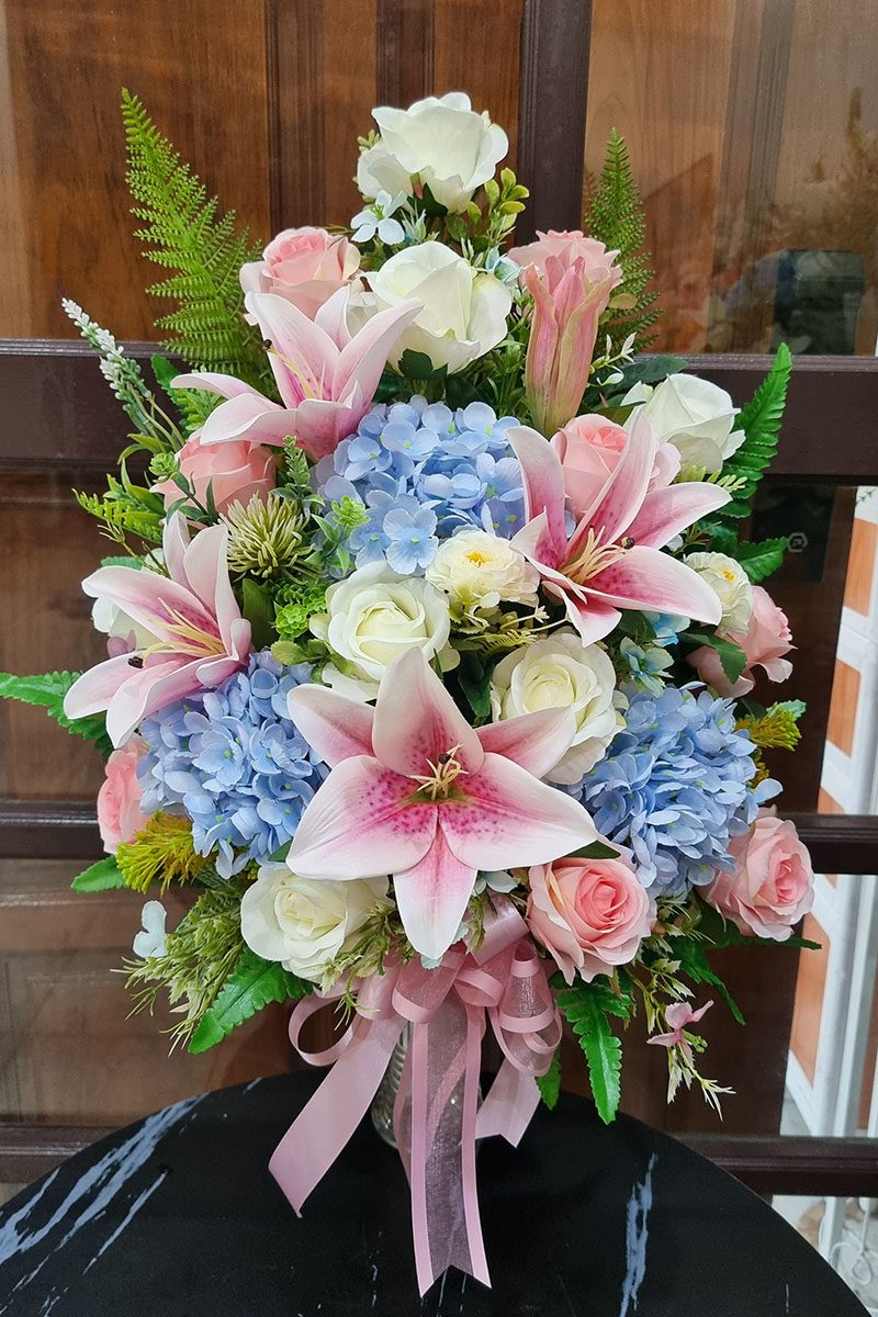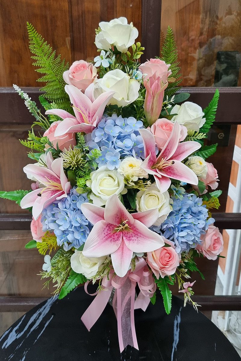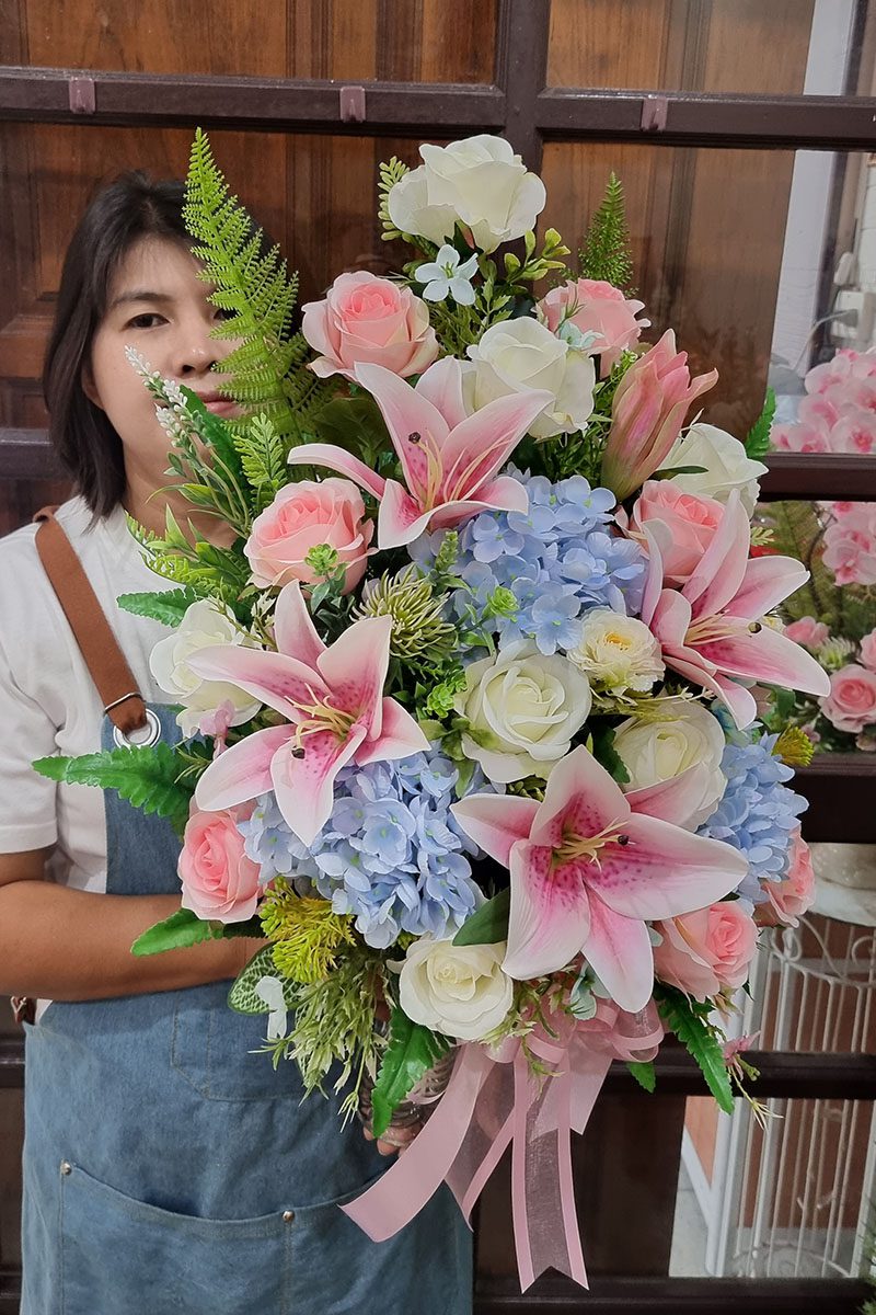 ดอกไม้ประดิษฐ์ จัดโทนสี ชมพู ฟ้า ขาว