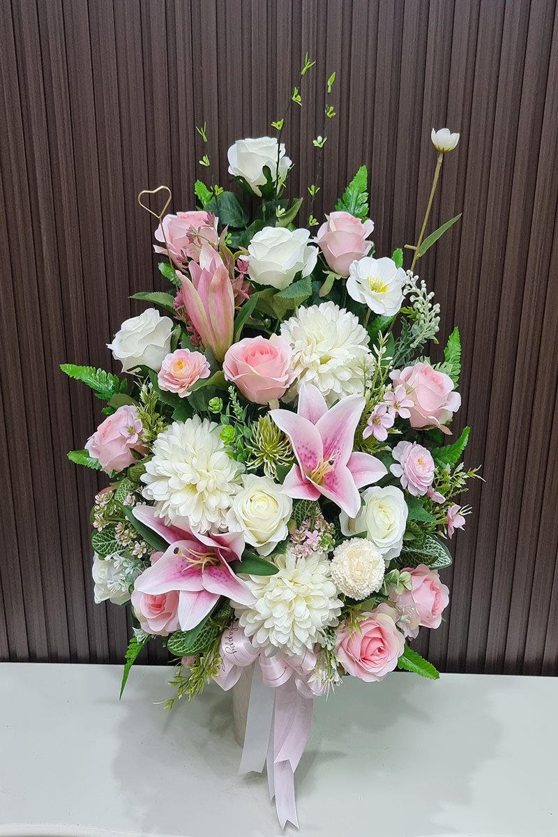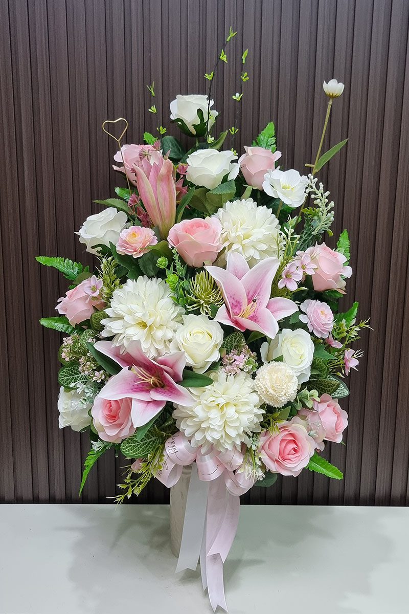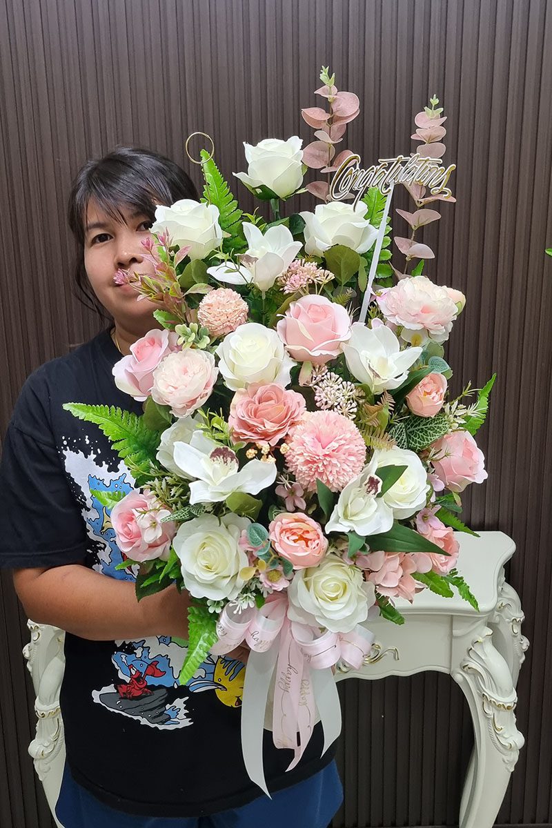 ดอกไม้ประดิษฐ์ จัดโทนสี ขาว ชมพู