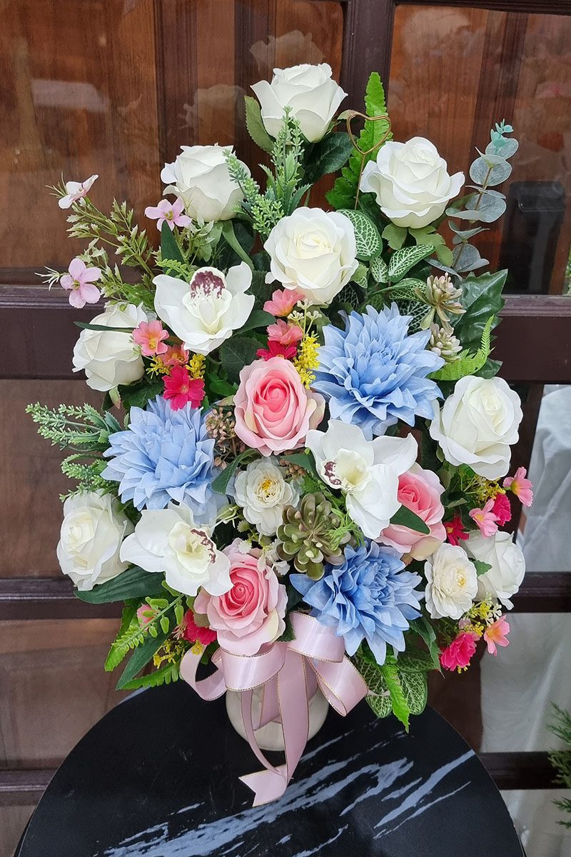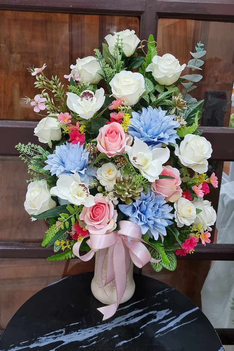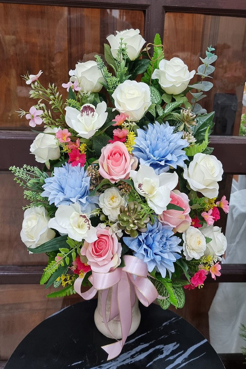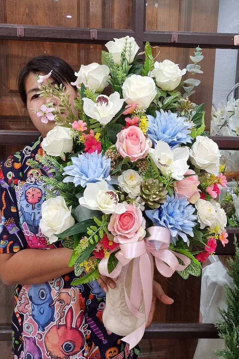 ดอกไม้ประดิษฐ์ จัดโทนสีขาว ฟ้า ชมพู