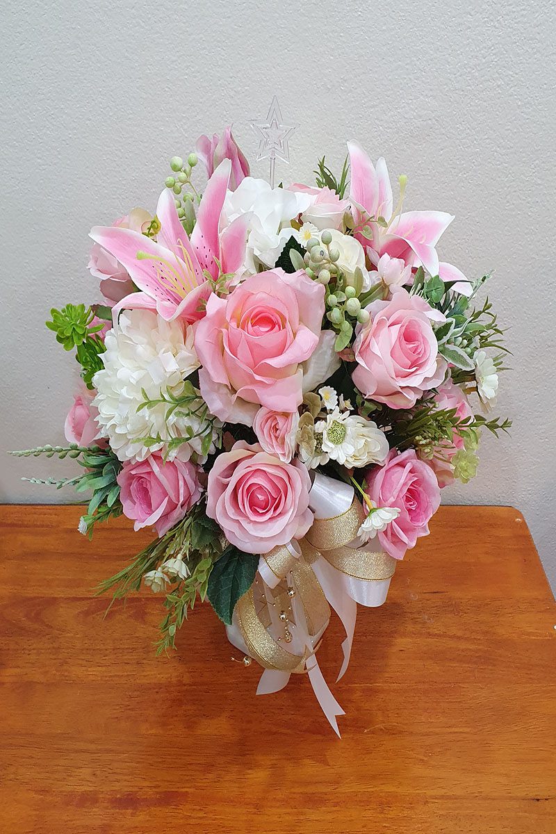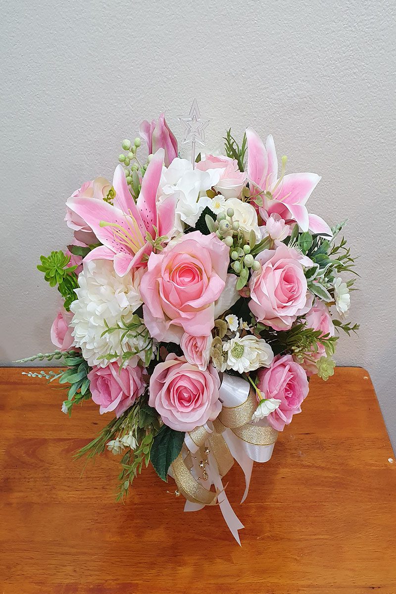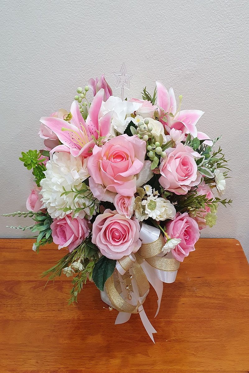 ดอกไม้ประดิษฐ์ จัดโทนสีชมพูขาว