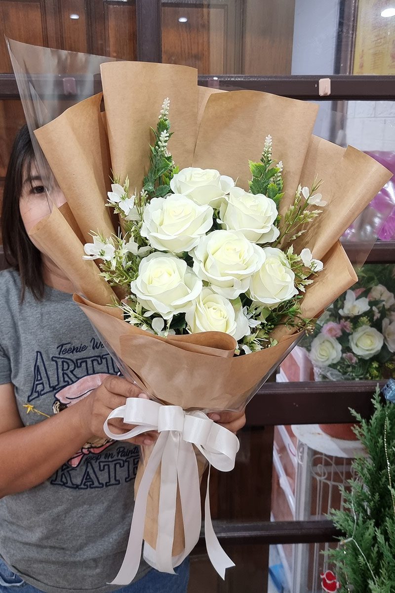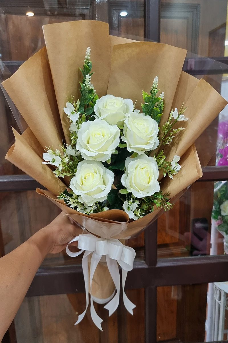 ดอกไม้ประดิษฐ์จัดช่อ โทนาขาว สวยเหมือนจริง
