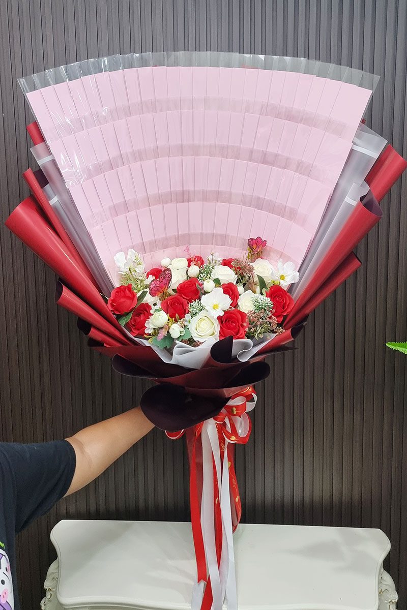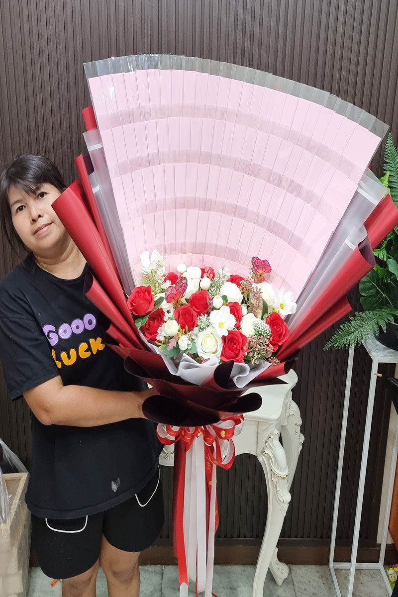 ดอกไม้ประดิษฐ์ โทนสีแดงขาว จัดช่อสีแดง