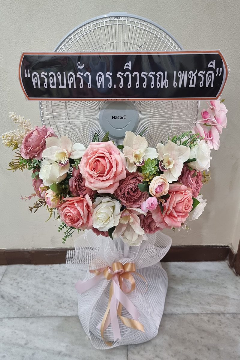 พวงหรีดพัดลม ดอกไม้ประดิษฐ์