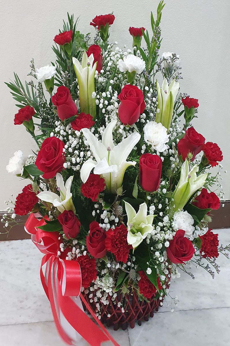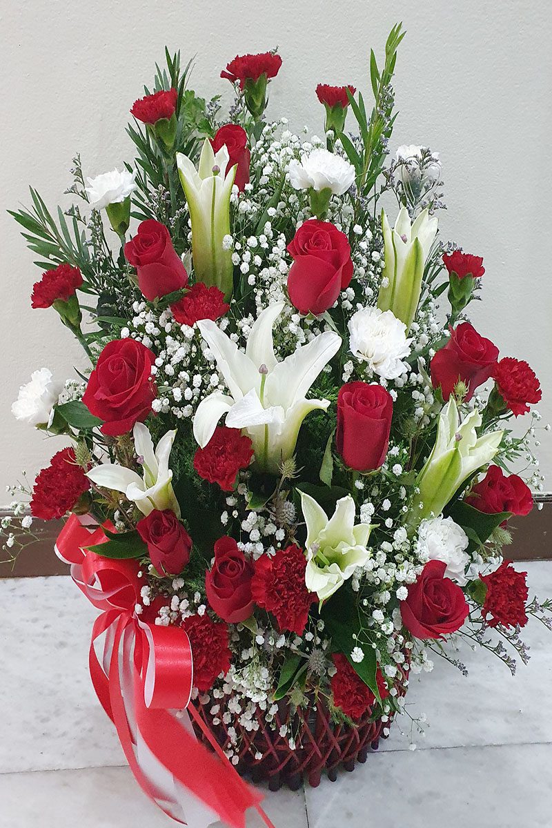 กระเช้าดอกไม้ สีแดง ดอกกุหลาบ: สื่อรัก โรแมนติก และความปรารถนาดี