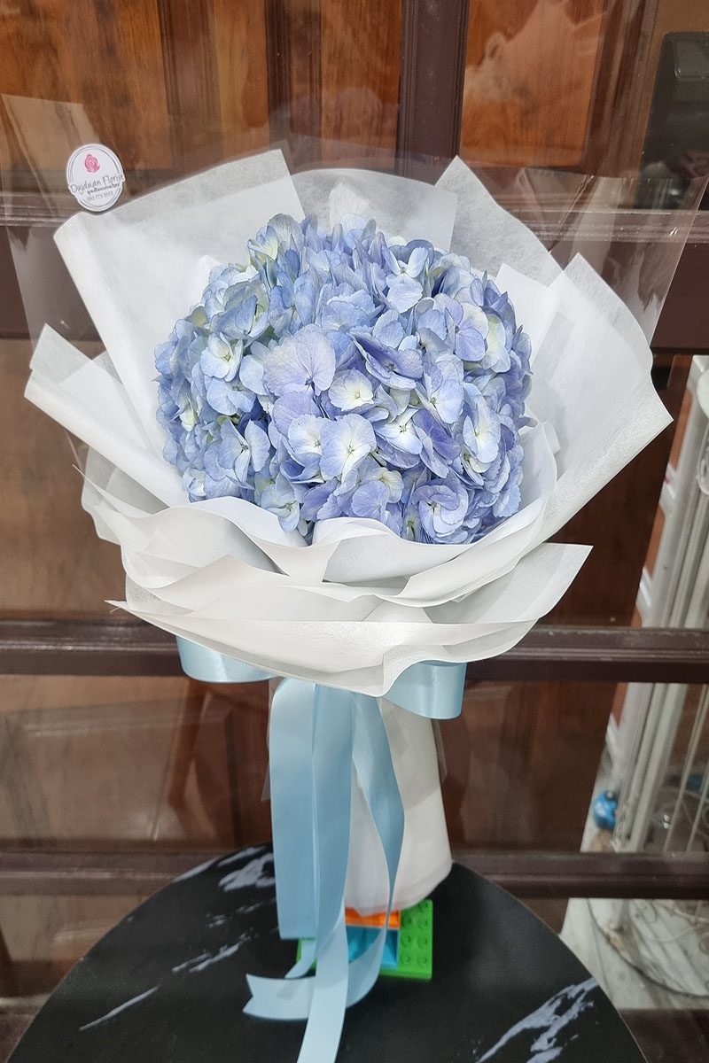 ดอกไฮเดรนเยียสีฟ้า   จัดช่อ