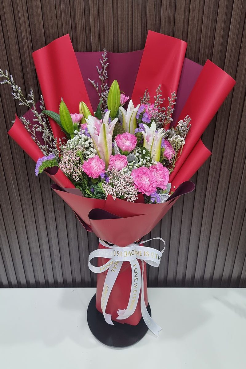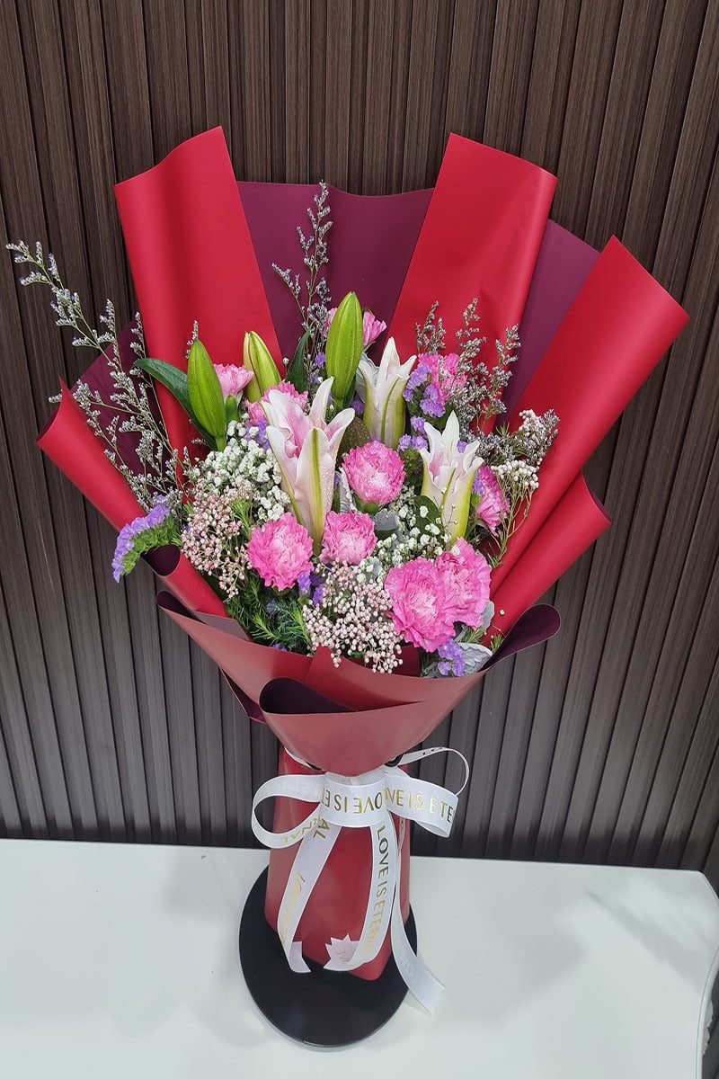 ดอกลิลลี่ และดอกคานชั่น จัดช่อ แซมดอกยิปซี แคสเปียร์