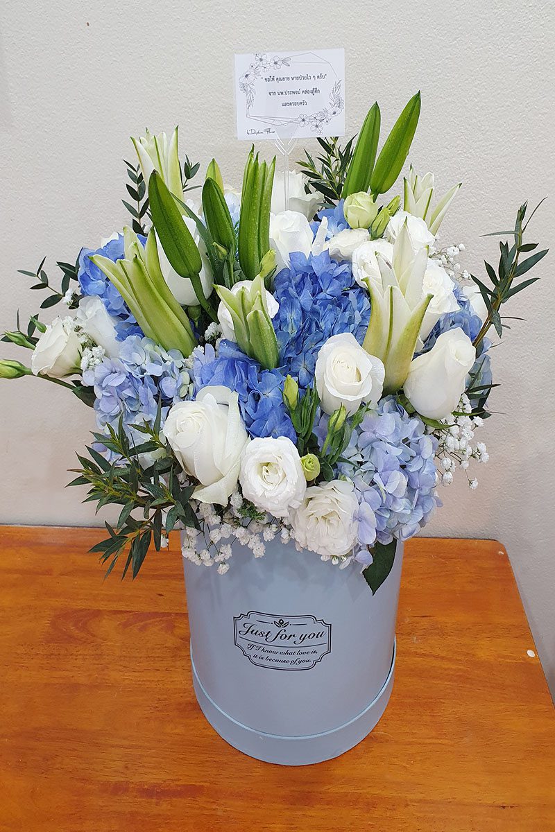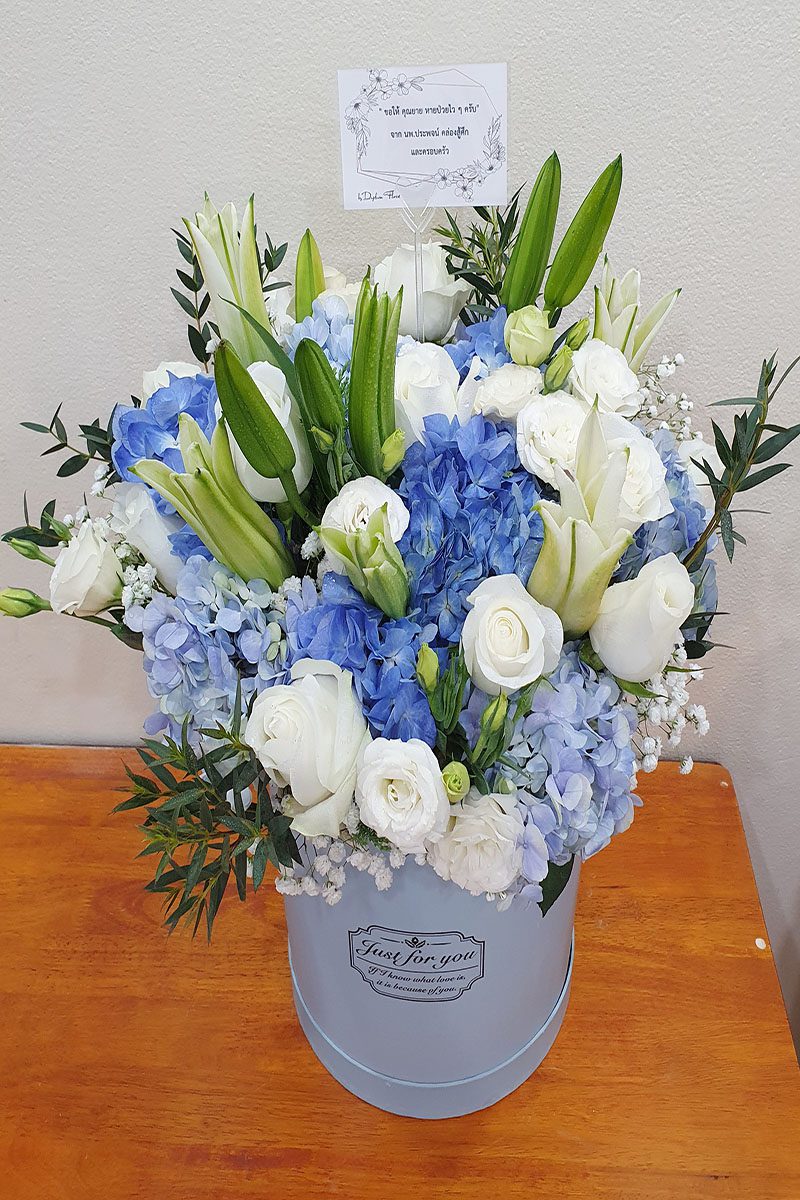 ความหวังและกำลังใจ: ดอกไม้สีฟ้า สื่อถึงความหวัง กำลังใจ และความปรารถนาดี เหมาะสำหรับมอบให้กับผู้ป่วย บุคคลที่กำลังเผชิญปัญหา หรือในงานมงคลต่างๆ