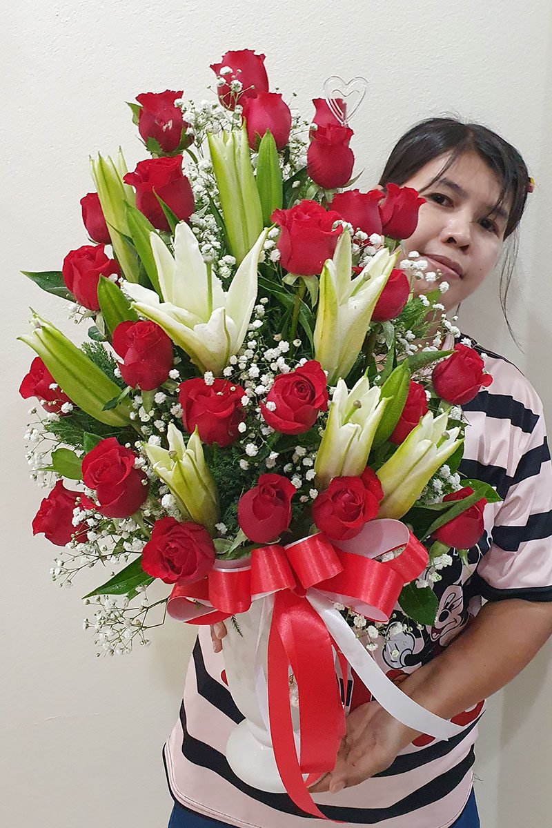 ดอกกุหลาบ และดอกลิลลี่  แซมดอกยิปซี