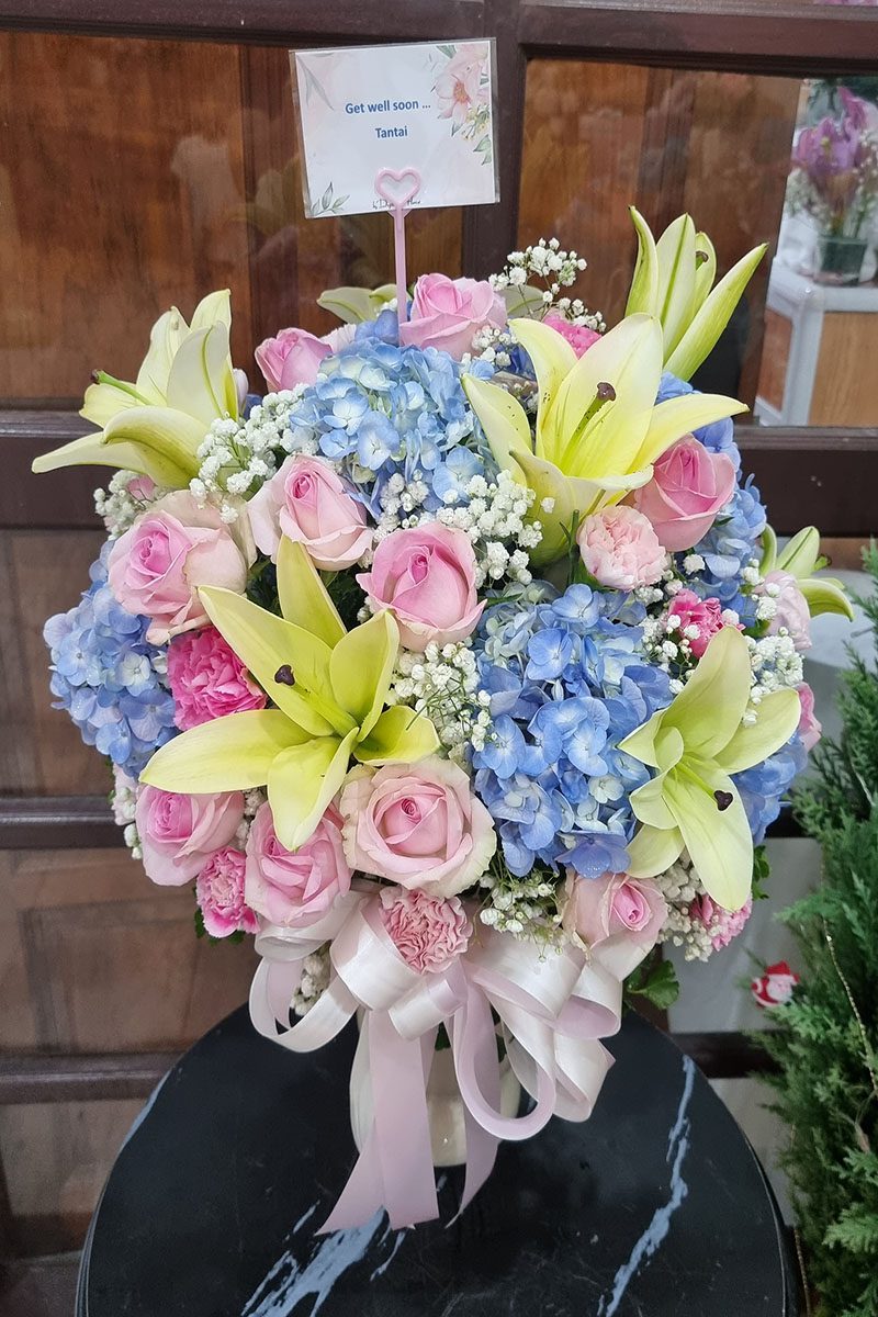 กรุณาแจ้งทางร้านหากต้องการ เปลี่ยนชนิดดอกไม้ เพิ่มขนาด เพิ่มดอกไม้ จัดให้ได้