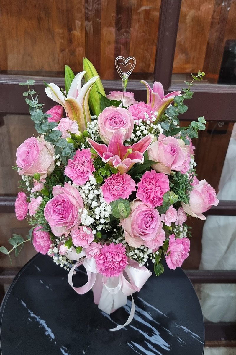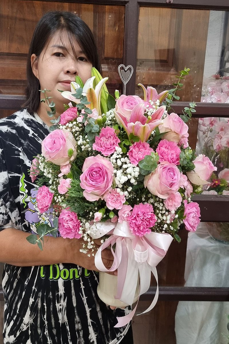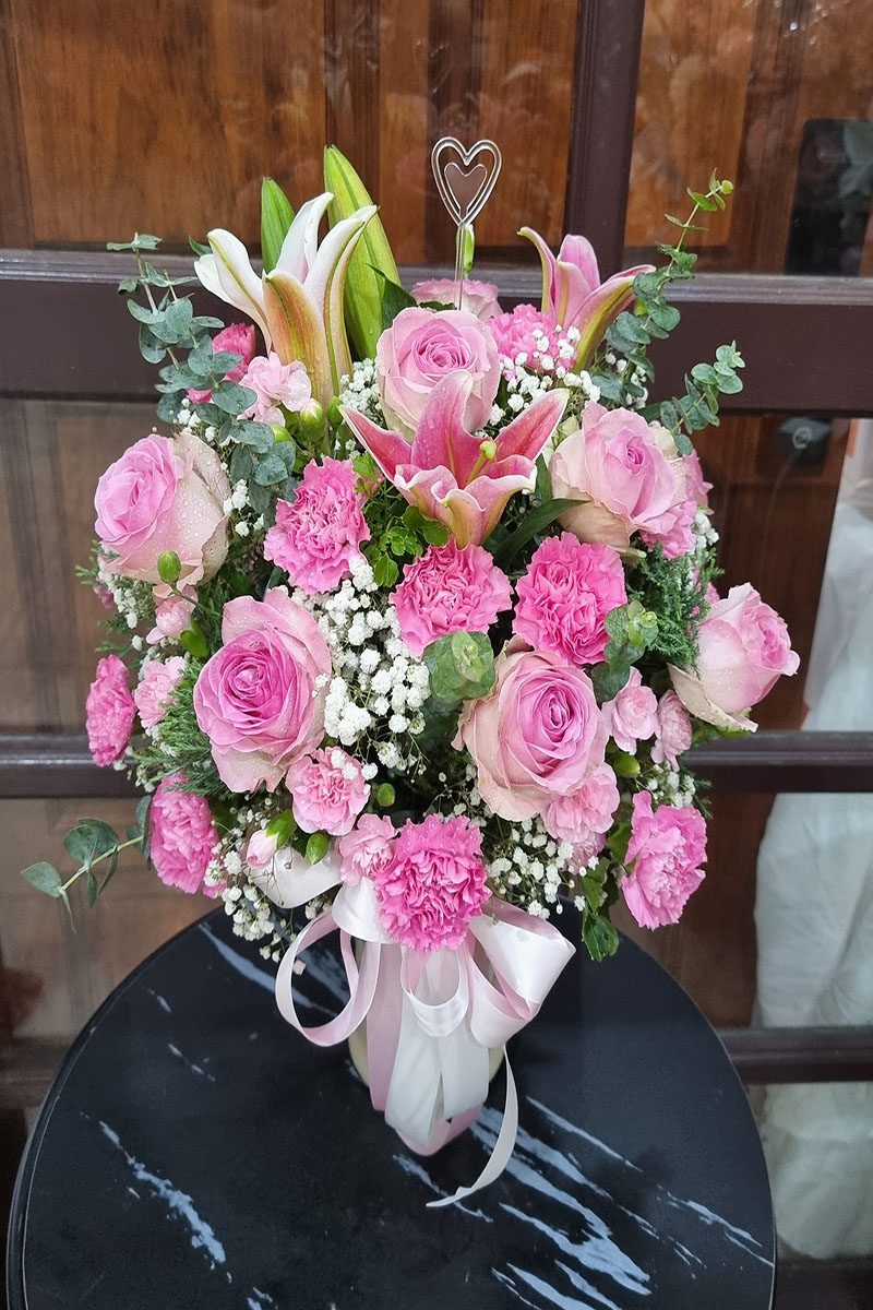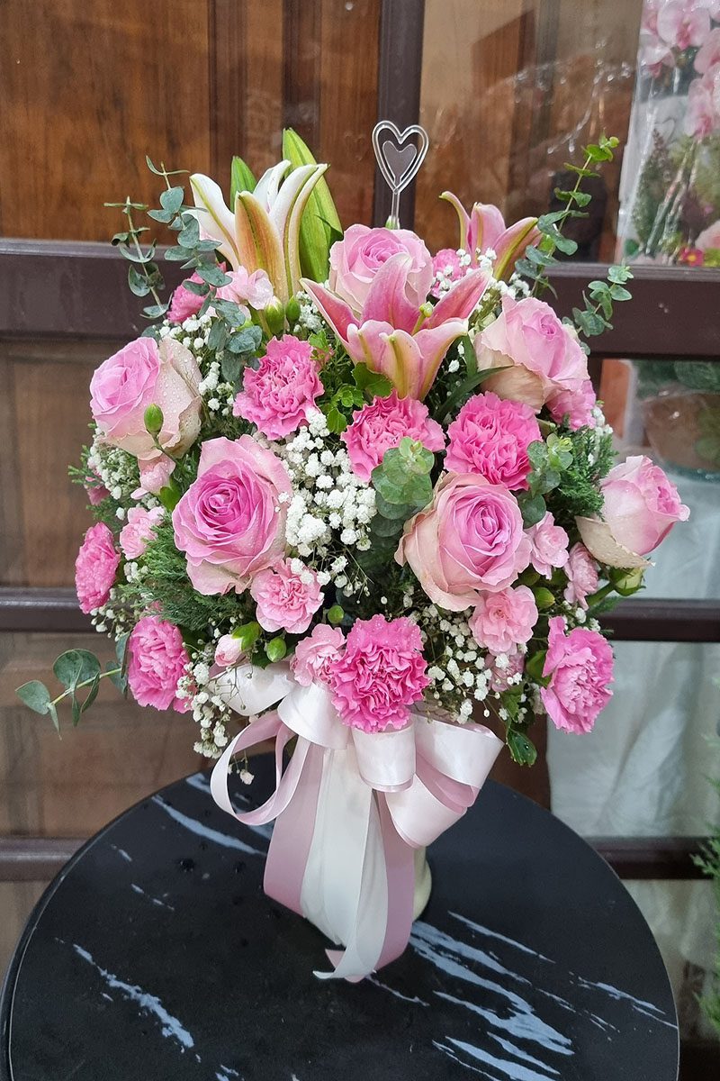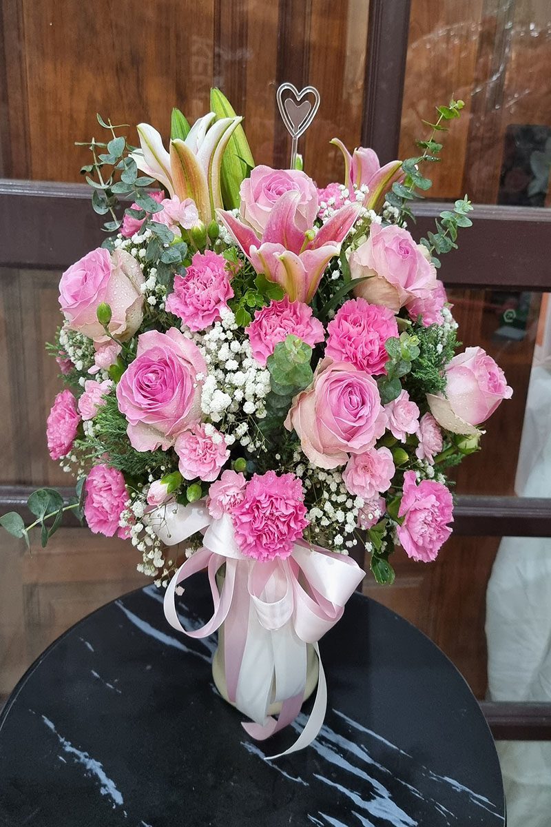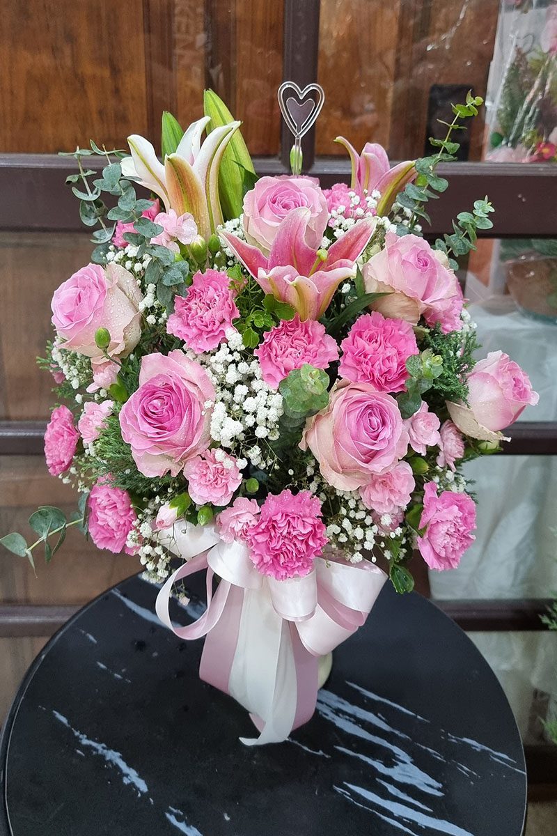 แจกันดอกไม้สดสีชมพู
