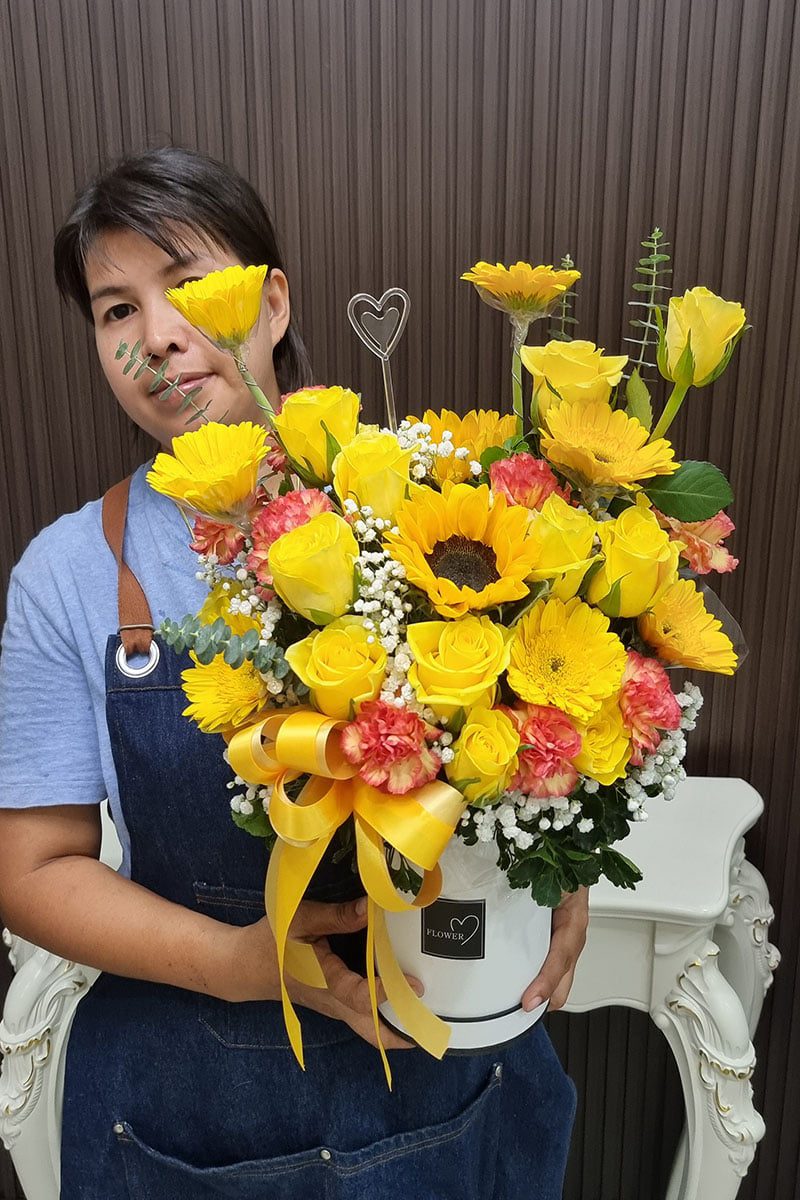 แจกันดอกไม้สดแบบกล่อง