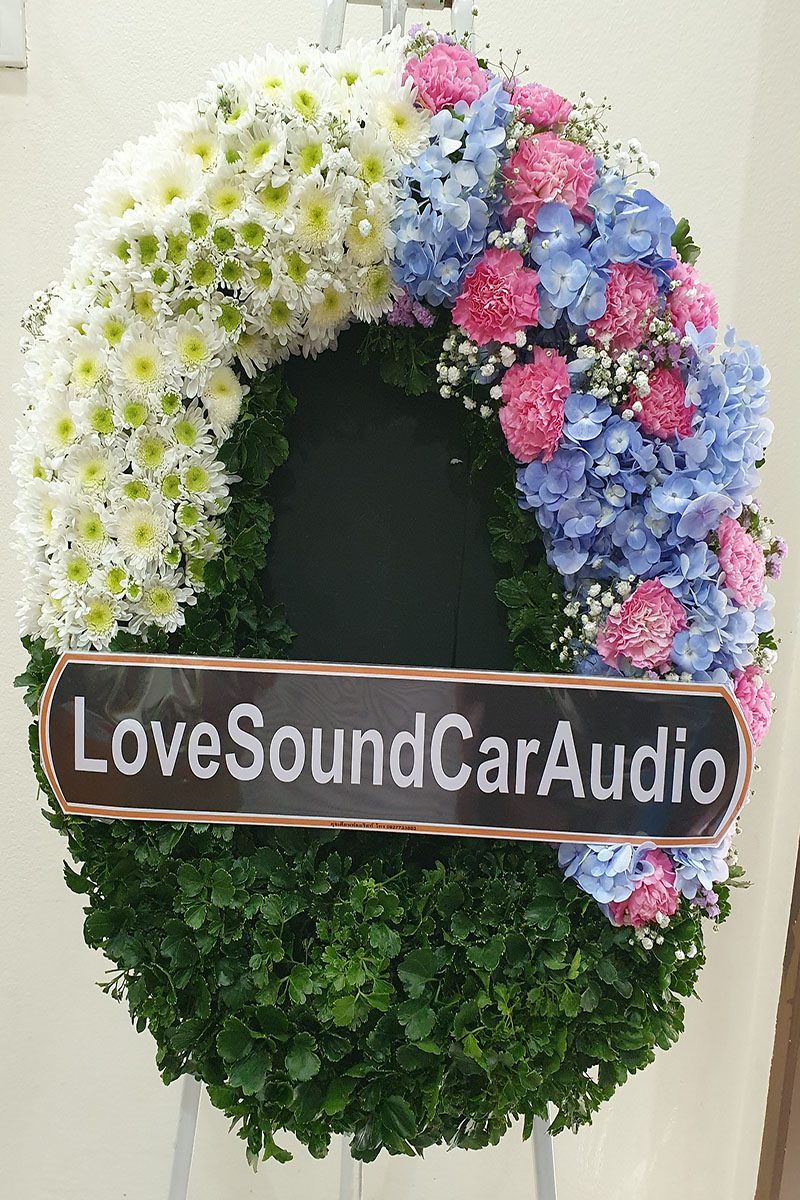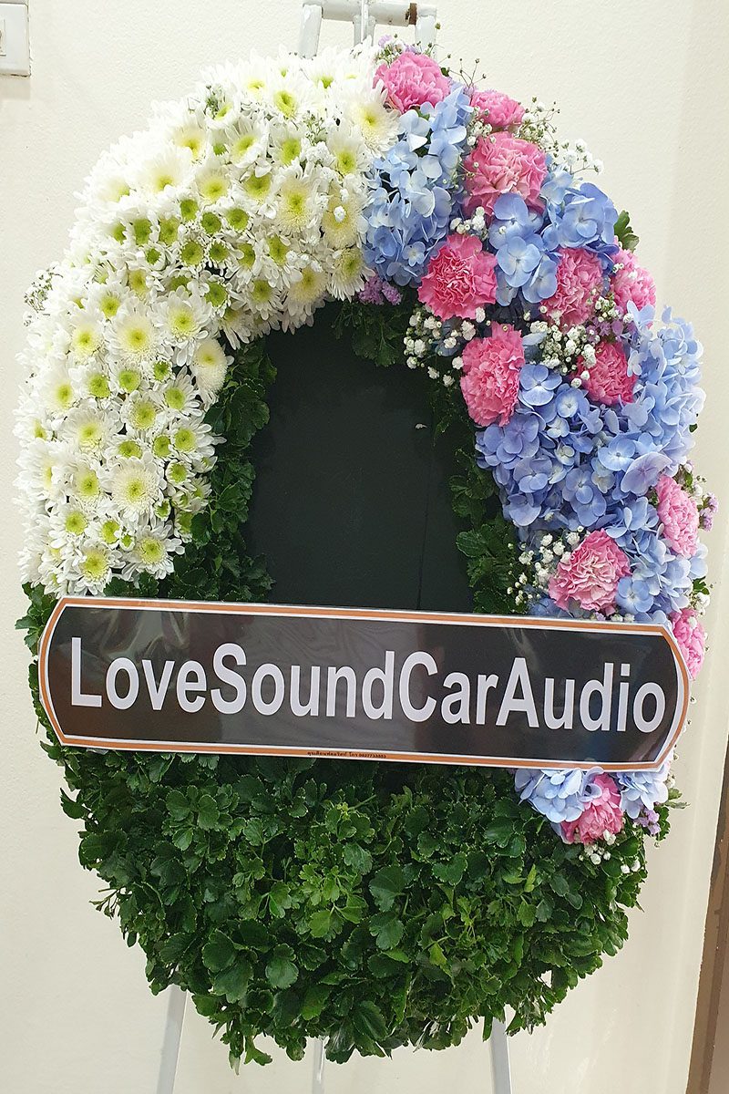 พวงหรีดดอกไม้สดสีขาวฟ้า