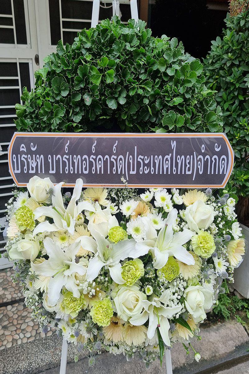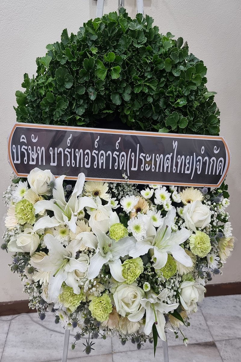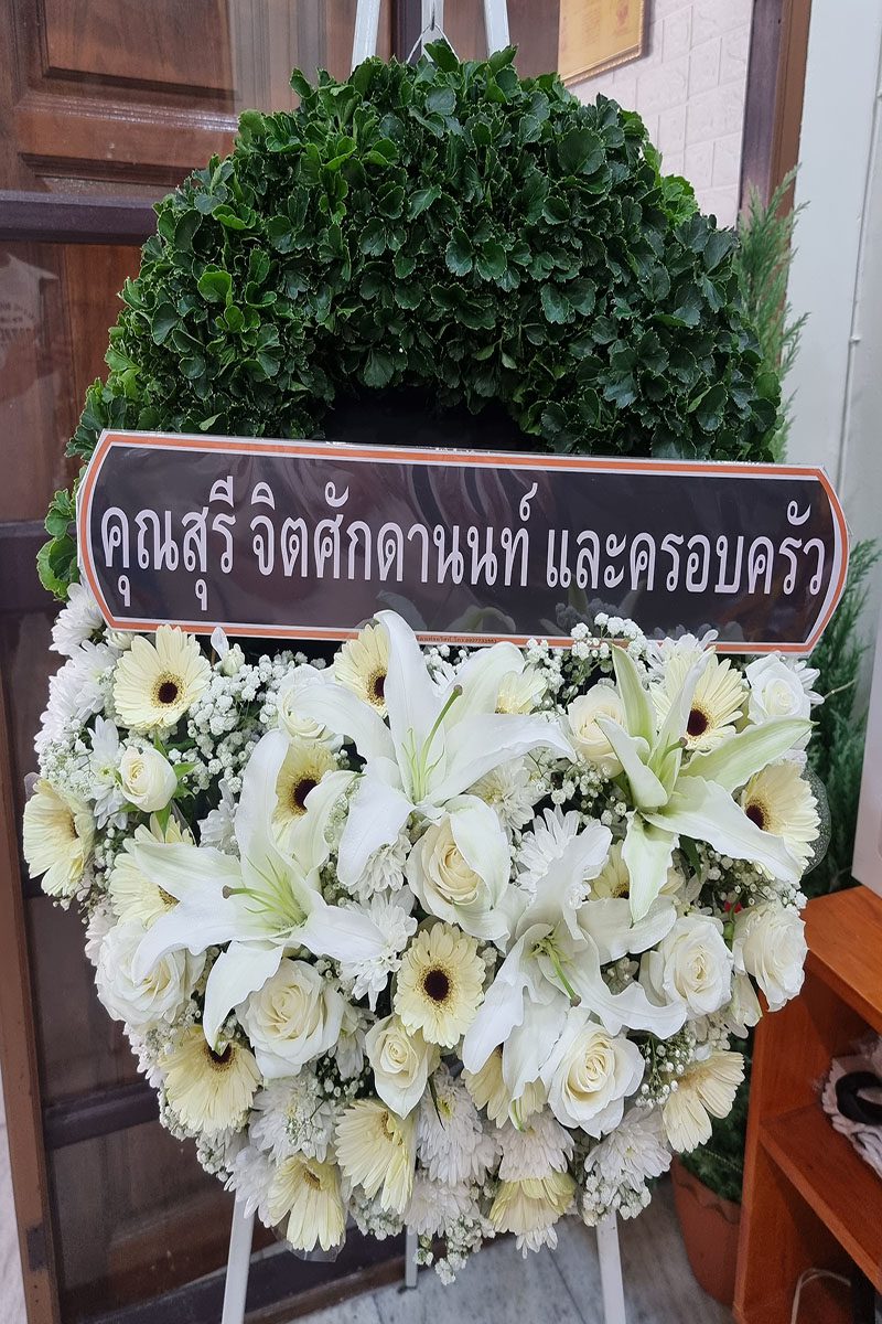 พวงหรีดดอกไม้สดสีขาว-W1007