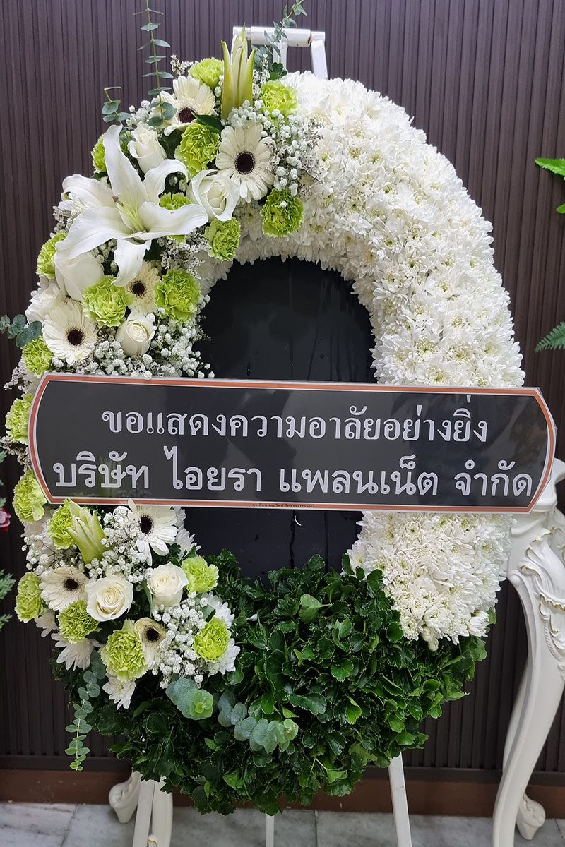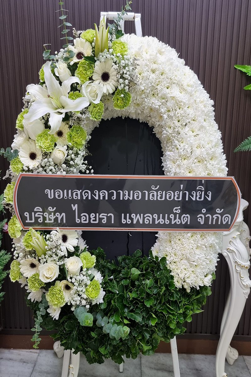 พวงหรีดดอกไม้แสดงความเสียใจ อาลัยต่อผู้ล่วงลับ: เป็นการแสดงความเคารพต่อผู้เสียชีวิต แสดงความร่วมรู้สึกต่อครอบครัวผู้สูญเสียมอบให้ในงานศพ พิธีฌาปนกิจ แทนความปรารถนาดีต่อผู้ล่วงลับ