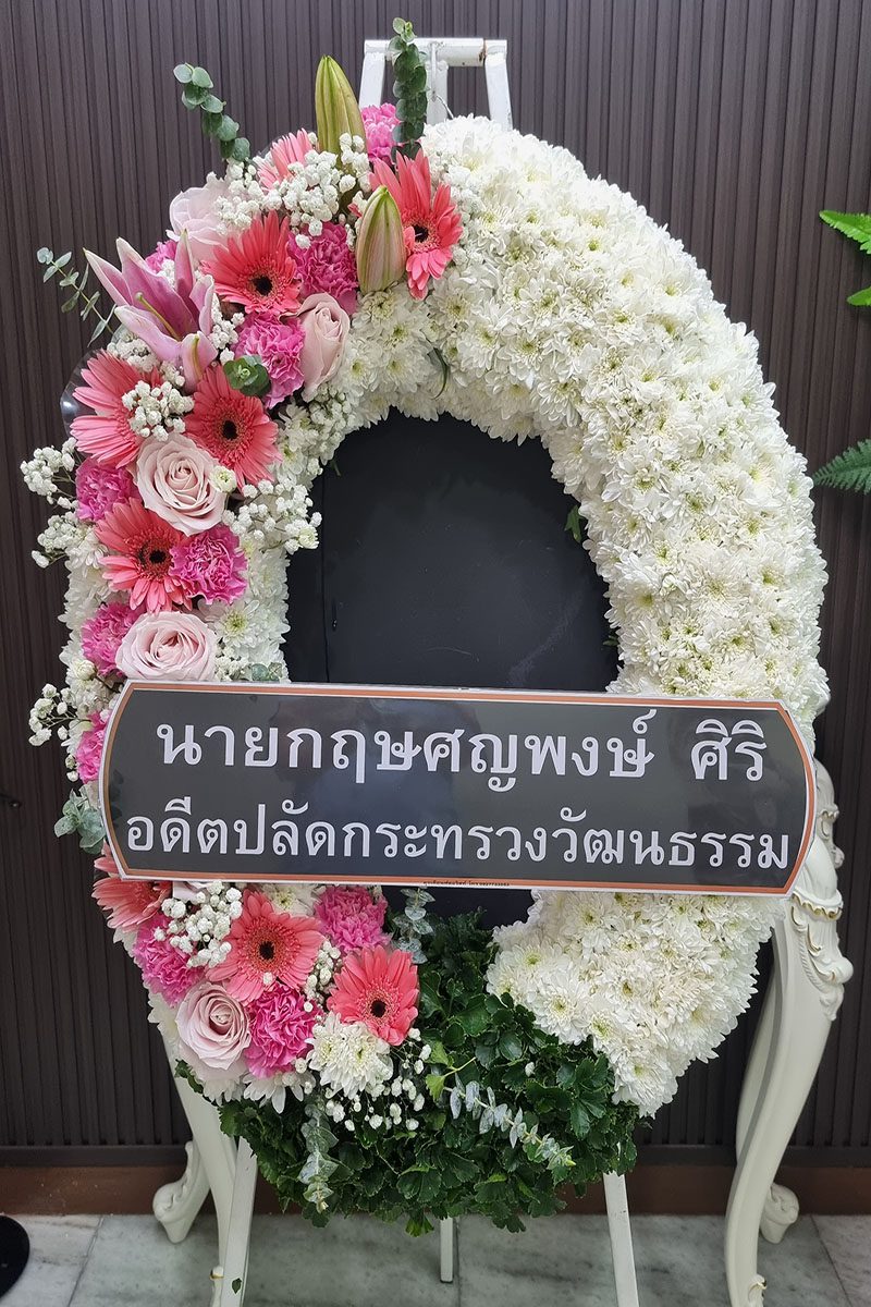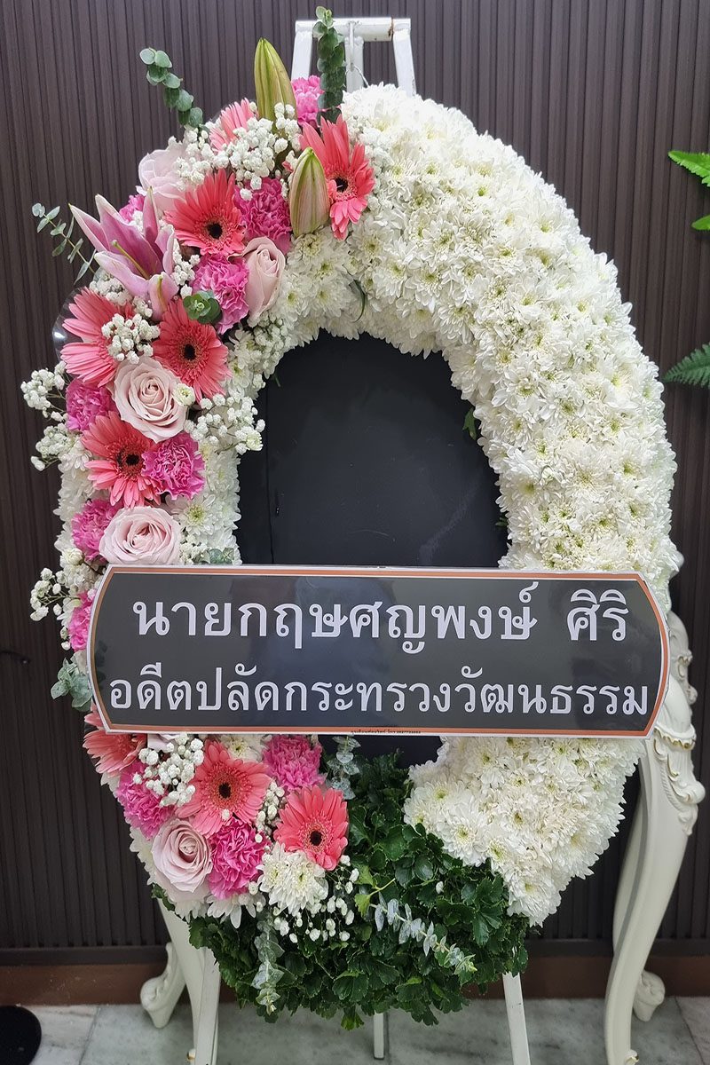พวงหรีดดอกไม้แสดงความเสียใจ อาลัยต่อผู้ล่วงลับ: เป็นการแสดงความเคารพต่อผู้เสียชีวิต แสดงความร่วมรู้สึกต่อครอบครัวผู้สูญเสียมอบให้ในงานศพ พิธีฌาปนกิจ แทนความปรารถนาดีต่อผู้ล่วงลับ