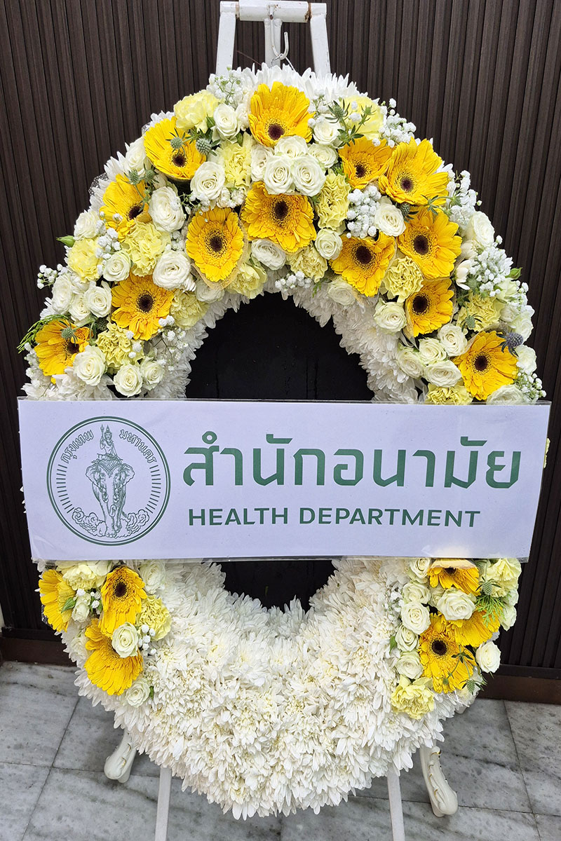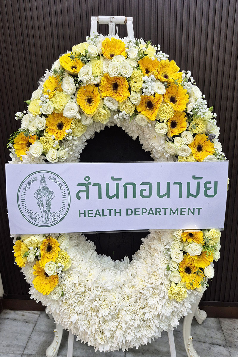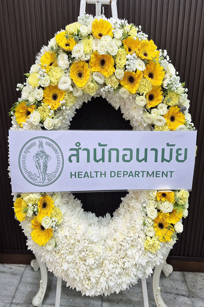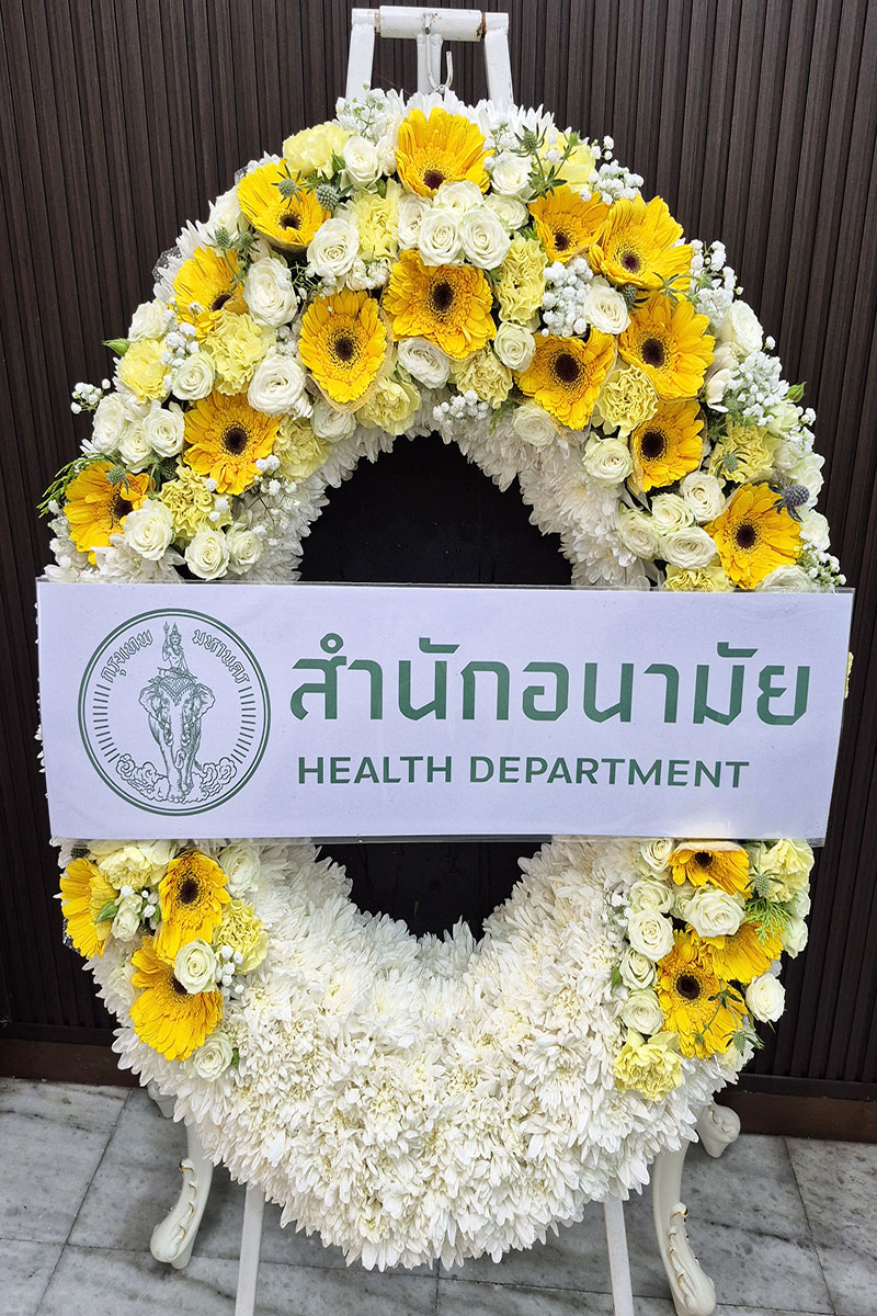 พวงหรีดดอกไม้แสดงความเสียใจ อาลัยต่อผู้ล่วงลับ: เป็นการแสดงความเคารพต่อผู้เสียชีวิต แสดงความร่วมรู้สึกต่อครอบครัวผู้สูญเสียมอบให้ในงานศพ พิธีฌาปนกิจ แทนความปรารถนาดีต่อผู้ล่วงลับ