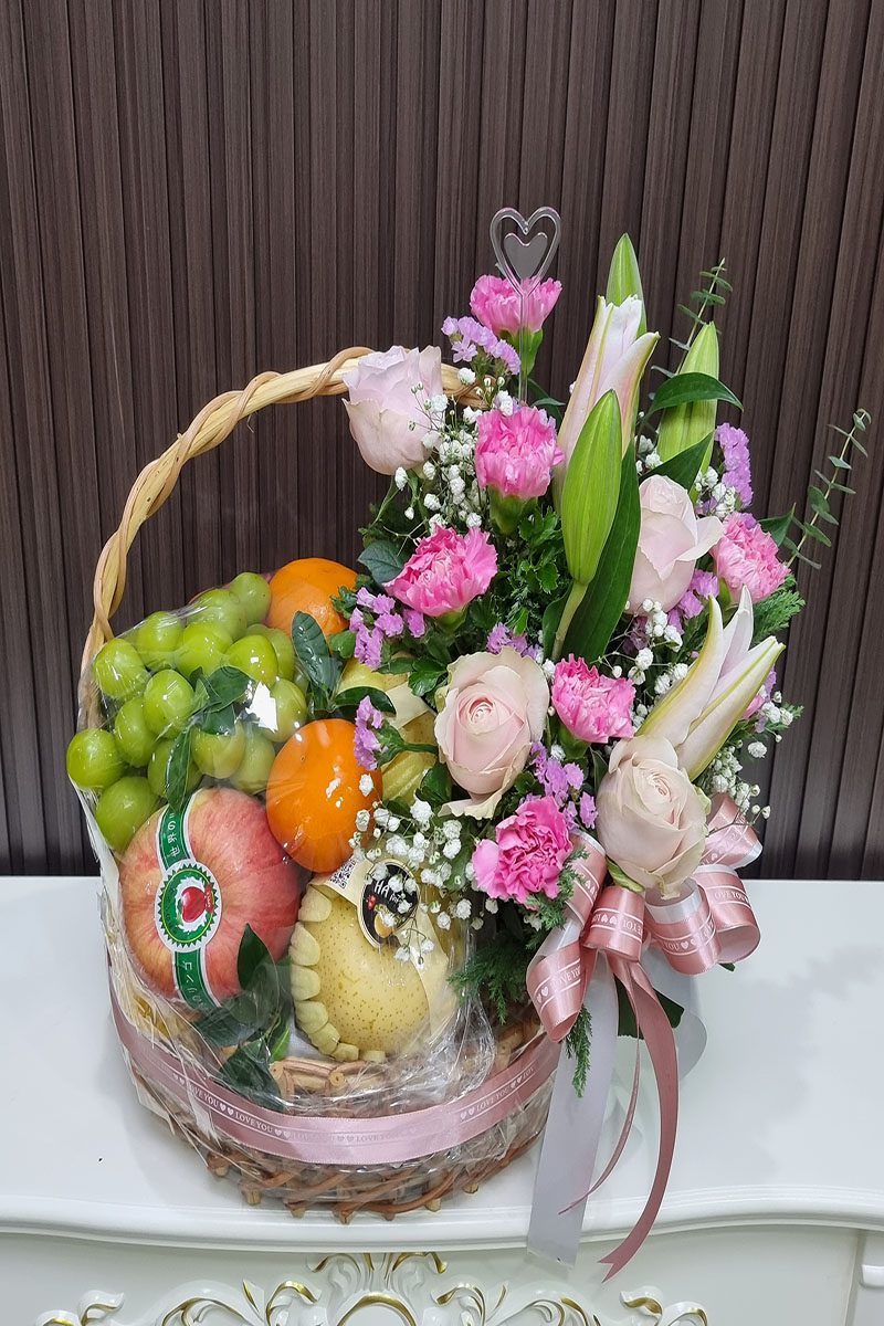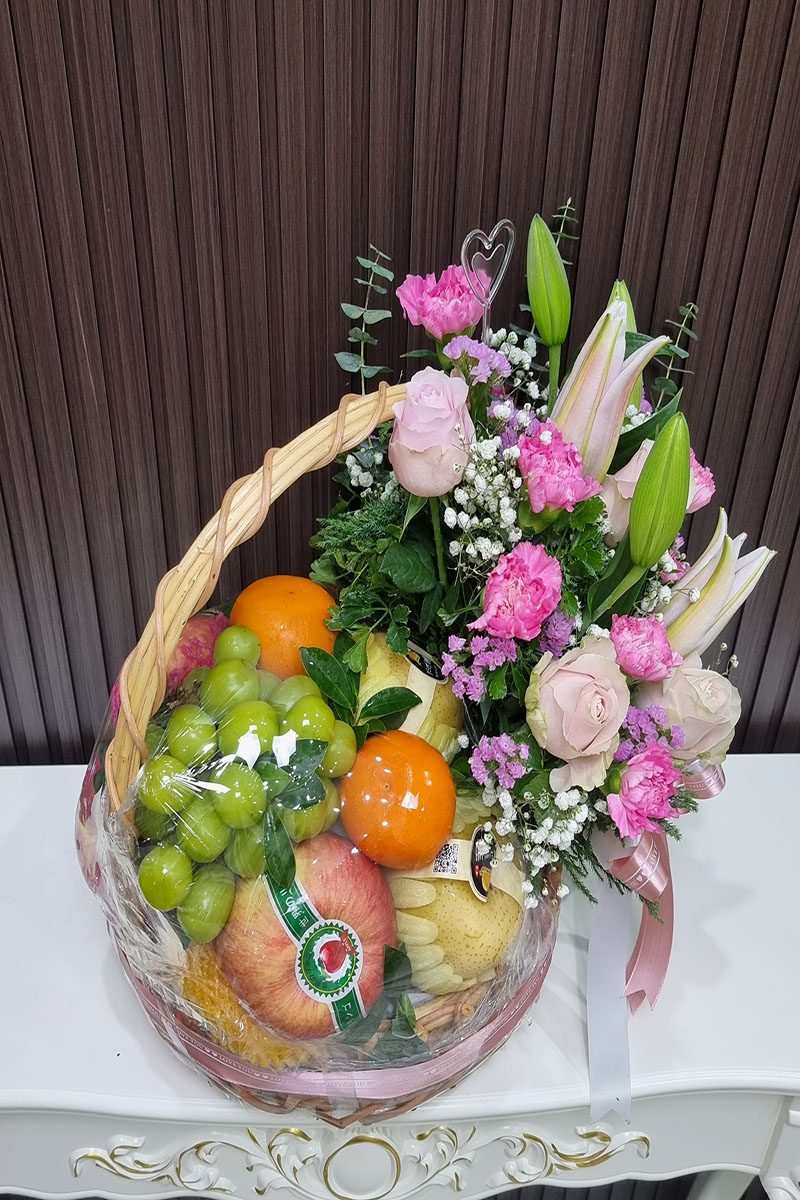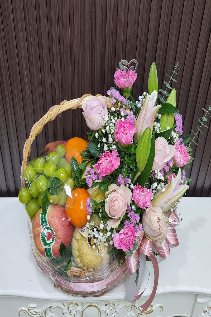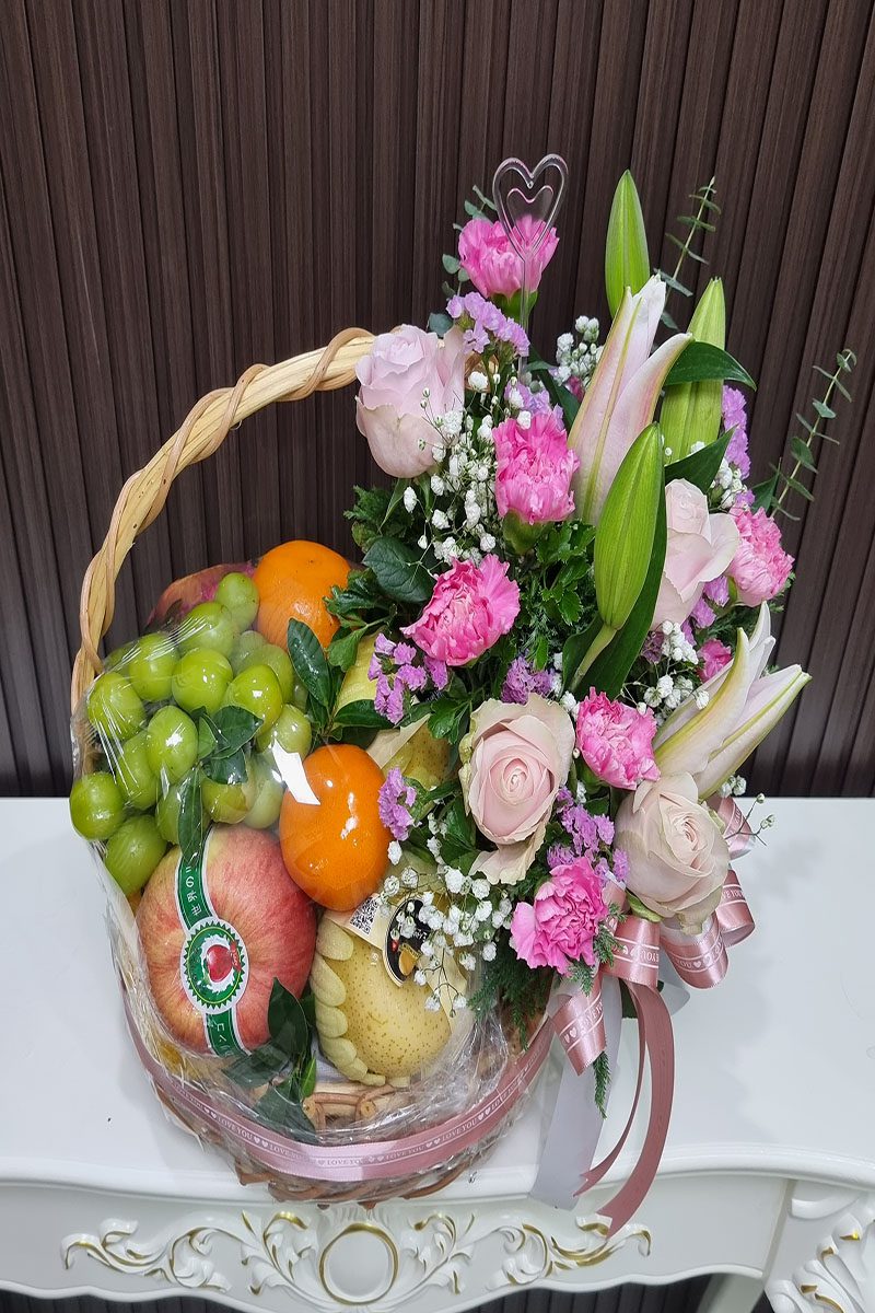 กระเช้าผลไม้ดอกไม้สด-BB1017