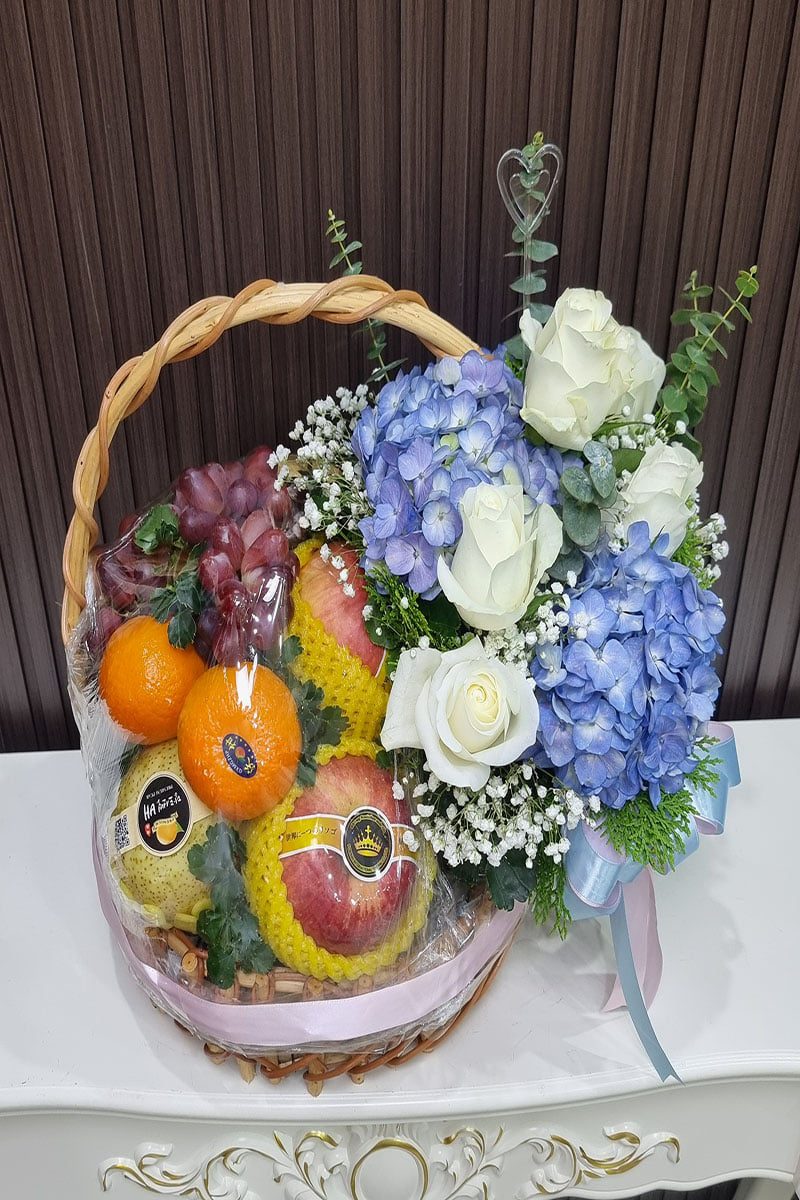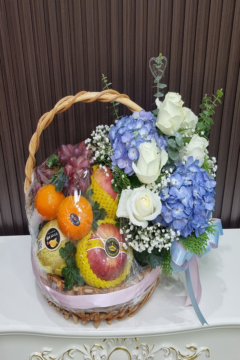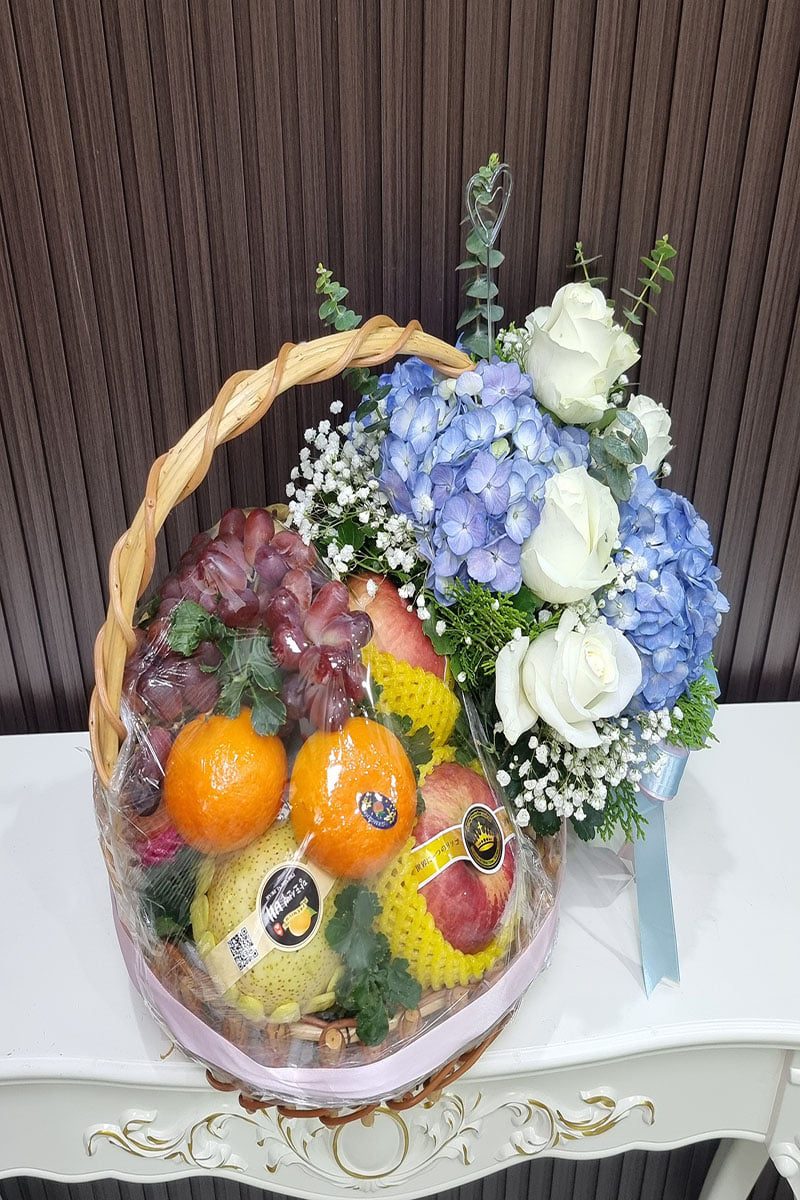กระเช้าผลไม้และดอกไม้สด