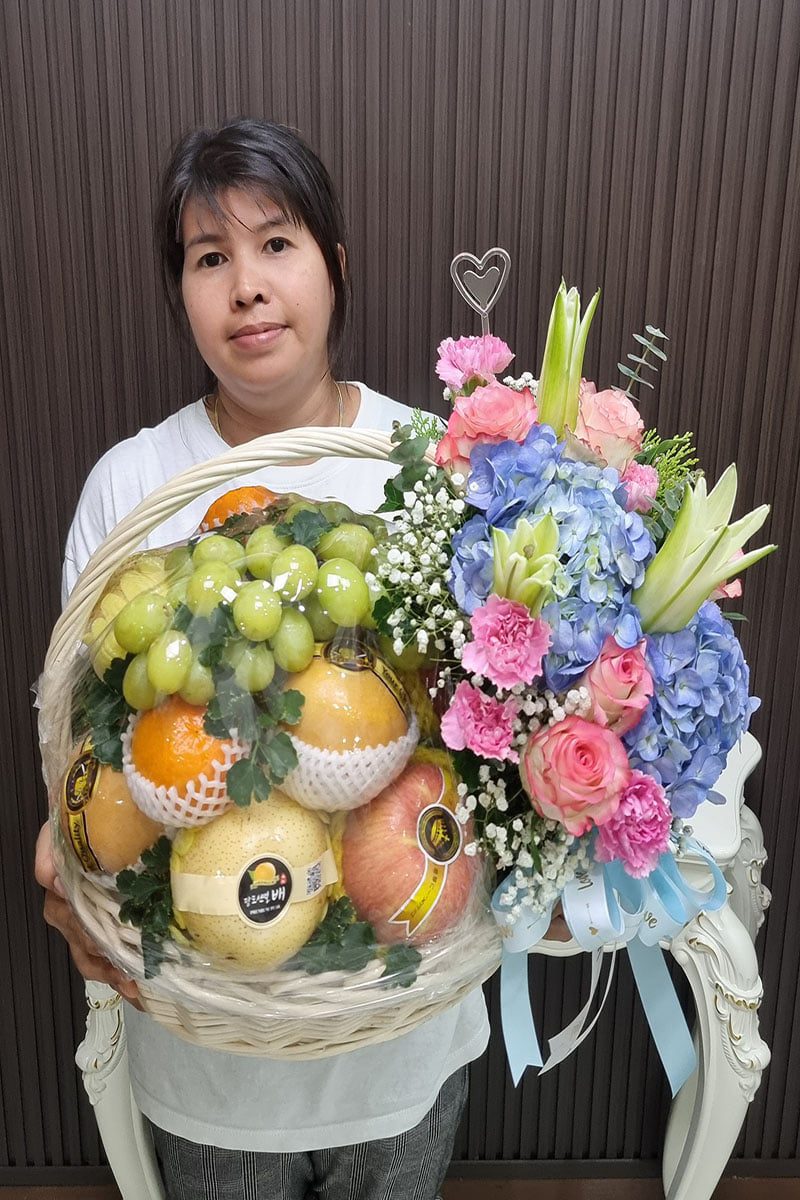 กระเช้าผลไม้ดอกไม้สด-BF1020