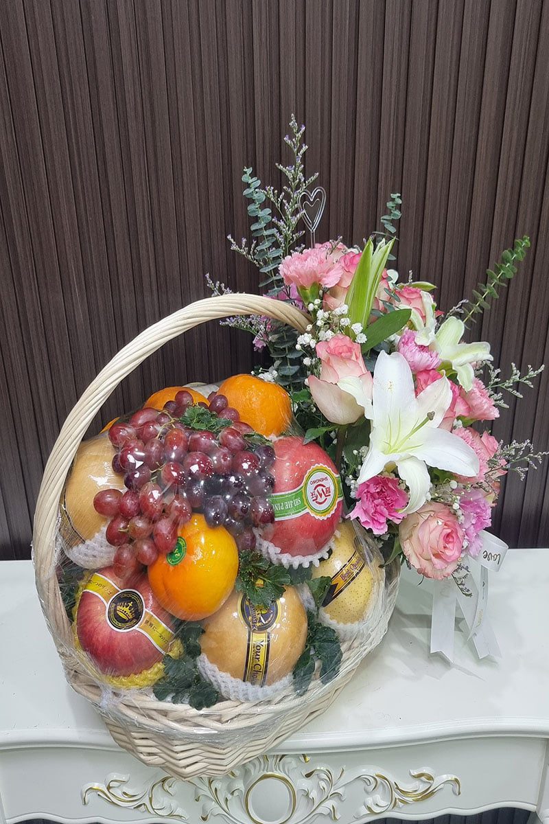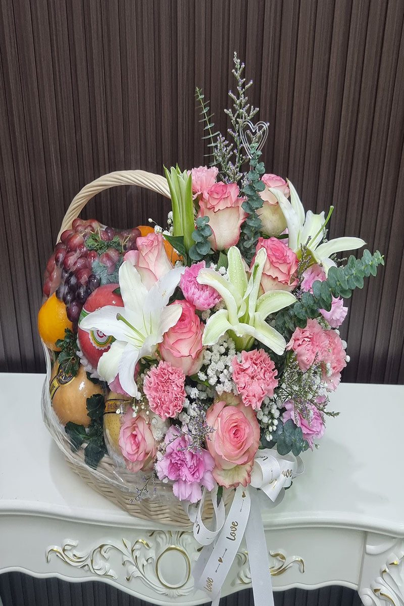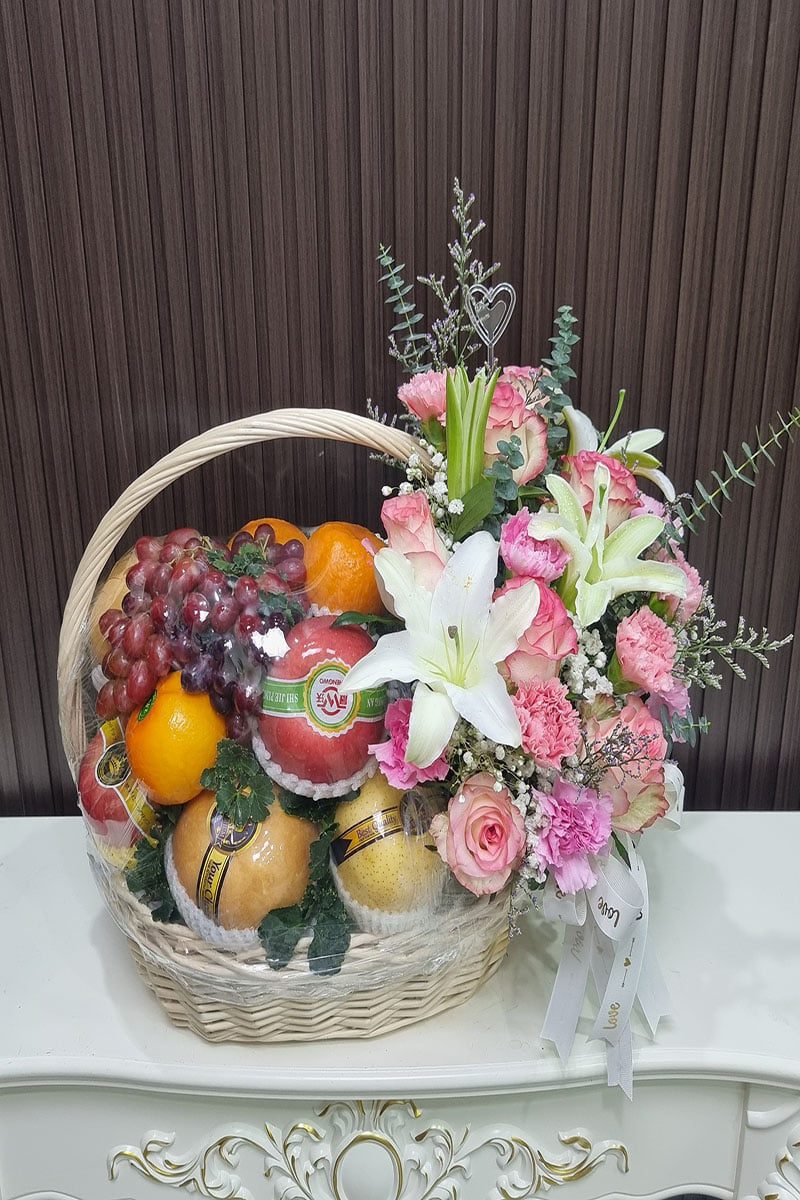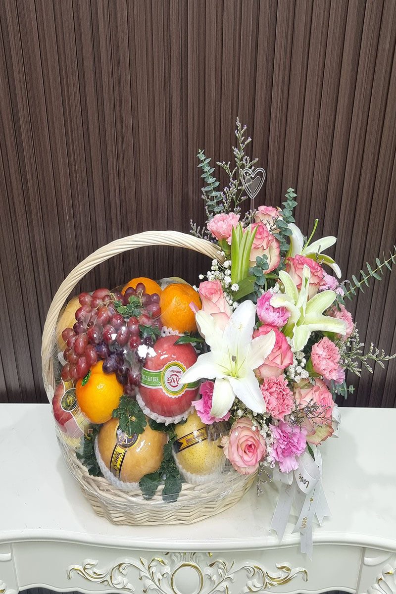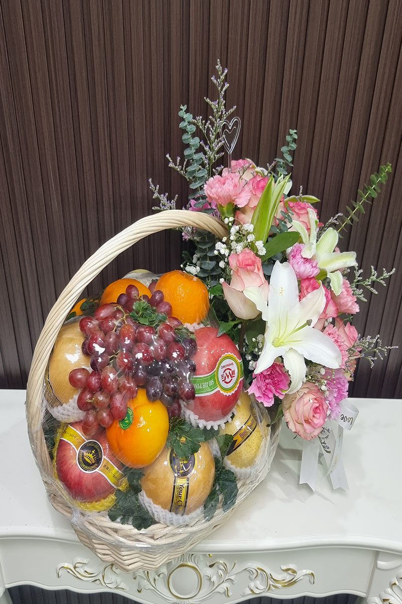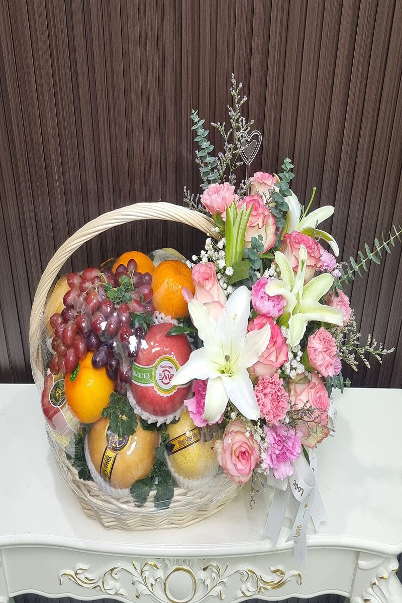 กระเช้าผลไม้ดอกไม้สด-BF1021