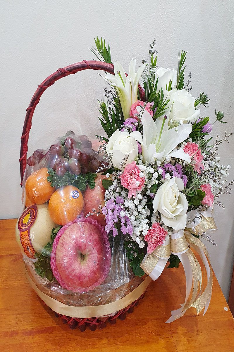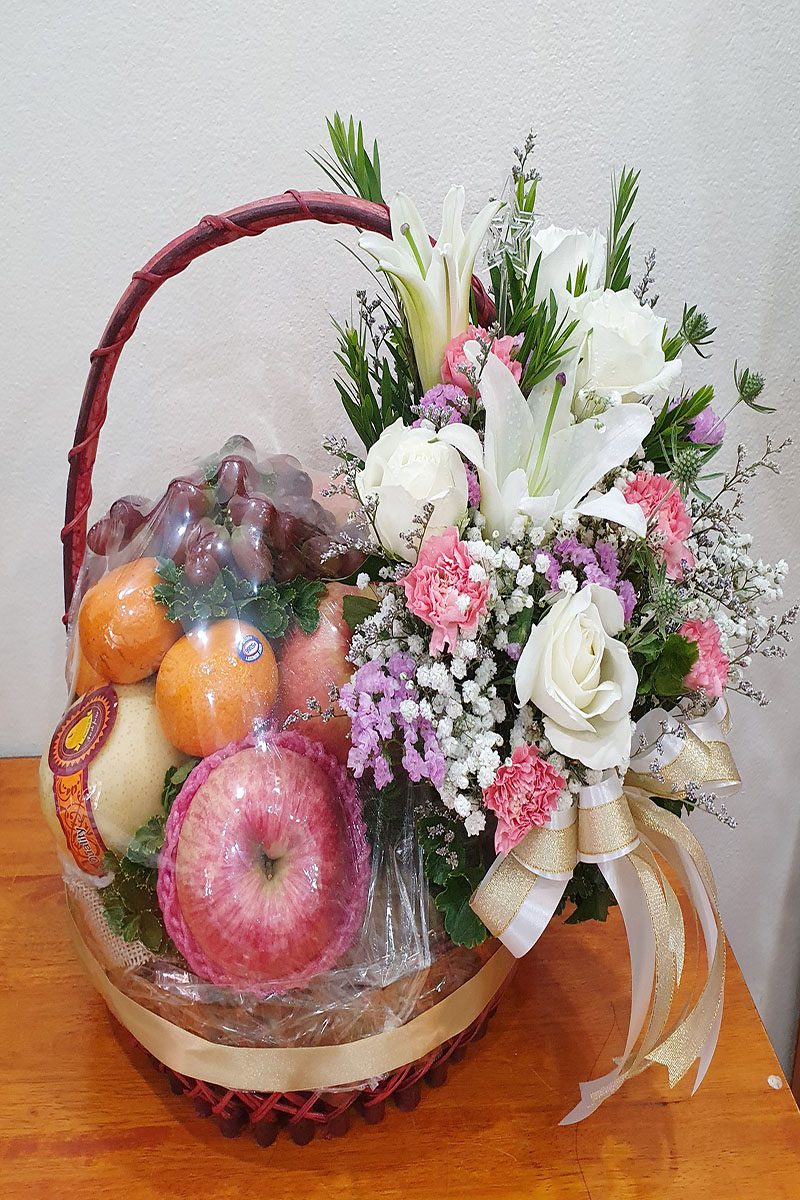 กระเช้าผลไม้ดอกไม้สด-FB1004
