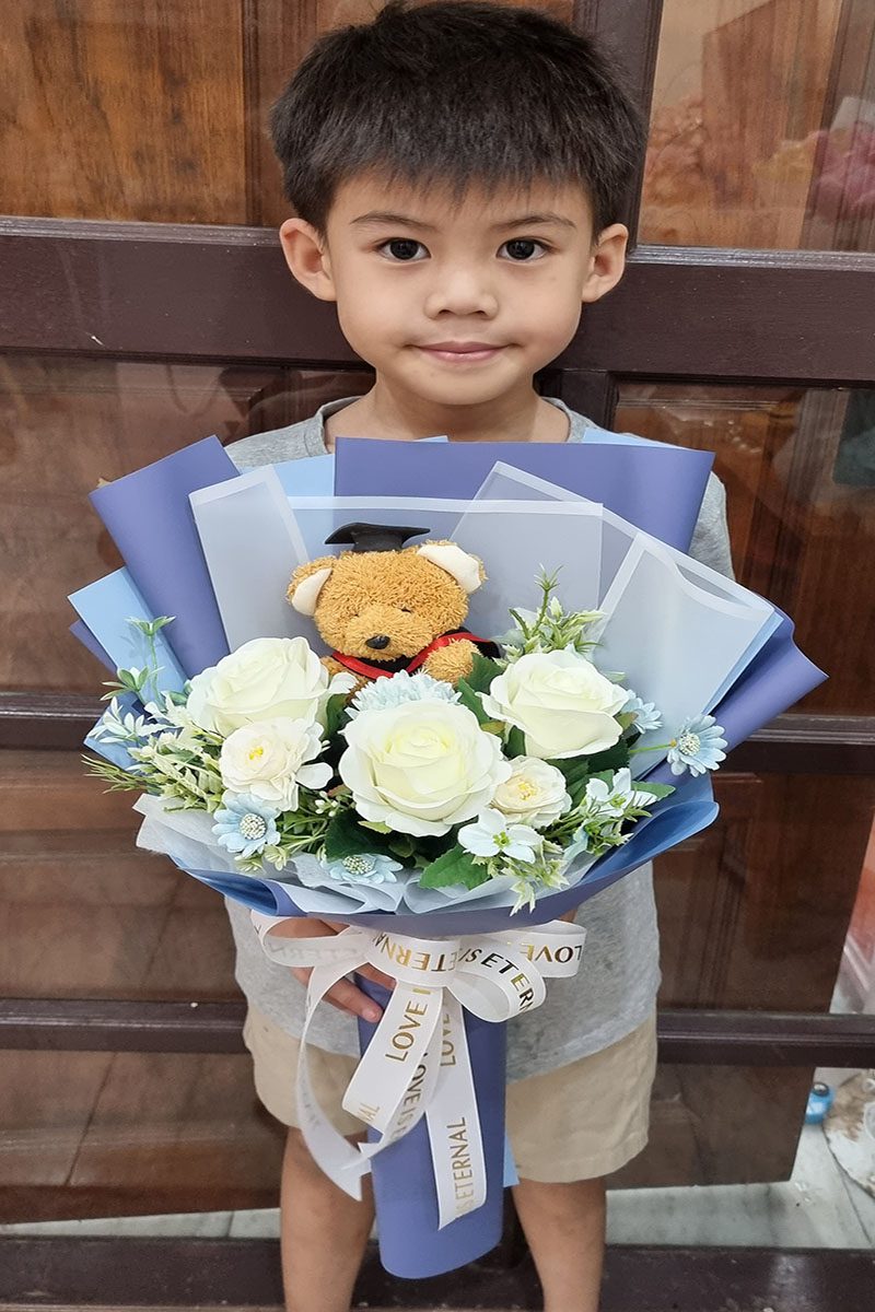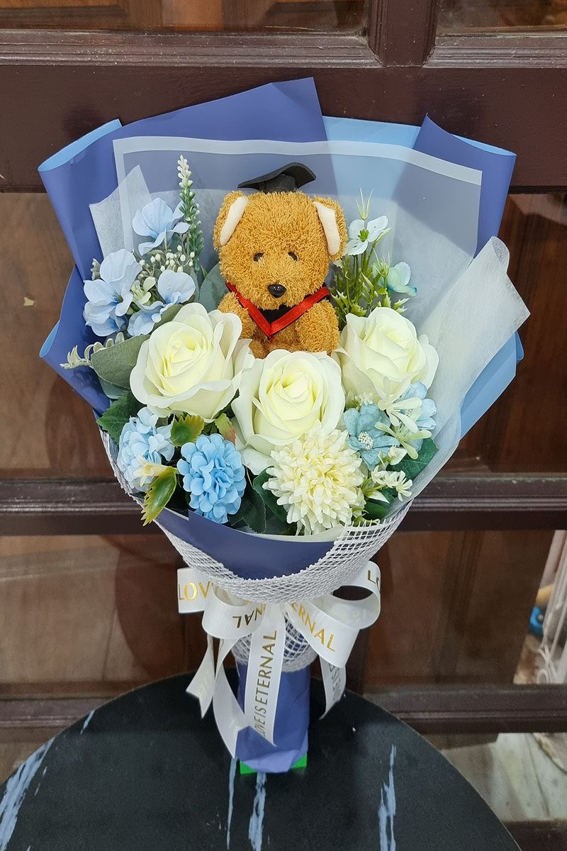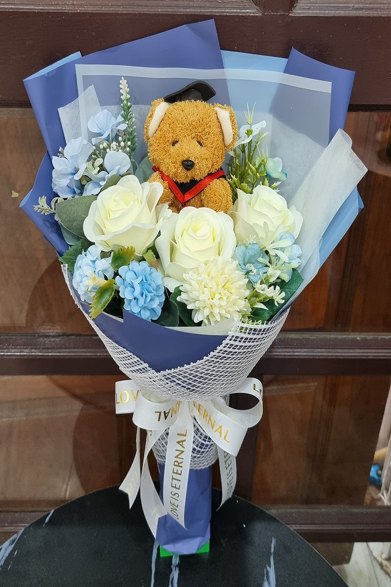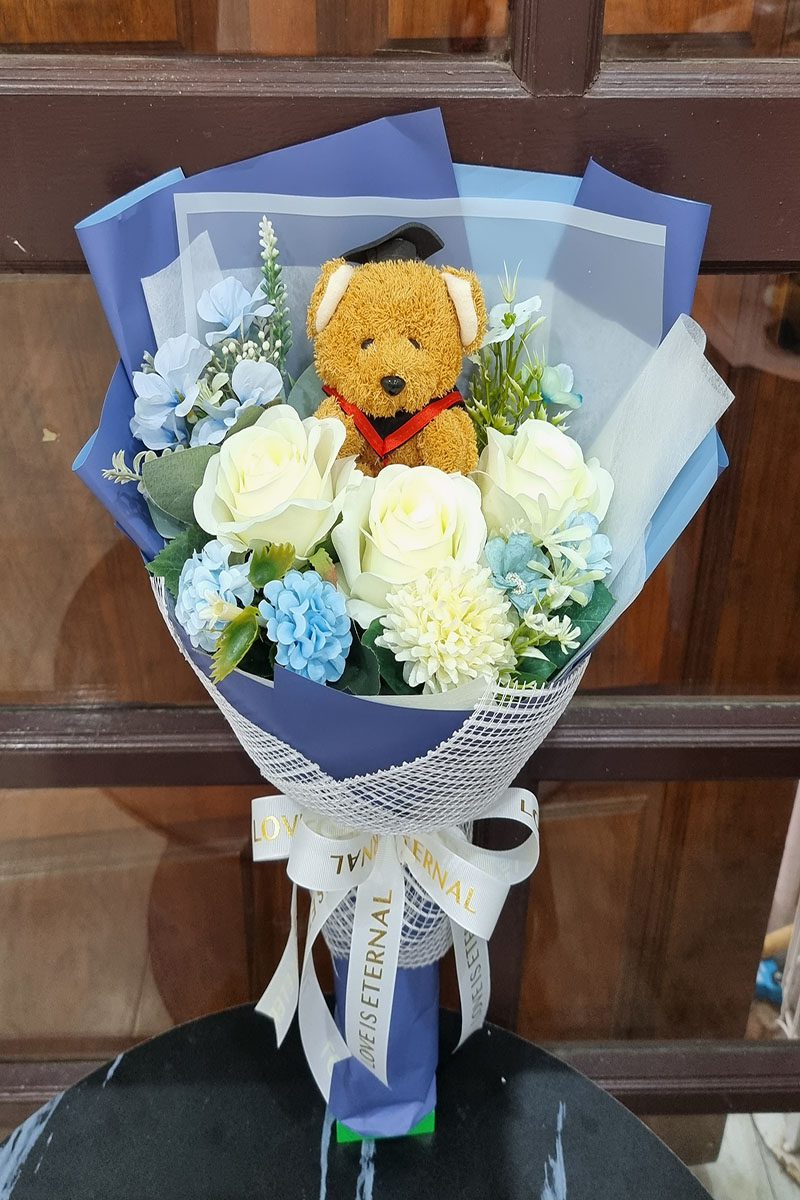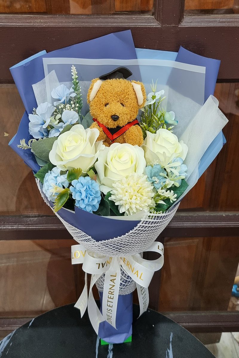ช่อดอกไม้ประดิษฐ์ กับตุ๊กตาหมีน่ารักๆ สำหรับหนูๆ