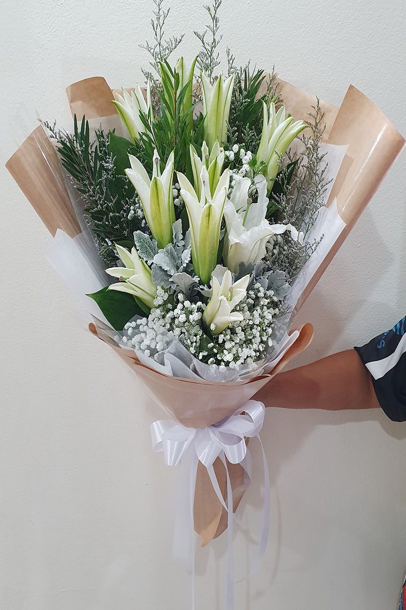 ดอกลิลลี่   จัดช่อ แซมดอกยิปซี แคสเปียร์