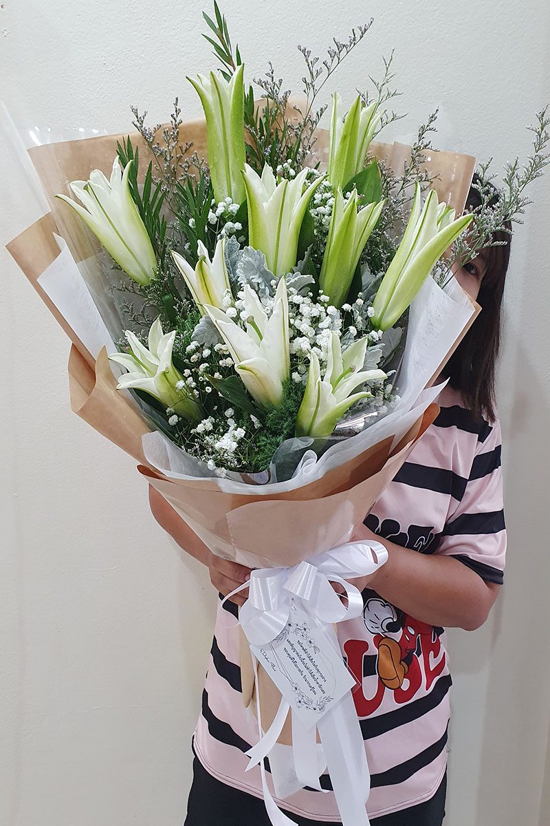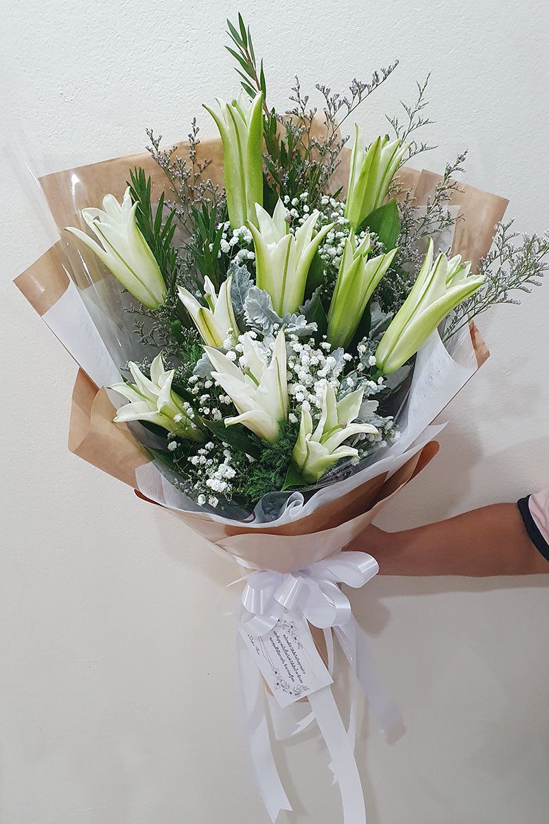 ช่อดอกลิลลี่ 10 ดอก ประกอบไปด้วยดอกไม้ หลักคือ