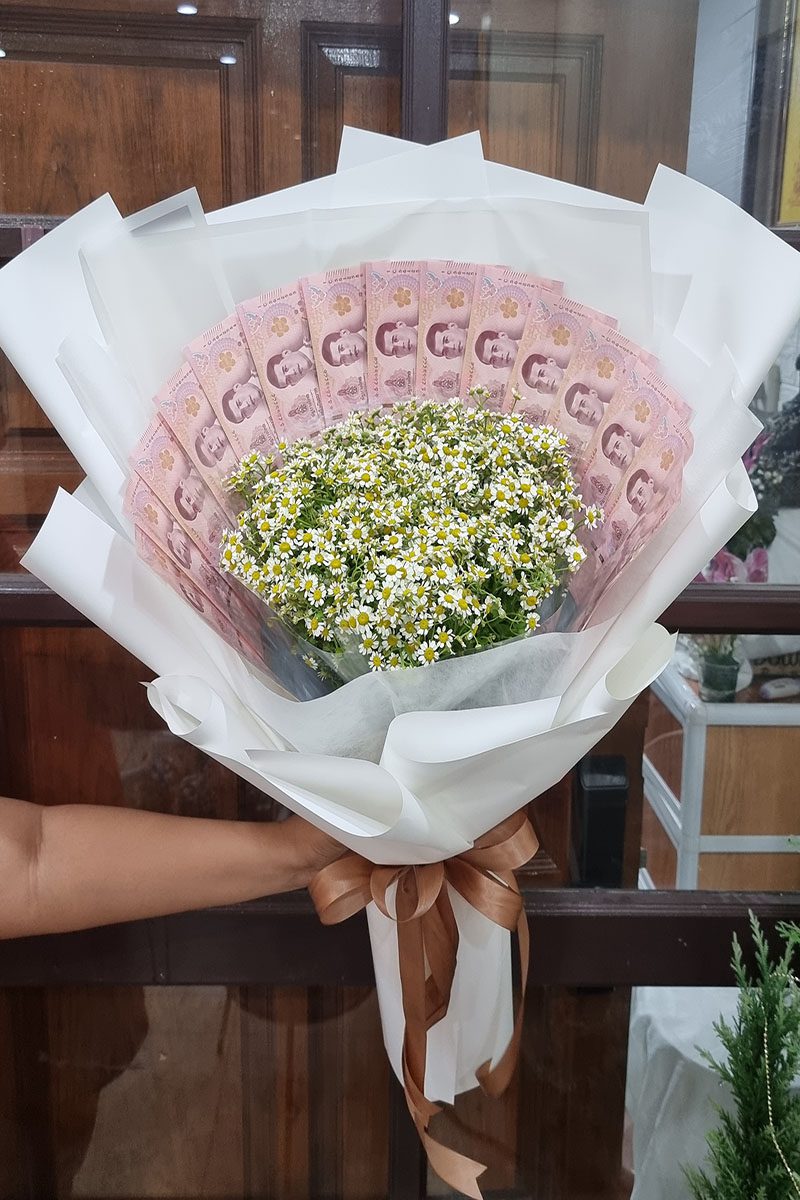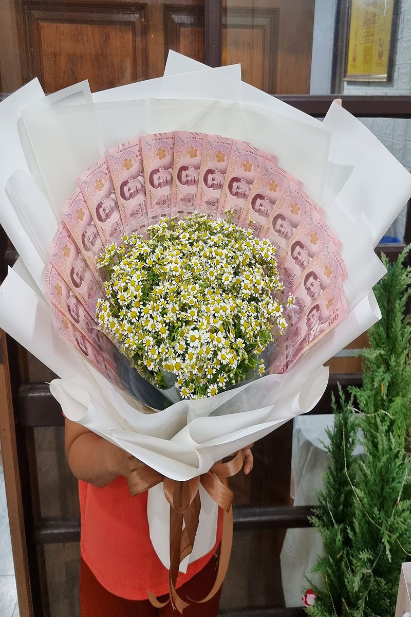 ช่อแบงค์ ช่อธนบัตร แบบเรียงแบงค์ในช่อดอกไม้