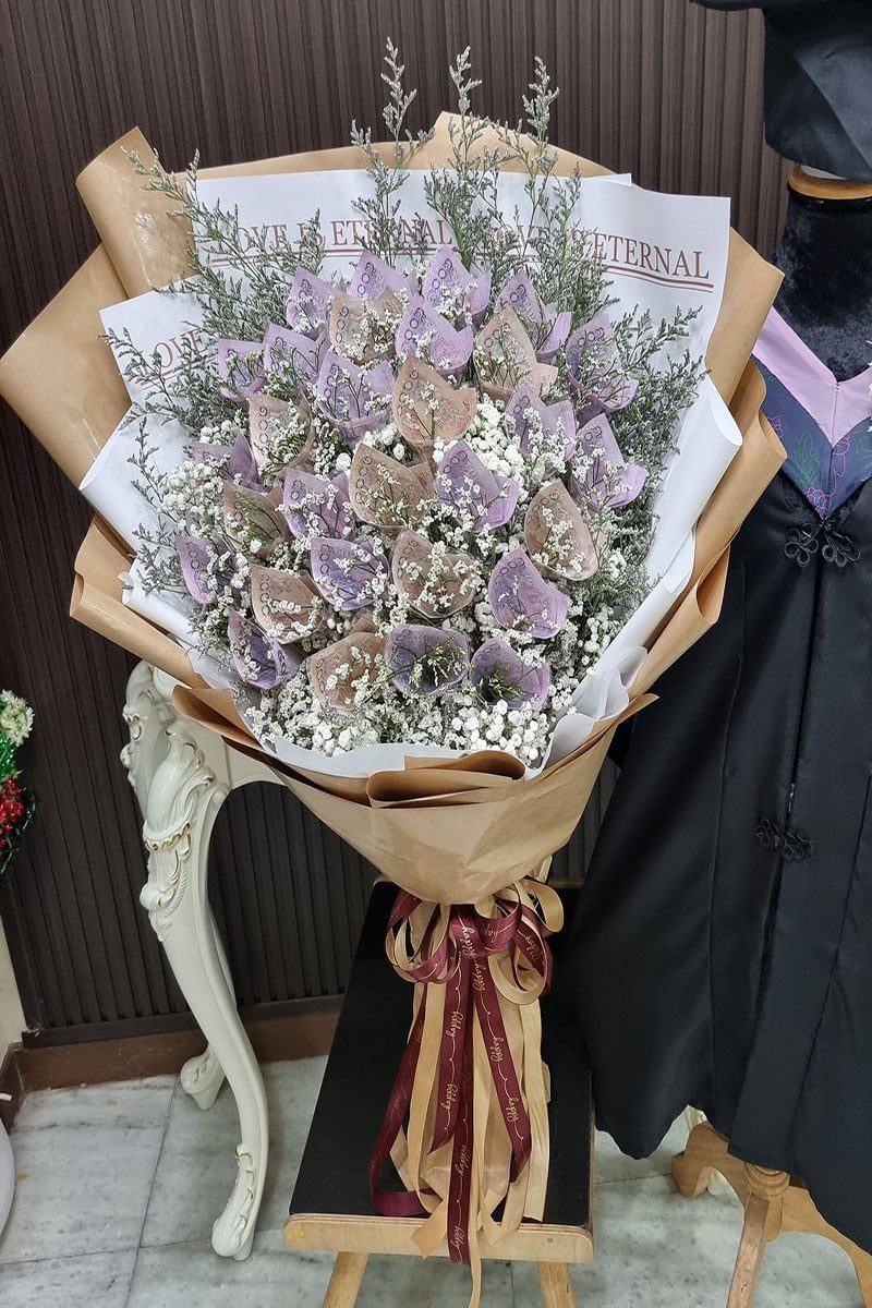 ระยะเวลาการจัดทำช่อ ประมาณ 1-2 ชม. หรือตามขนาดของช่อ