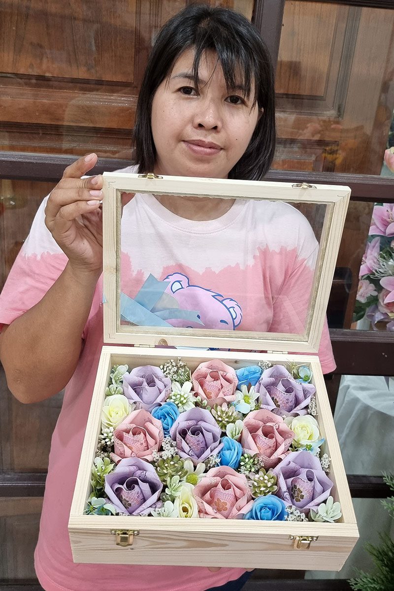 กล่องดอกไม้แบงค์พับ ธนบัตร กล่องของขวัญ แบงค์พับ