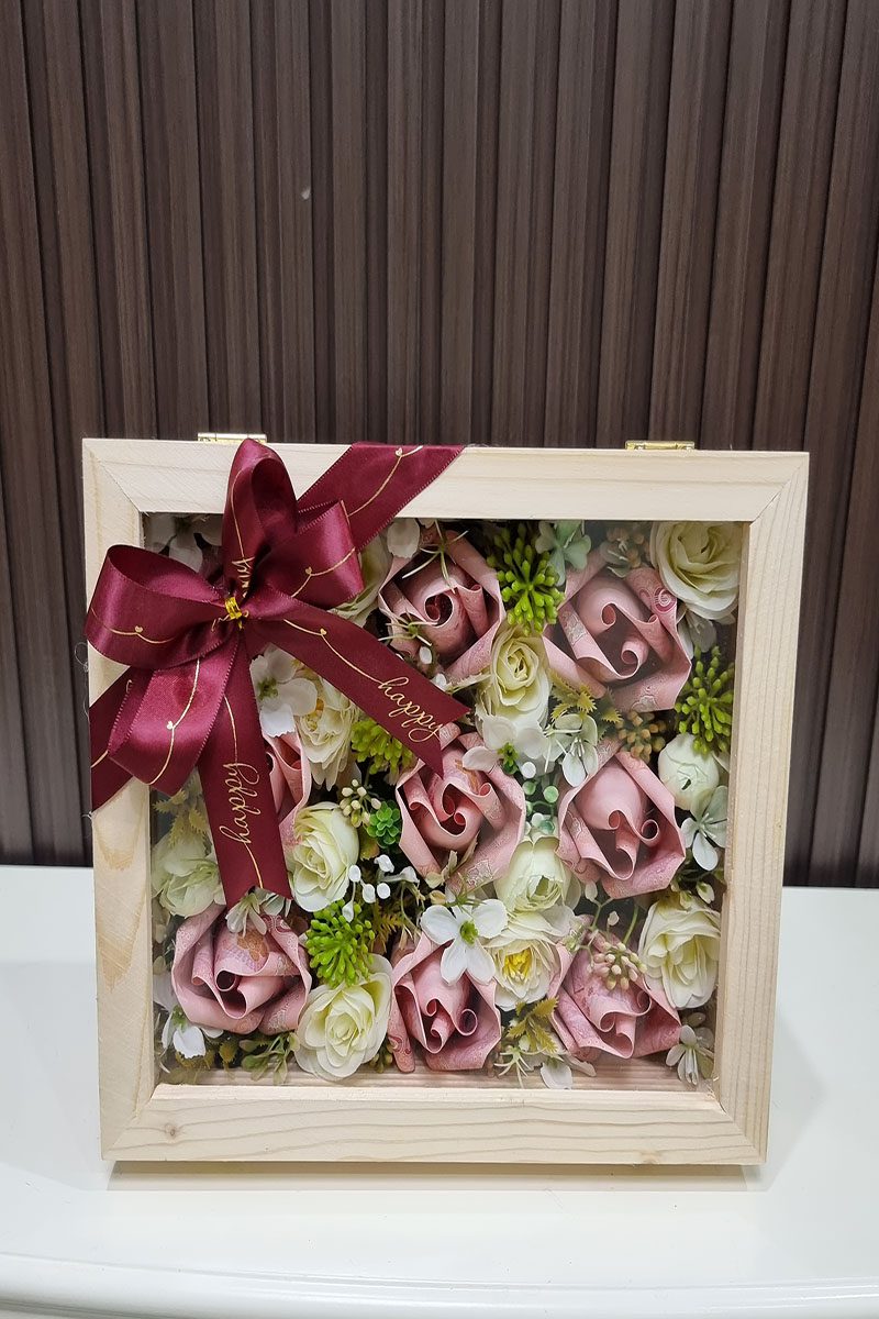 กล่องดอกไม้แบงค์พับ คือ การนำธนบัตรใหม่ แบงค์ใหม่ มาพับทำเป็นดอกไม้ ดอกกุหลาบและ นำมาจัดเรียงในกล่องไม้ ฝาหน้ากระจก แซมด้วยดอกไม้ประดิษฐ์ ตกแต่งให้สวยงาม นิยมใช้เป็นของขวัญในโอกาสพิเศษ เช่น  วันเกิด   งานรับปริญญา งานปัจฉิมนิเทศน์งานขึ้นบ้านใหม่   งานรับไหว้  เงินขวัญวันปีใหม่  ของขวัญแสดงความยินดีต่างๆ