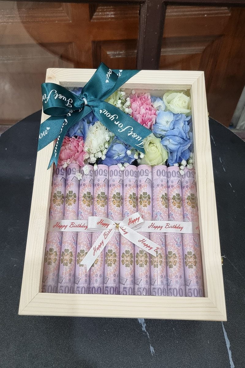 กล่องดอกไม้แบงค์ ธนบัตร กล่องของขวัญ แบงค์
