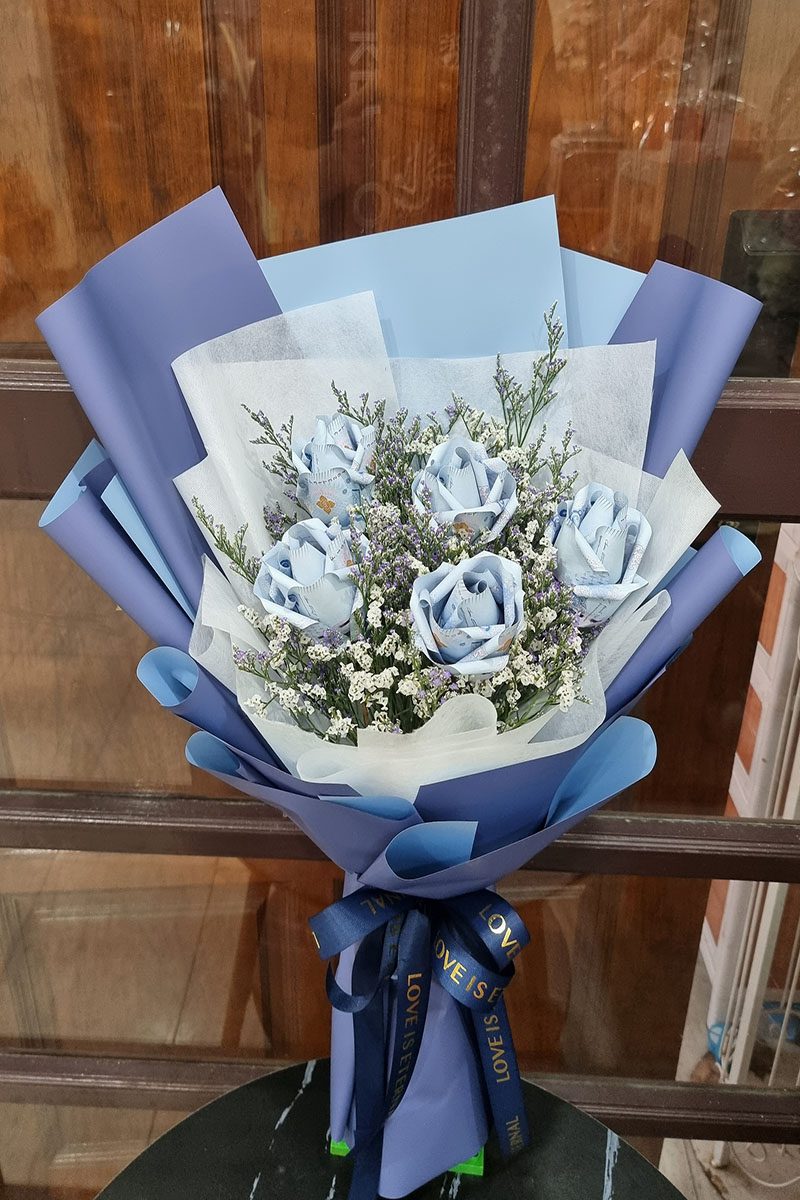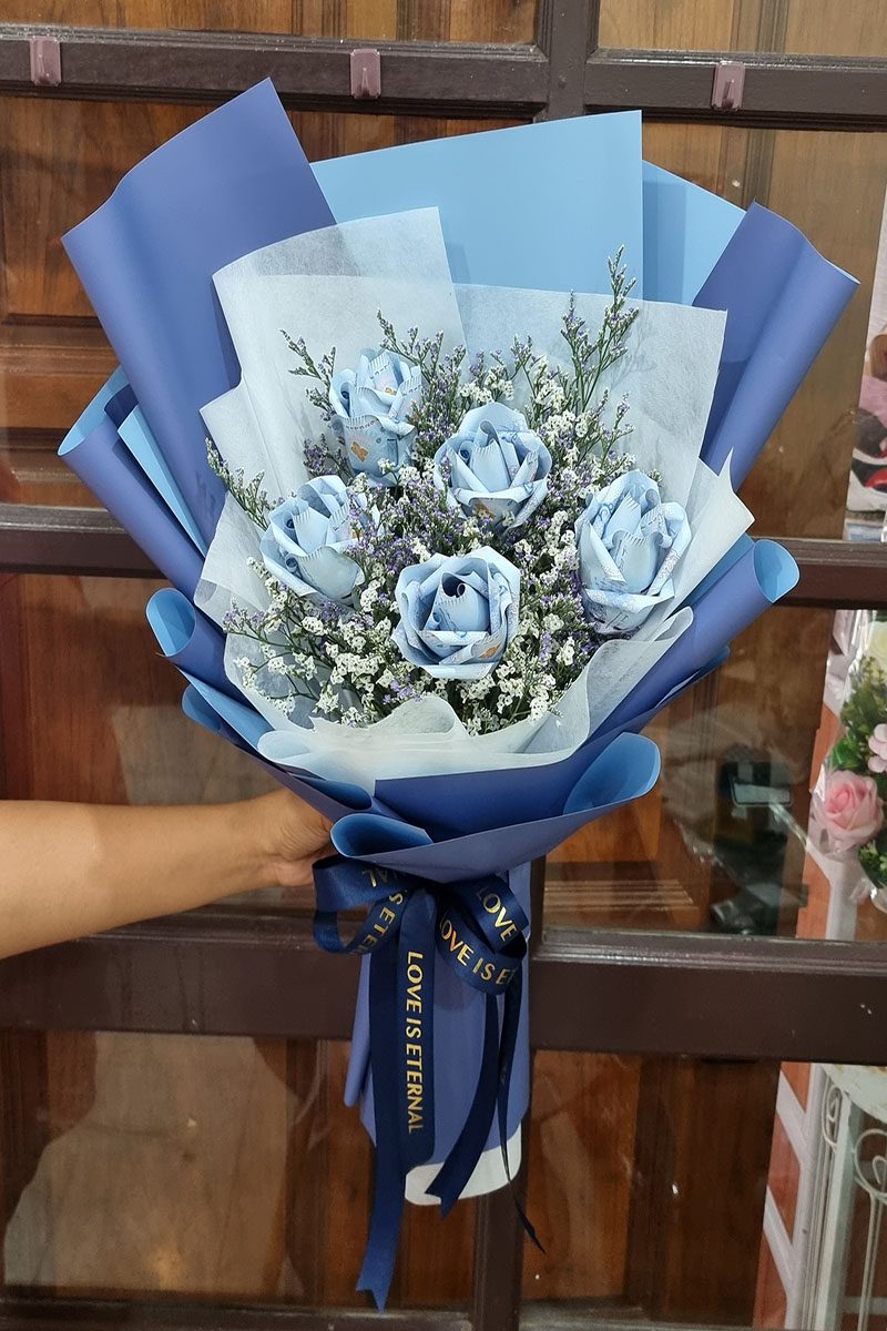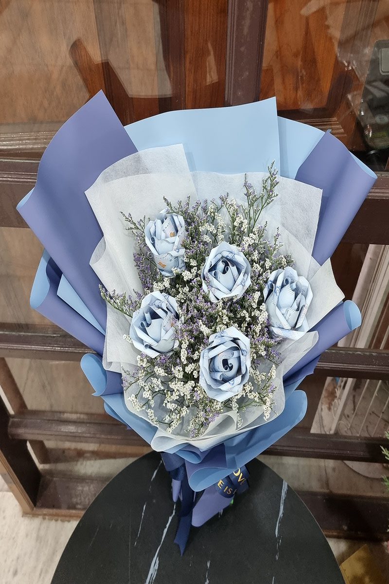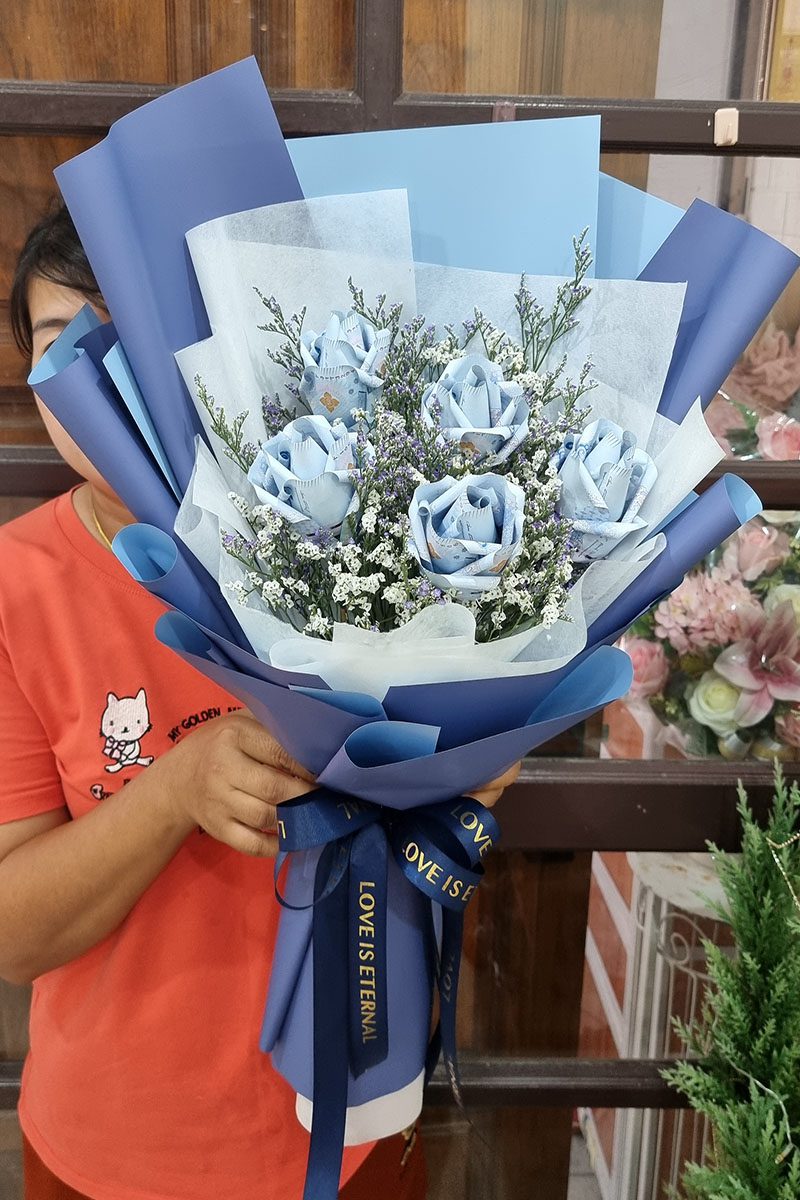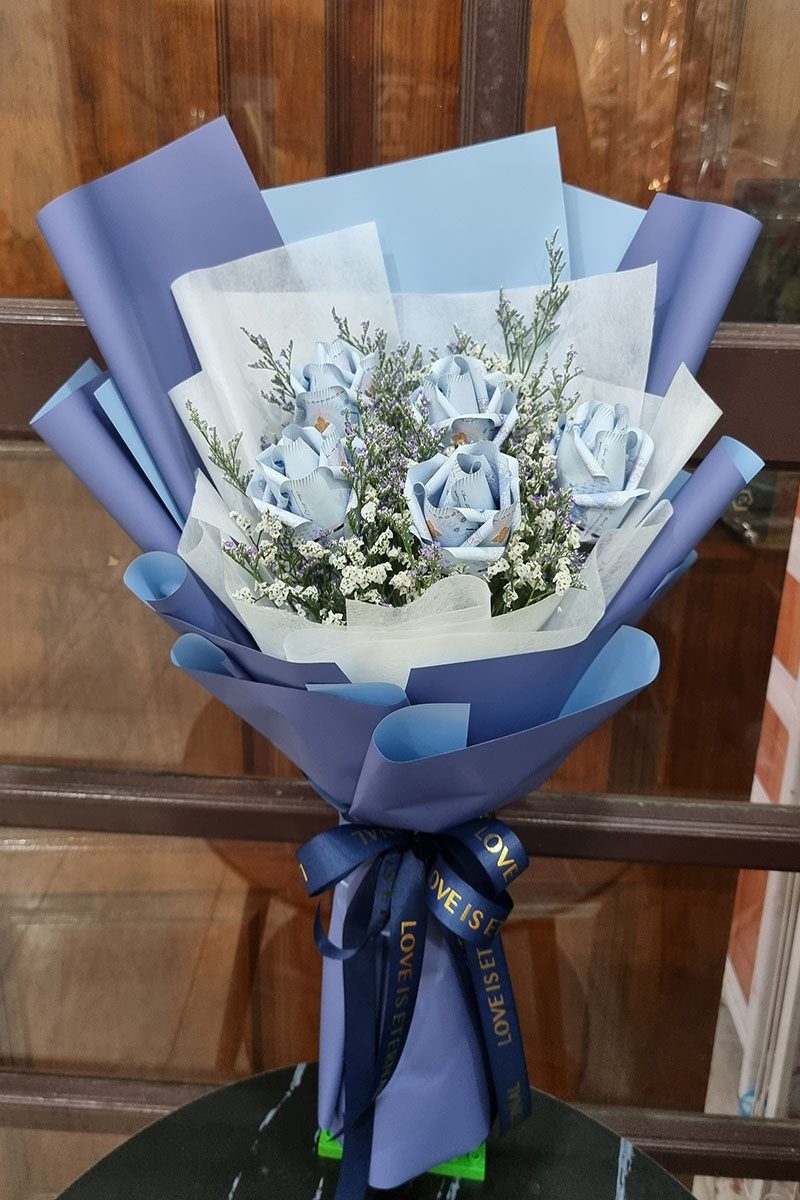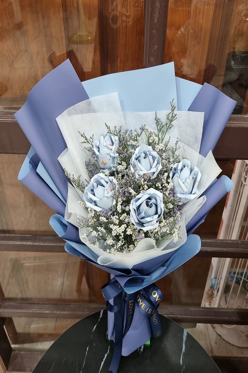 ช่อแบงค์ร้อยพับดอกกุหลาบ5ดอก